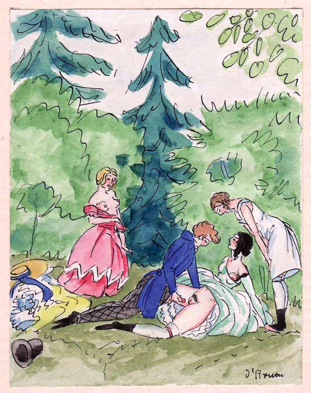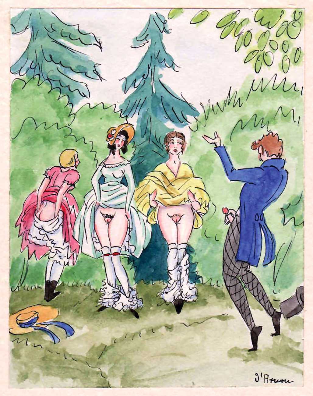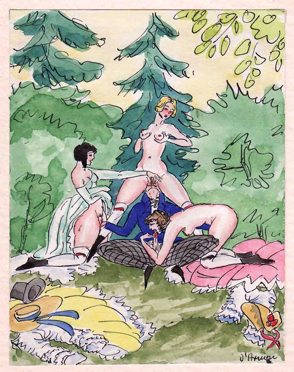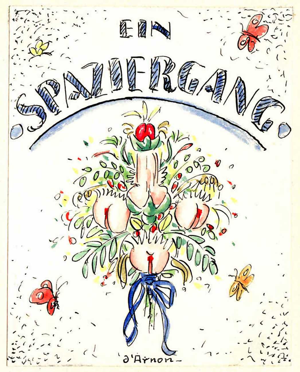 Ein Spaziergang (Going for a Walk) is typical of dozens of similar pictorial erotic narratives produced for an eager clientele during the 1920s, by an artist whose identity is hidden behind a pseudonym, forgotten, or both.