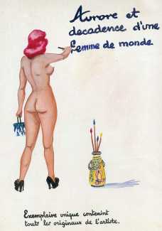 The full title of this set of original watercolours is Aurore et décadence d’une femme de monde: exemplaire unique conten(e)int touts les originaux de l’artiste (The Awakening and Decadence of a Woman of the World: A Unique Version Containing all the Artist’s Originals).