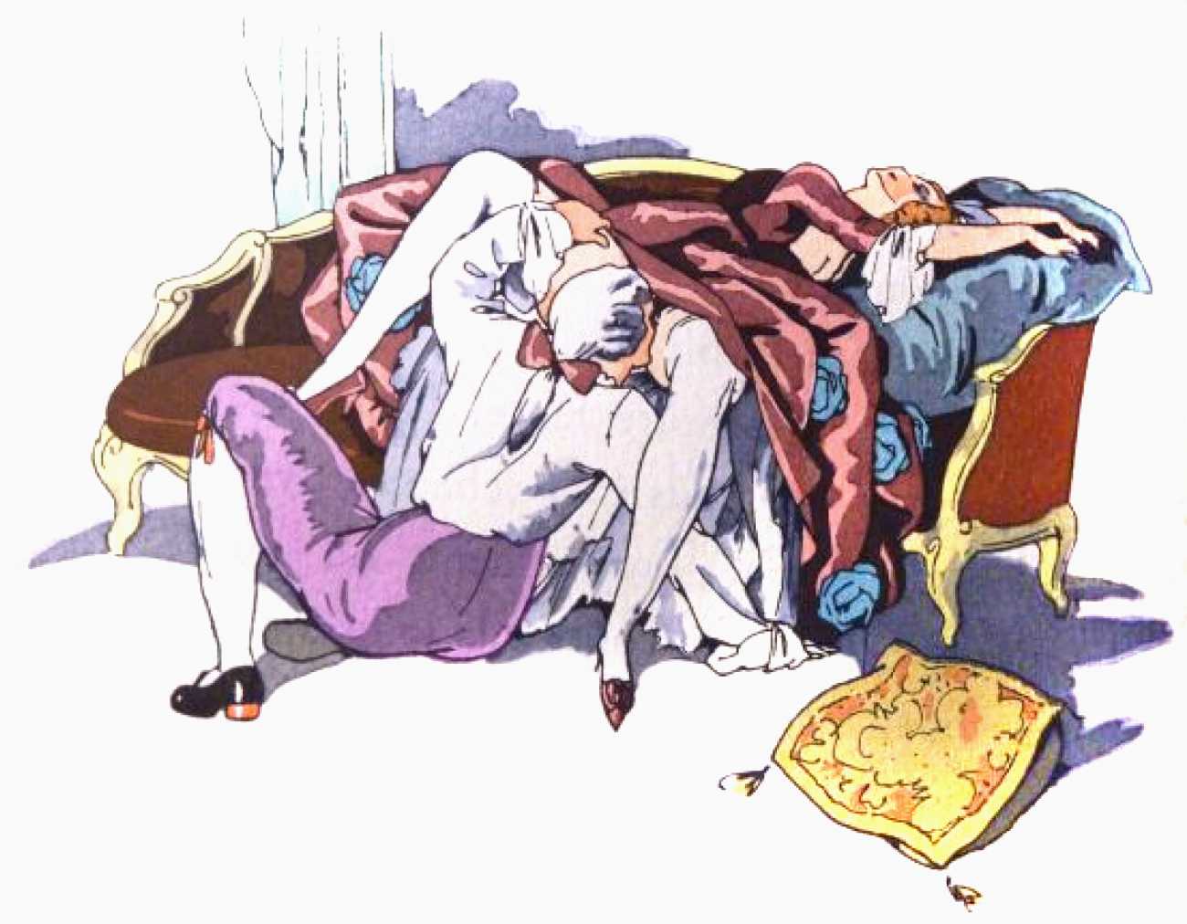 The Fontan illustrations for this edition of Point de lendemain are the most explicit of any of his work, the composition and colouring demonstrating his skill at combining sex and artistry.