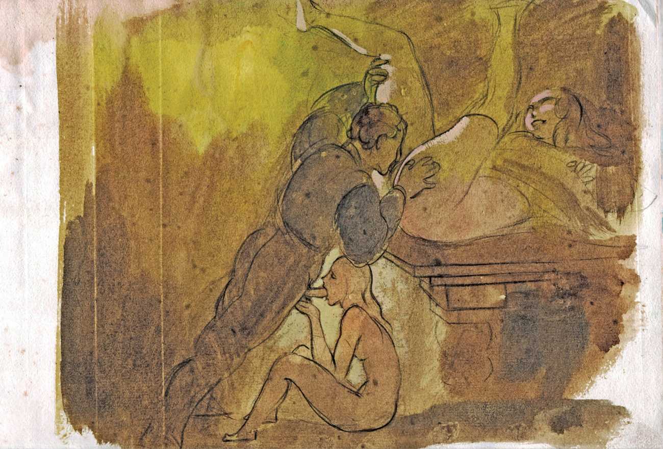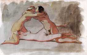 This collection of 26 pastels and watercolours, which we have called The Secret Album, was found after Bonzagni’s too-early death, and shows clearly that his interest in the foibles of human interaction extended beyond studies of high society fashion and dancers into the realm of the erotic.