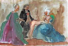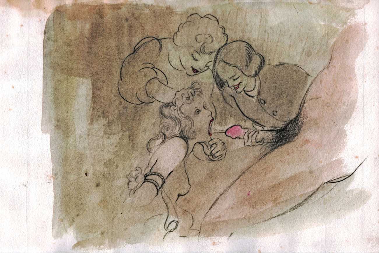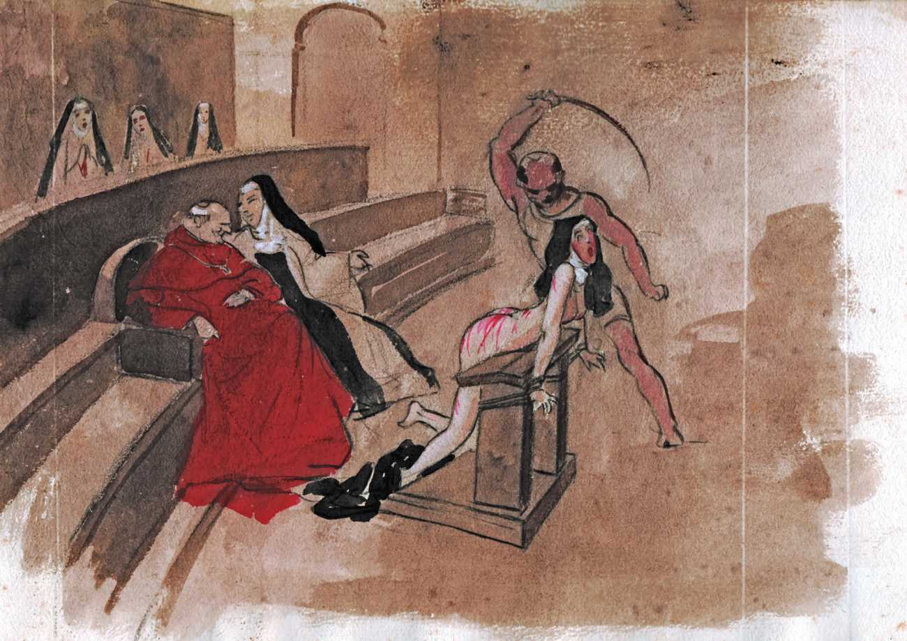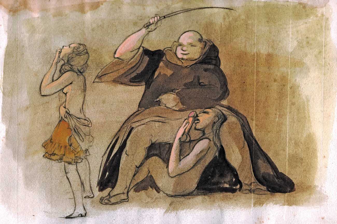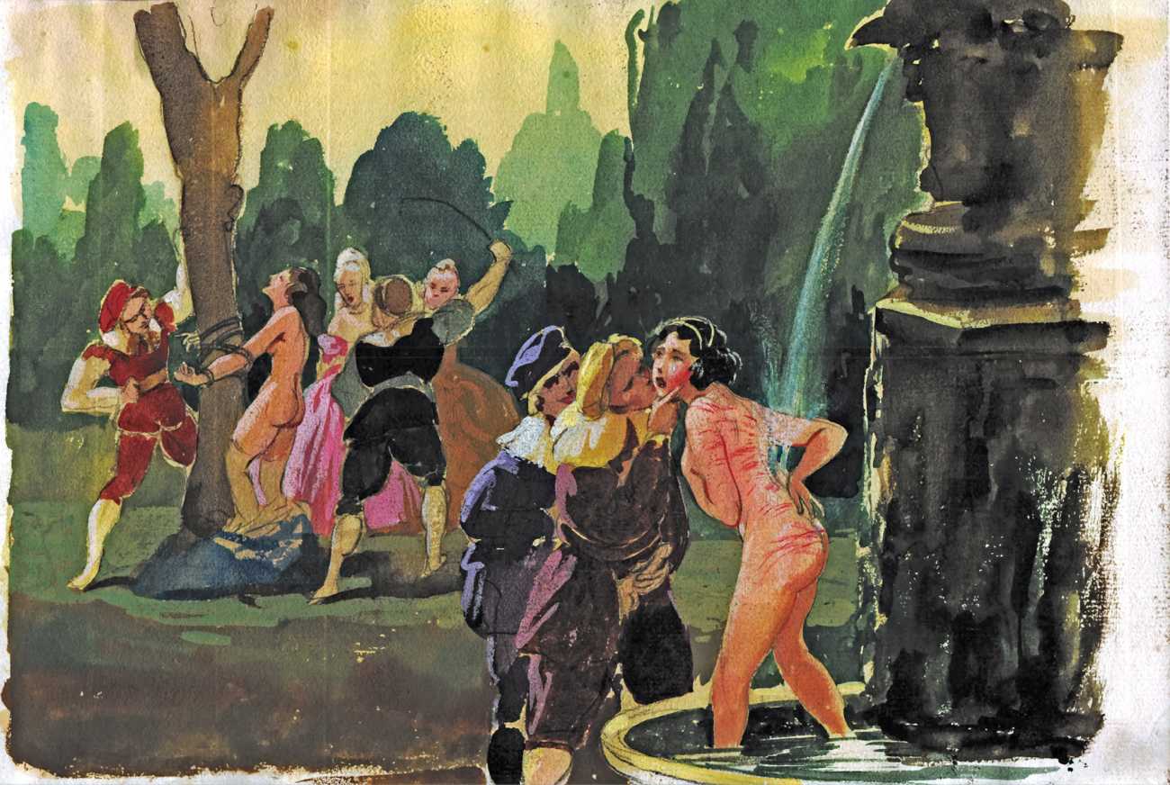Many of the artworks are set in an imagined eighteenth century rococo past, from the coquettish, innocent-looking and cheerful games of lovers, through the intrigue of ‘liaisons dangereuses’, then on into the darkest fantasies of cruel clerics and their victims, underage sex, and the margins of torture. Whatever his subject matter and the fruits of his imagination, Bonzagni brings to his erotic work all the talent, colour and inventiveness for which he is appropriately appreciated as an important figure in early twentieth century art.