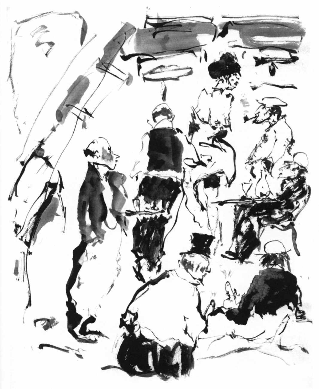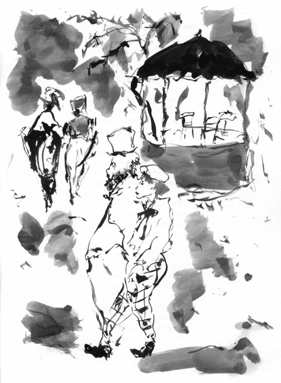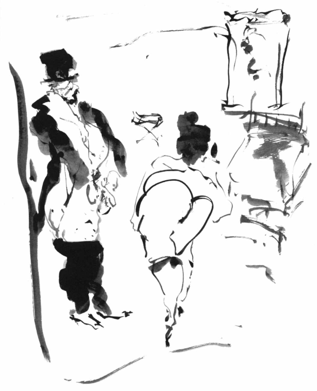 In this collection Romain moves from pure black line to a combination of line and monochrome watercolour wash, thus adding a subtlety to his trademark drawings, illustrations which seem very simple but which convey a great deal of expression, interaction and sense of period.