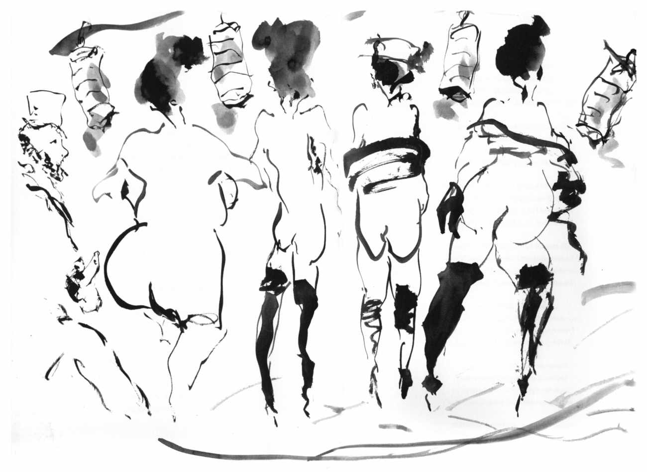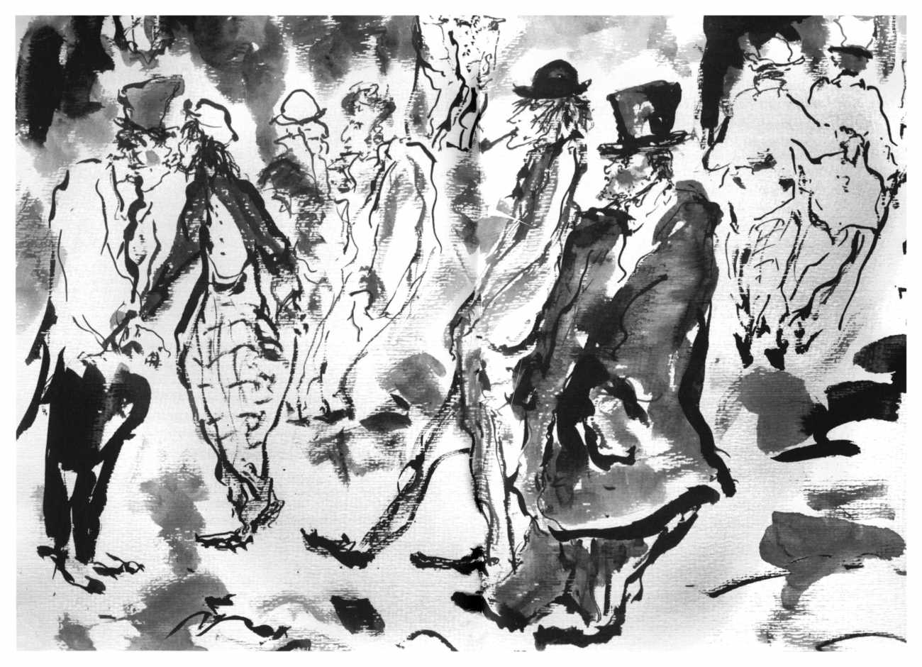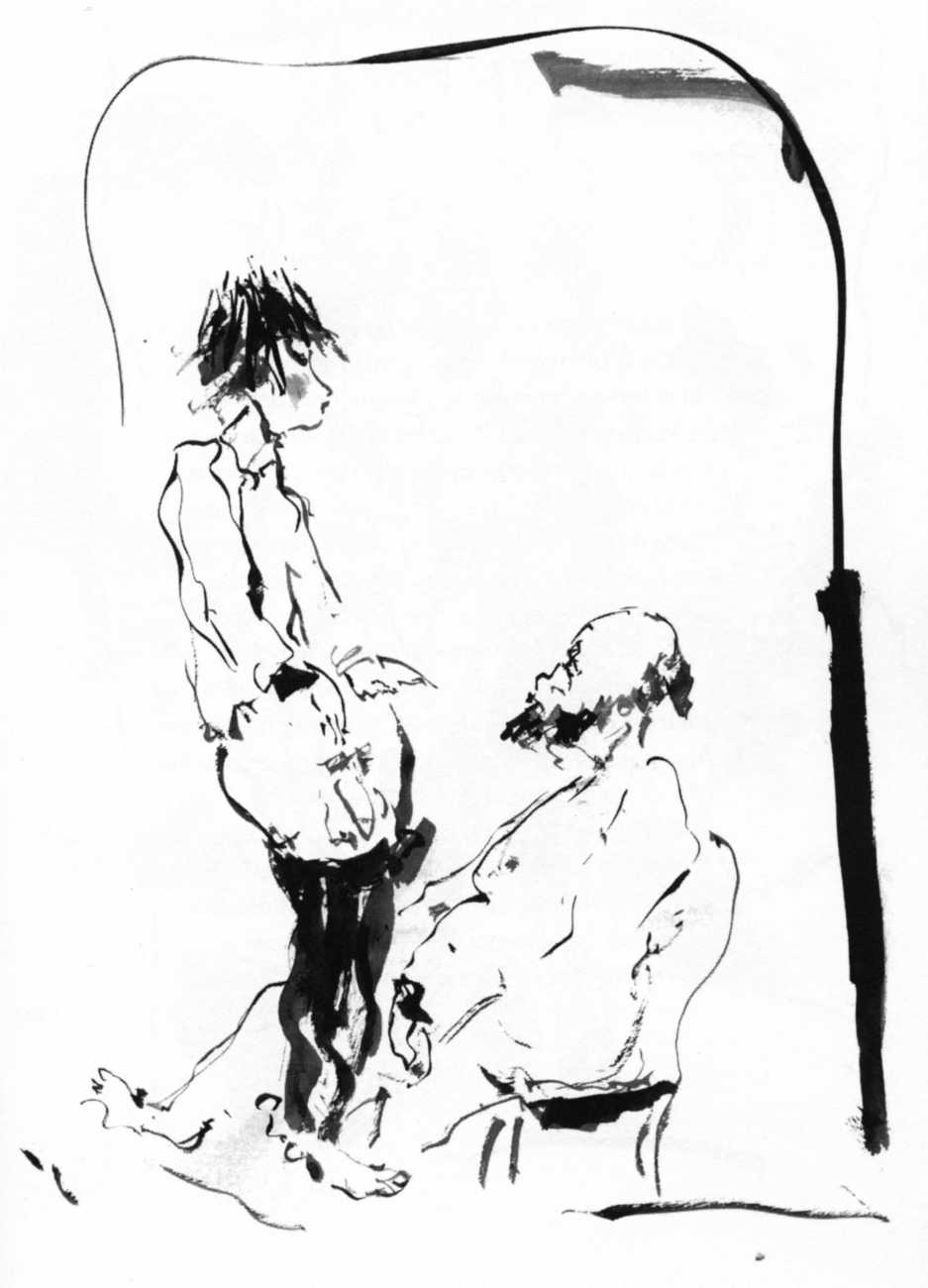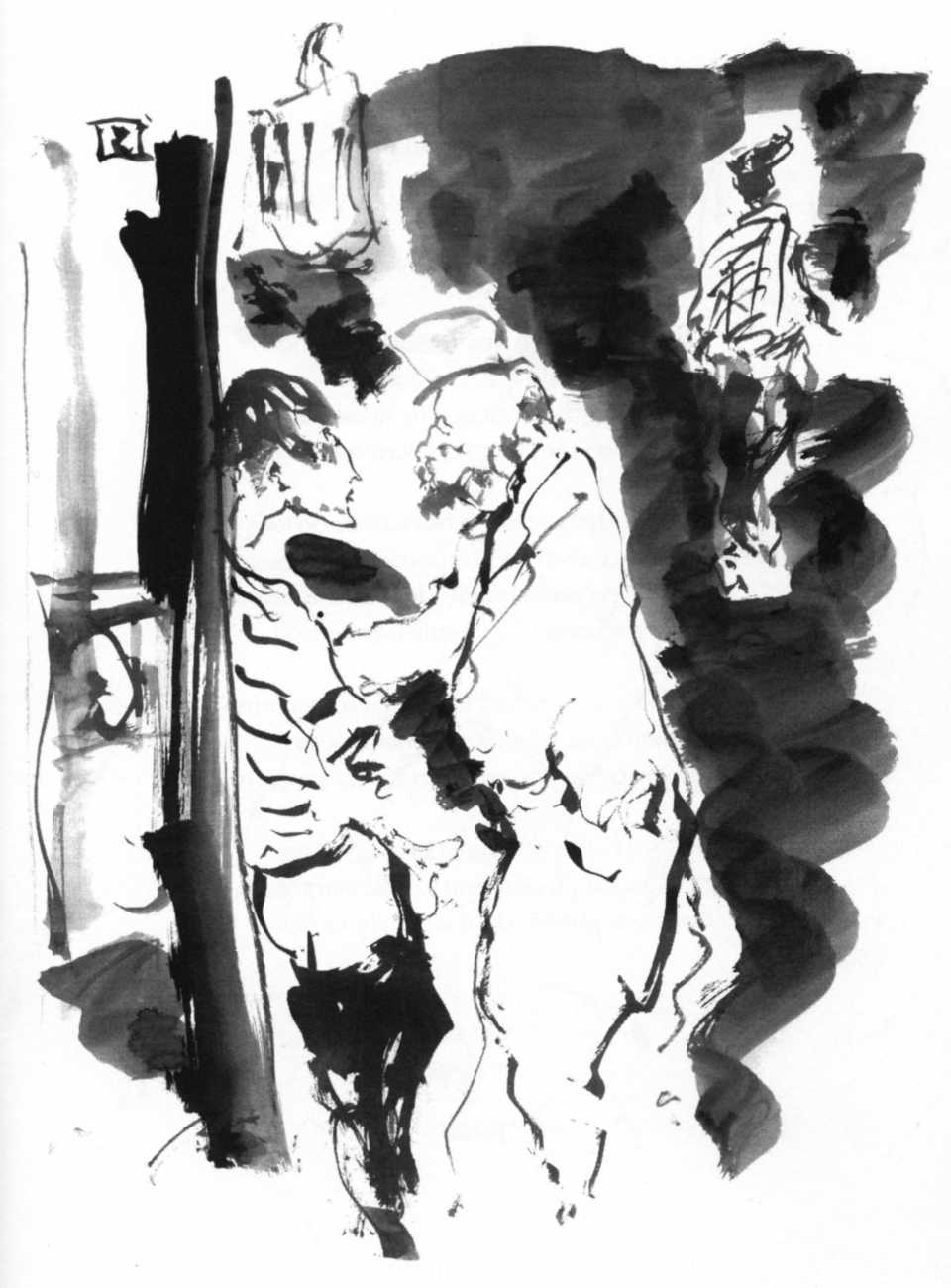 In this collection Romain moves from pure black line to a combination of line and monochrome watercolour wash, thus adding a subtlety to his trademark drawings, illustrations which seem very simple but which convey a great deal of expression, interaction and sense of period.