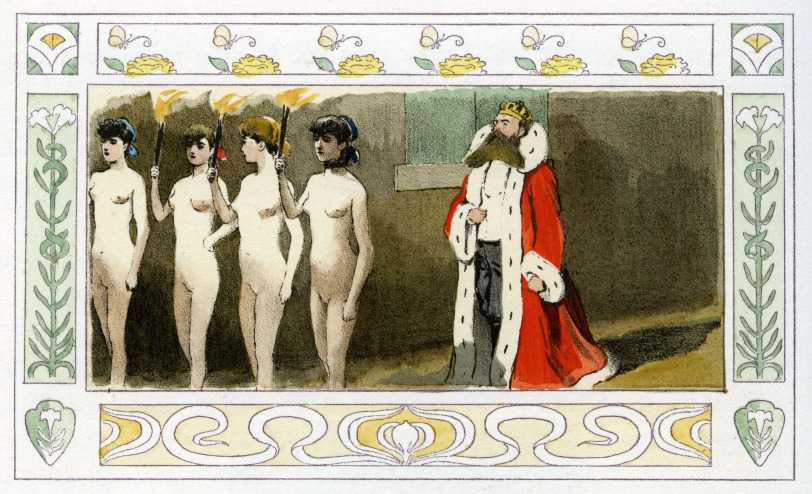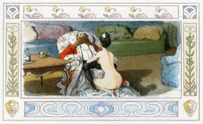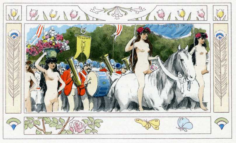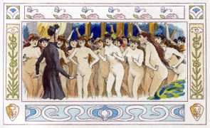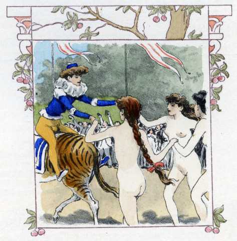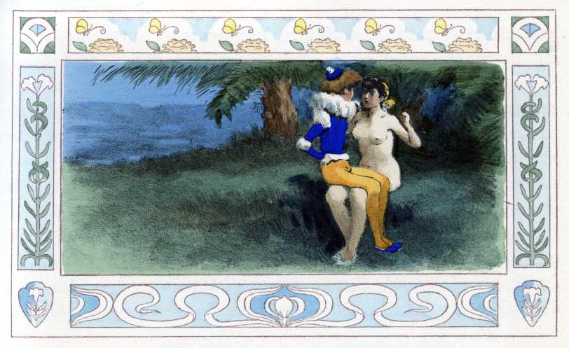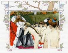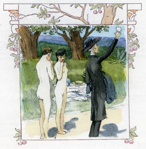 Pierre Vidal’s 48 colour illustrations for Pierre Louÿs’ perennial classic Les aventures du Roi Pausole are among the first visual representations of life in the rural naturist paradise realm of Tryphéme, as Louÿs’ book had only been published in 1901. They have a freshness lacking in many of the later illustrators’ efforts, helped enormously by the high quality of the colour reproduction in Blaizot’s limited edition.