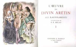 The Raoult edition of L’oeuvre du divin Arétin: Les ragionamenti (The Works of the Divine Aretino: The Reasonings) was published in a boxed, limited numbered edition of 375 copies.