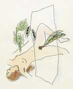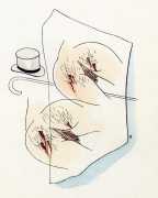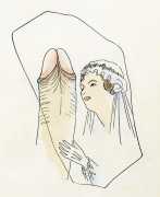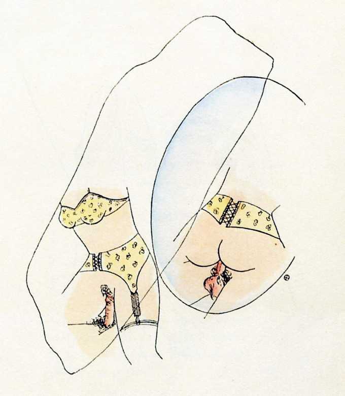 Toyen produced ten drawings for Pybrac, which are as explicit as they are personal. At the time she created them she was also regularly producing drawings for Štyrský’s Erotická revue, and some of the subjects clearly emanate from the same creative well.