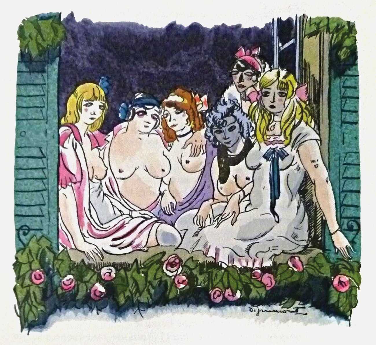 La Maison Philibert, the sixth novel of the openly gay novelist, journalist and critic Jean Lorrain, is seen by many social historians as one of the best sources of information about the French urban underworld of prostitution and its clientele around the turn of the nineteenth century. Lorrain, with the help of his friend the police commissioner Oscar Métenier, was in a position to record and understand the morals, systems and language of the demi-monde as accurately as anyone, and André Dignimont’s illustrations, also based on the creator’s personal experiences, are a perfect foil to Lorrain’s 1904 novel.