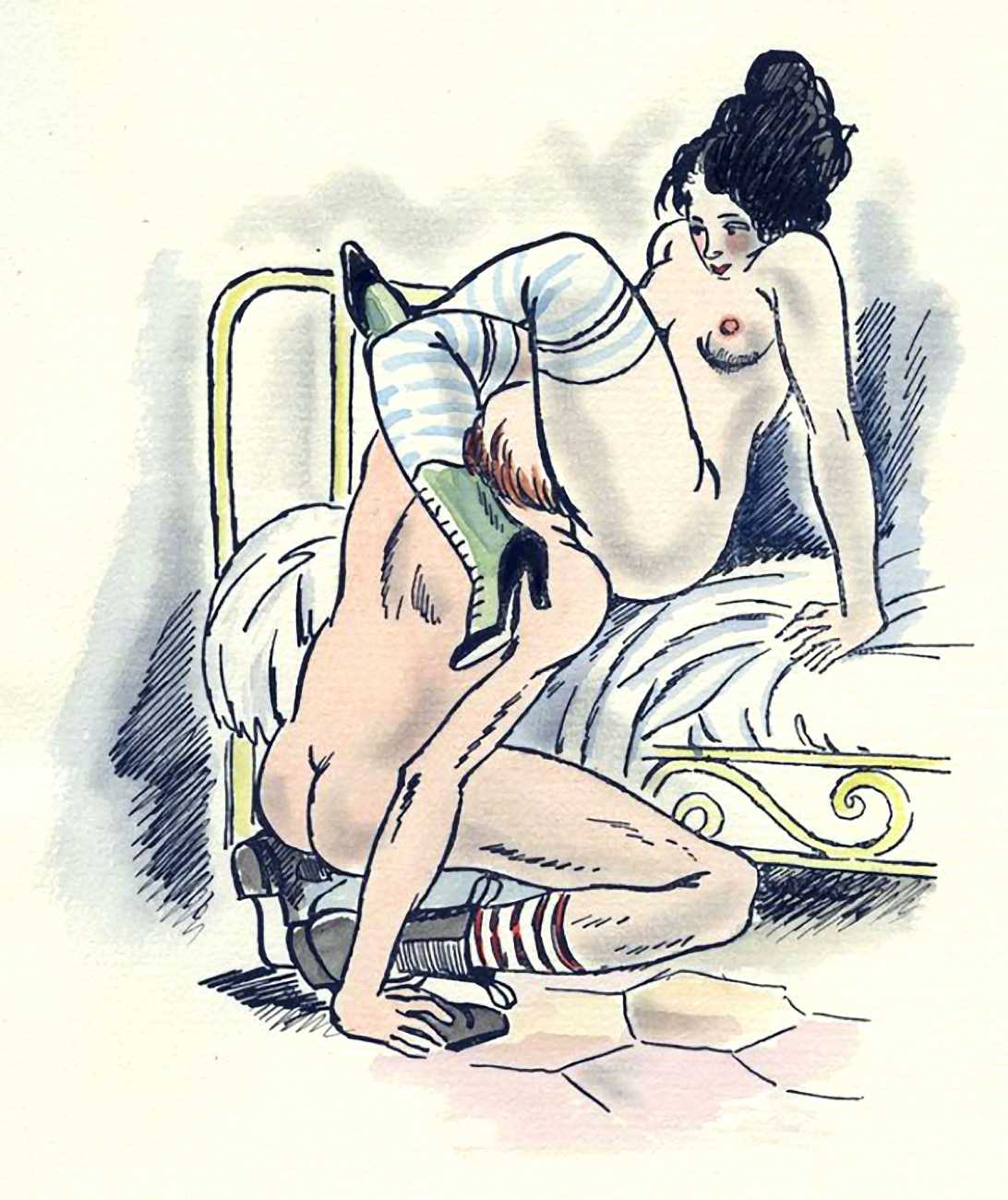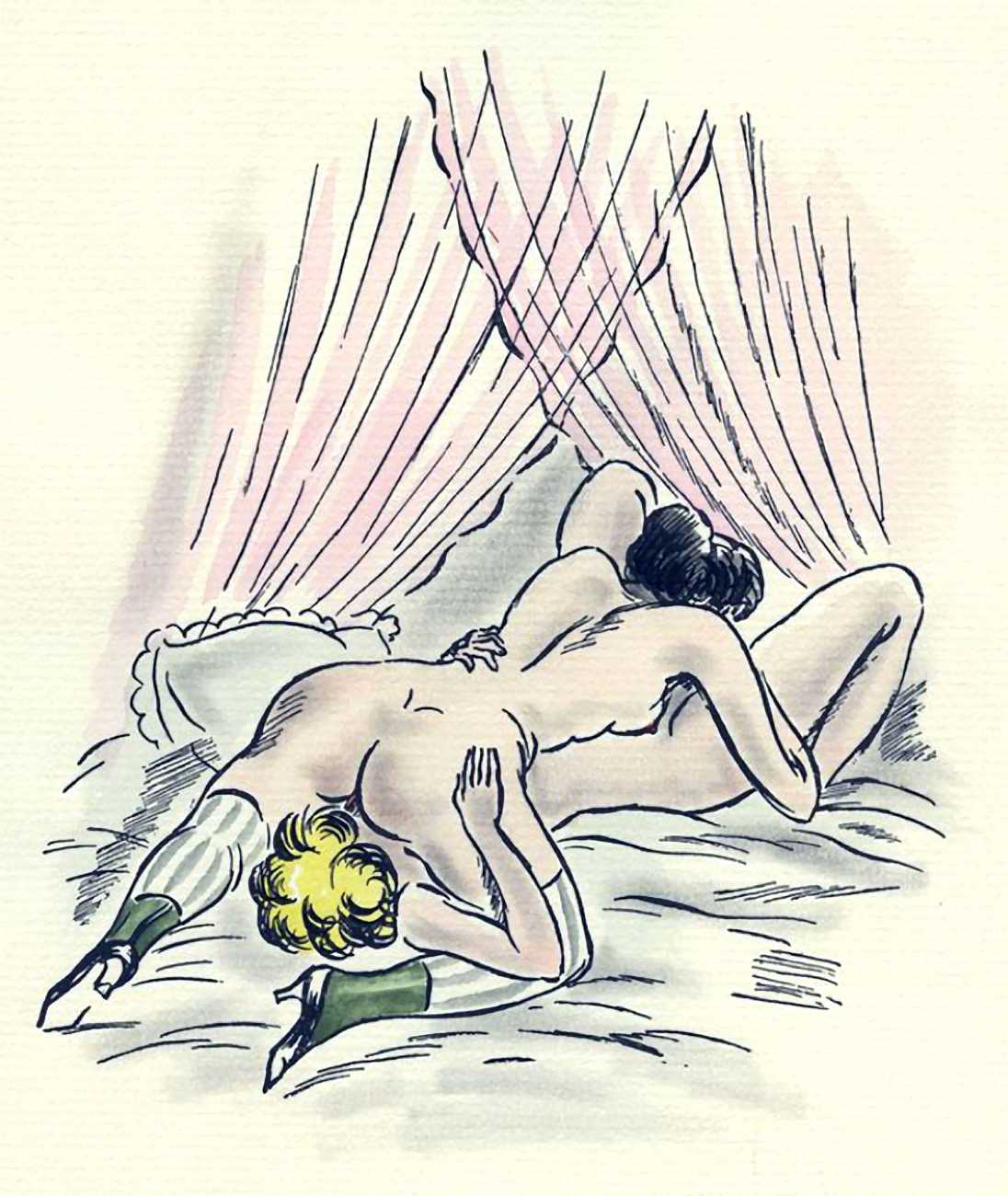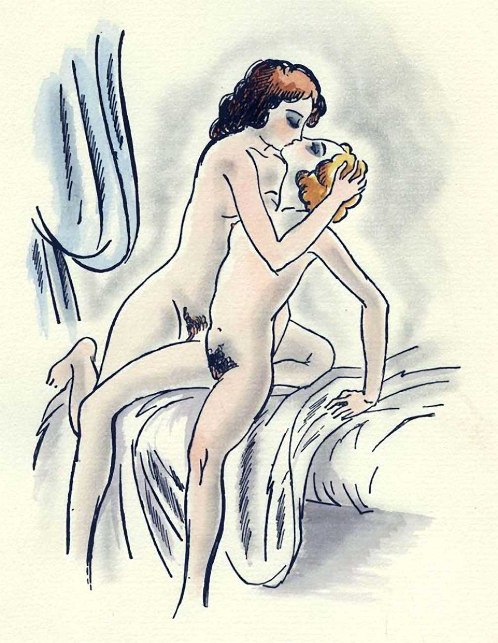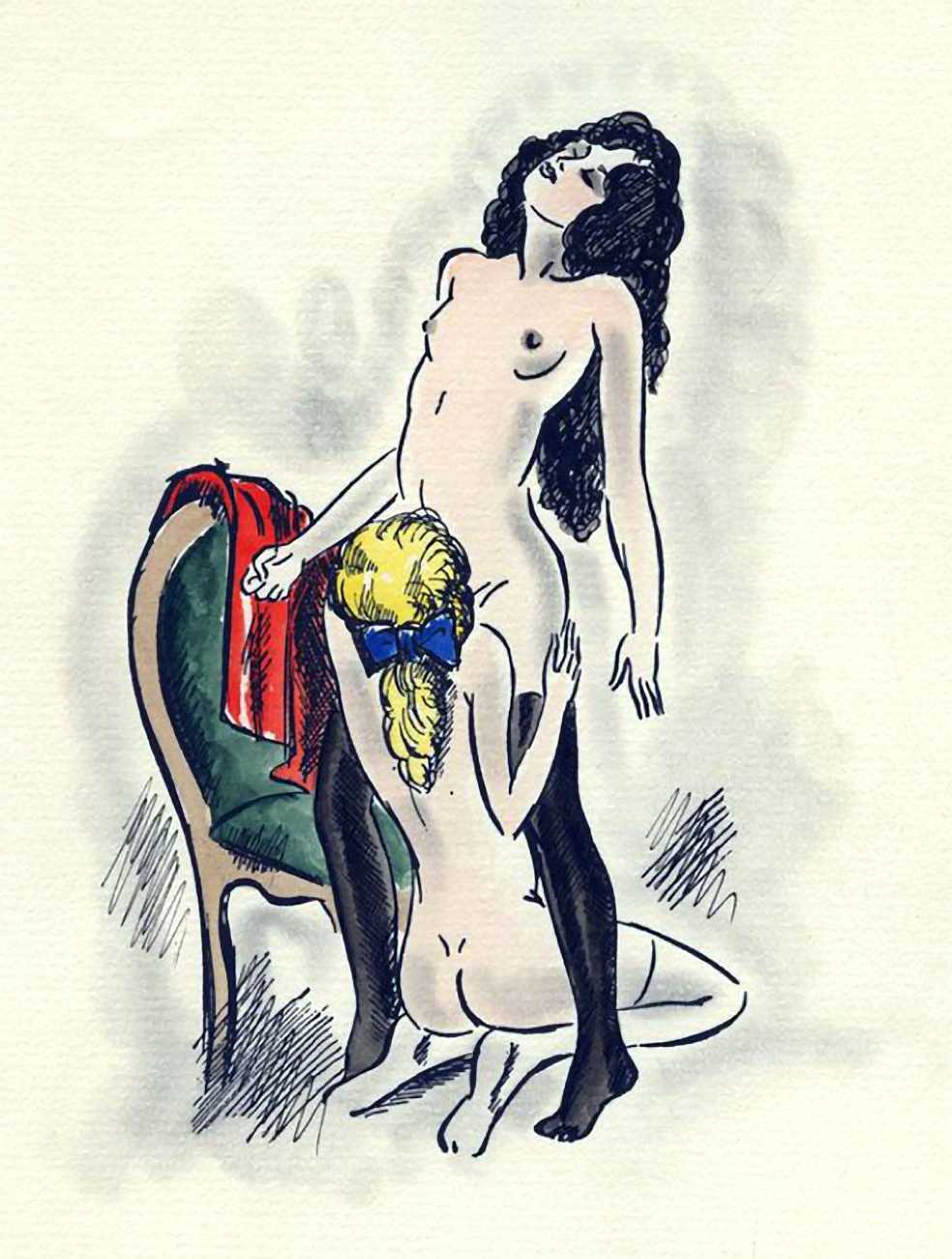 So are these drawings by the prolific Dignimont? The subject matter would have been very familiar to him, but the style appears a little cruder than most of his work, more akin to that of André Collot, whose 1935 Séductions you can see here. You be the judge.