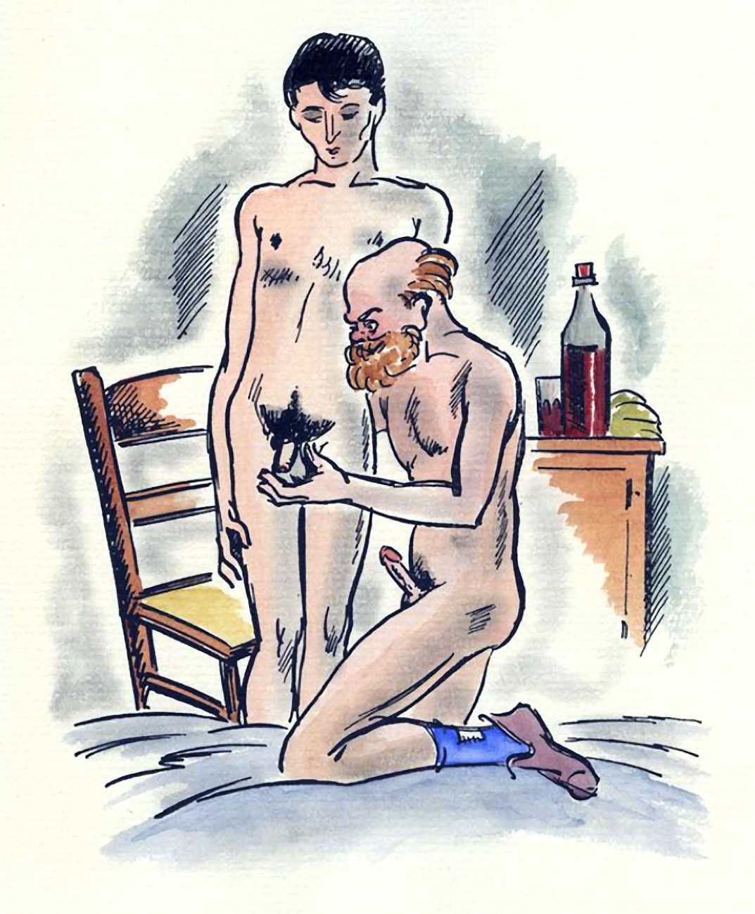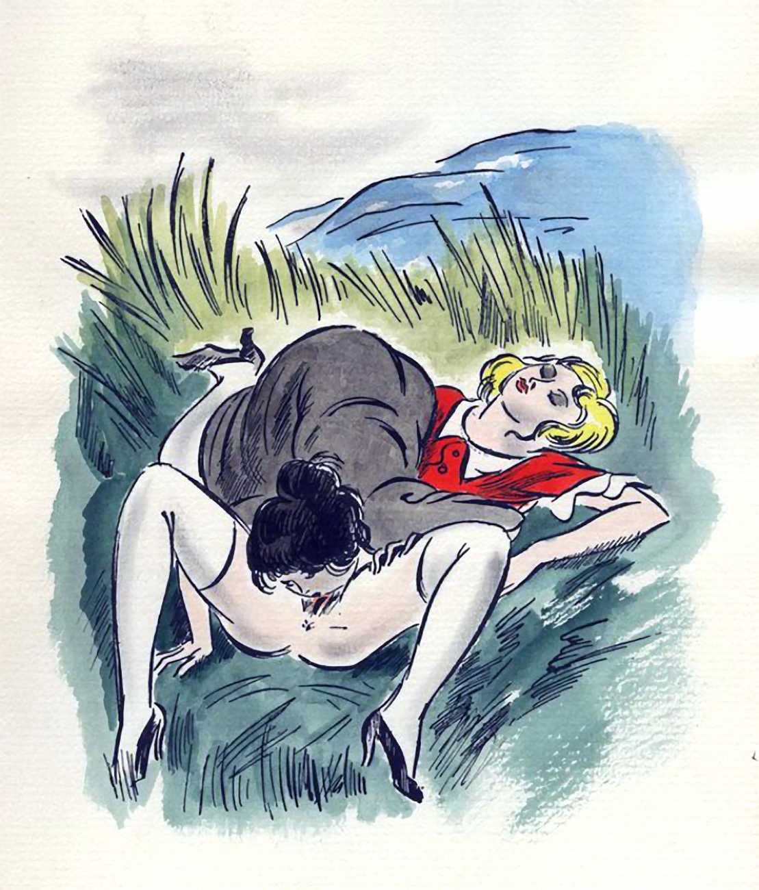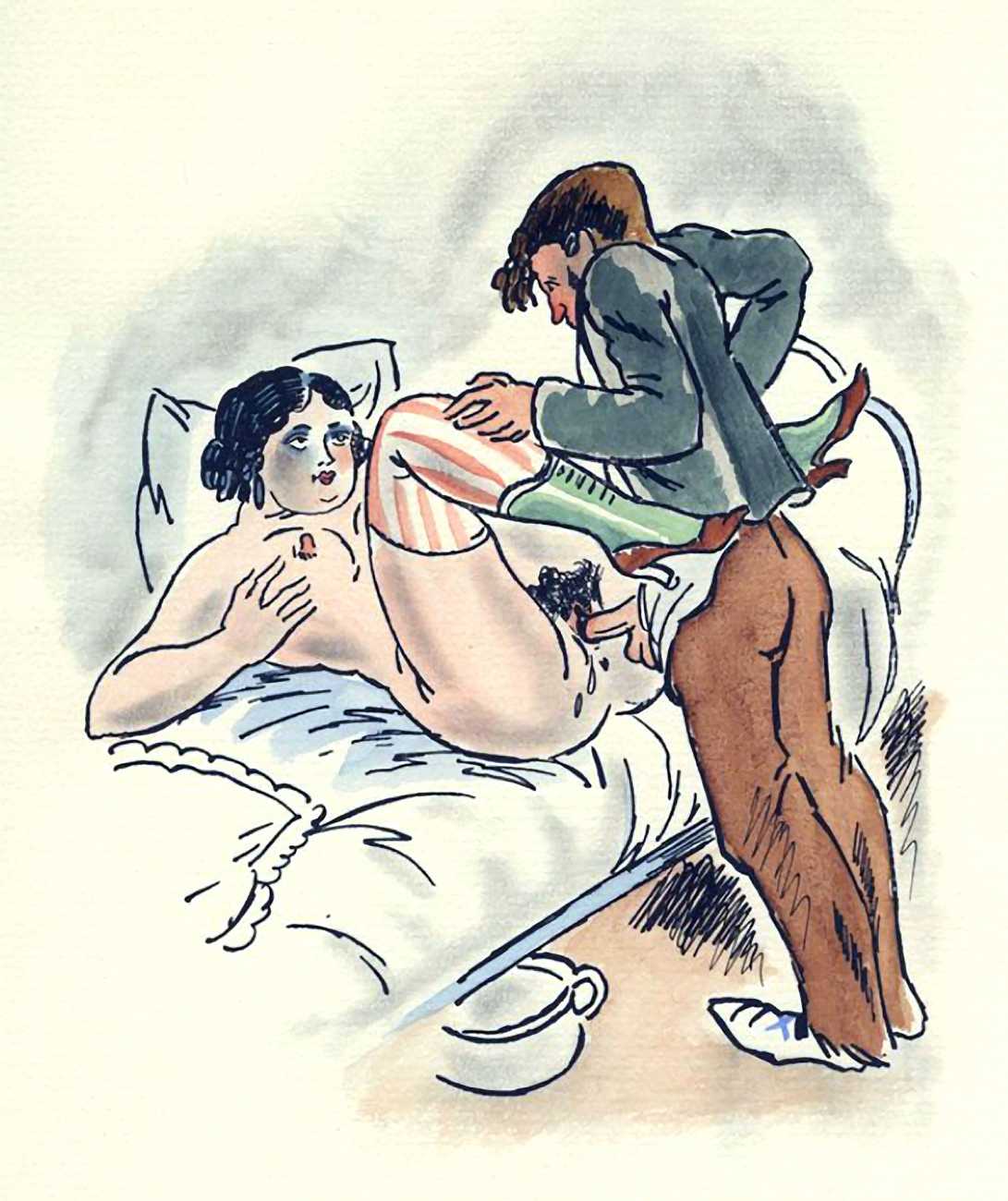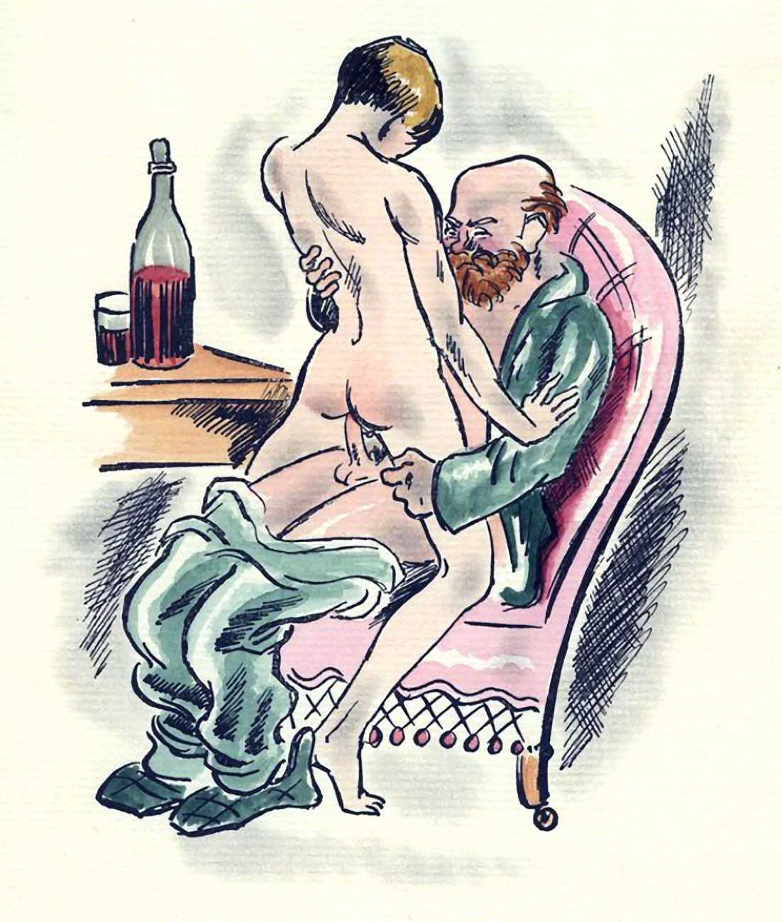 So are these drawings by the prolific Dignimont? The subject matter would have been very familiar to him, but the style appears a little cruder than most of his work, more akin to that of André Collot, whose 1935 Séductions you can see here. You be the judge.
