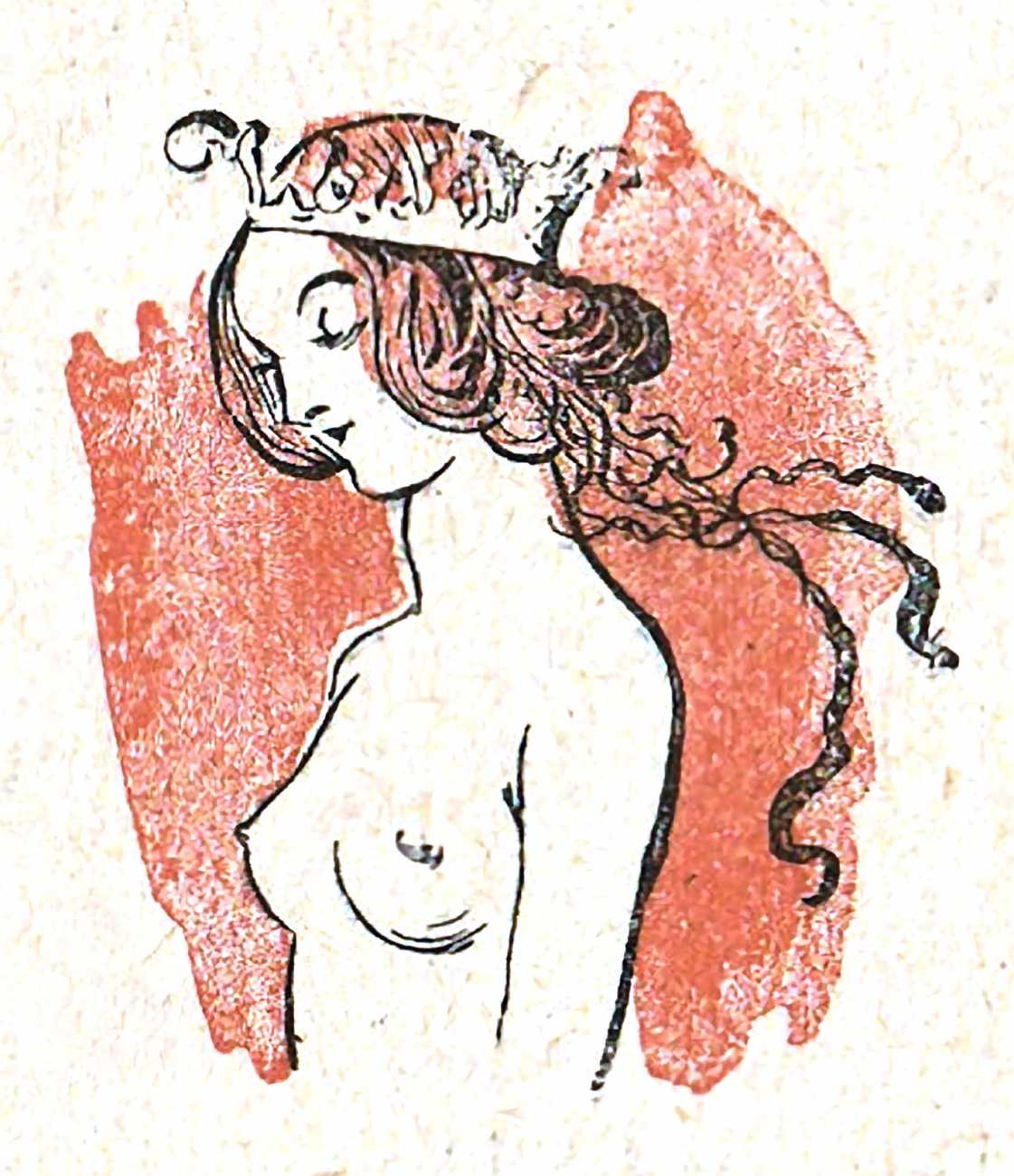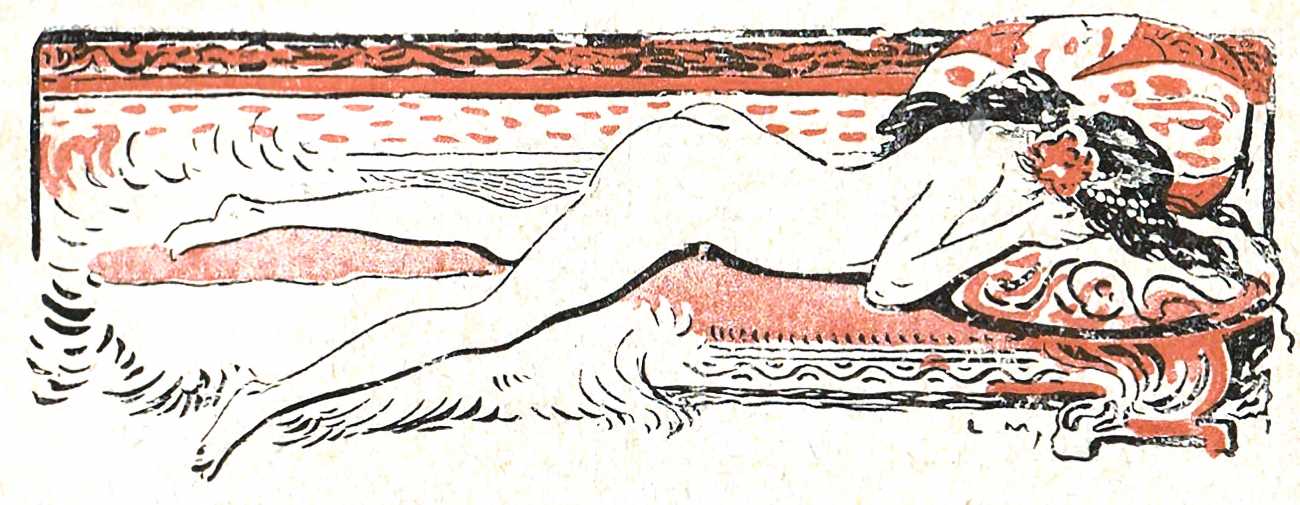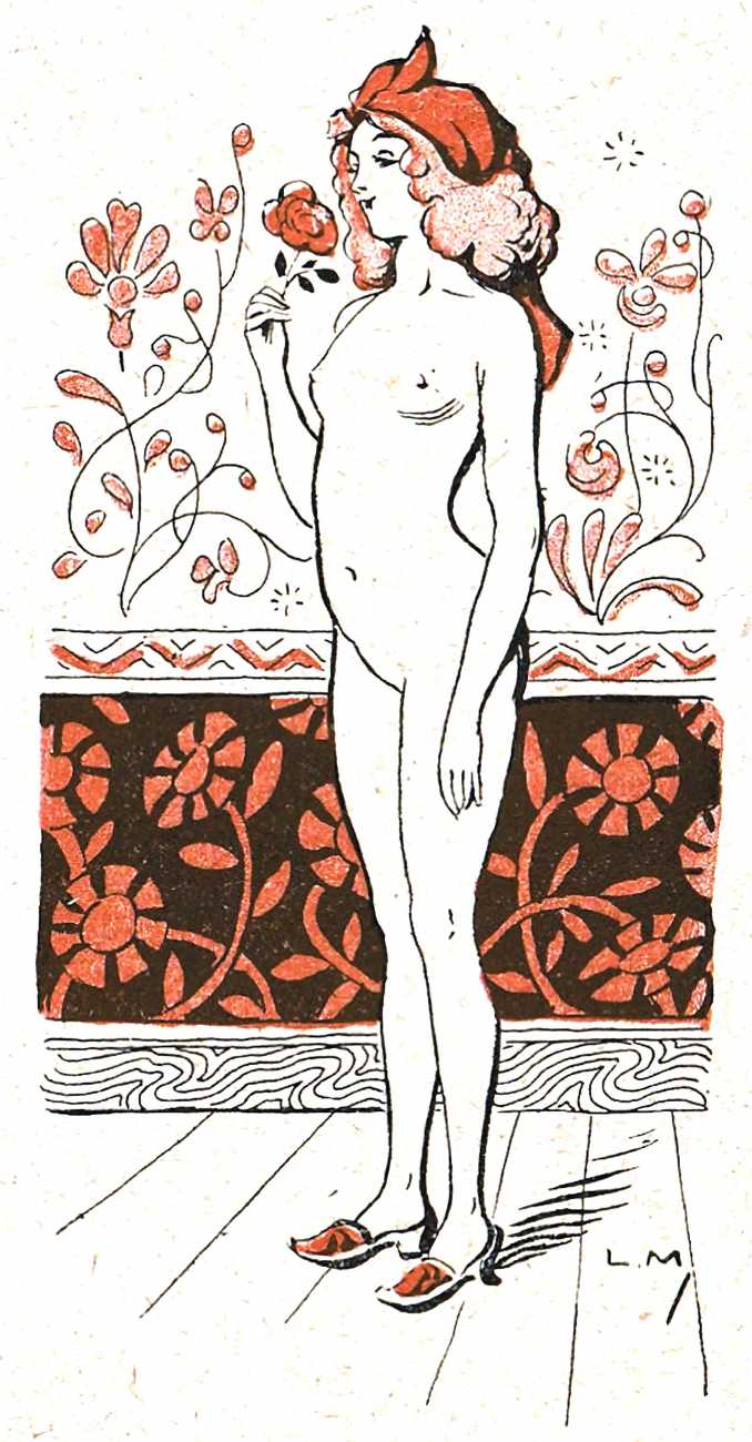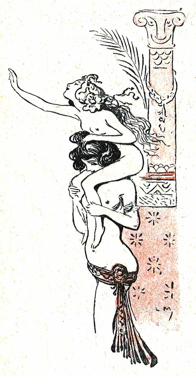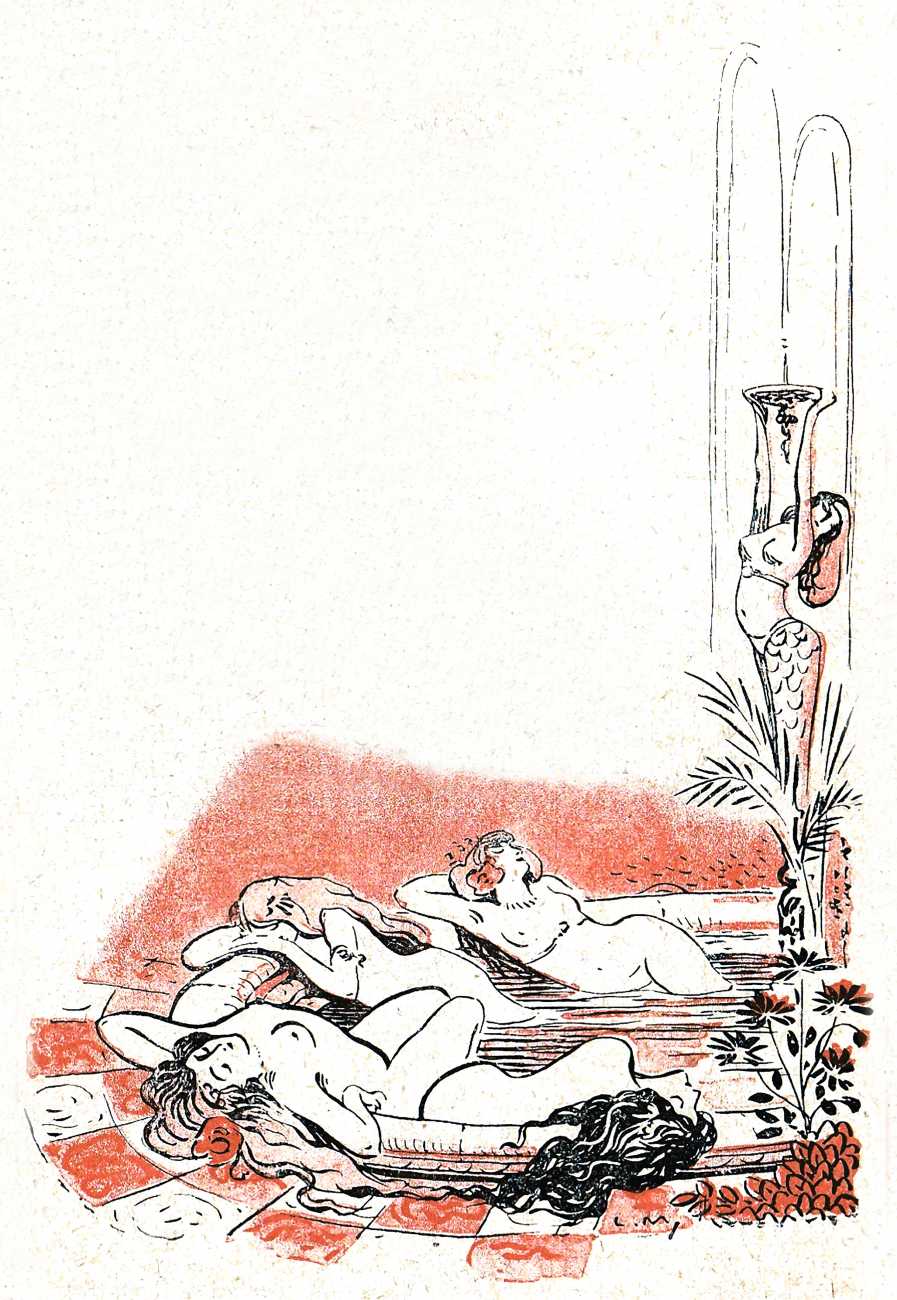 Pausole had been illustrated several times before, and would be many times again, but in one of the most extensively-illustrated editions of the book, with more than a hundred illustrations, Lucien Métivet made the most of the Tryphême tradition that all young beautiful women go naked as much of the time as possible.
