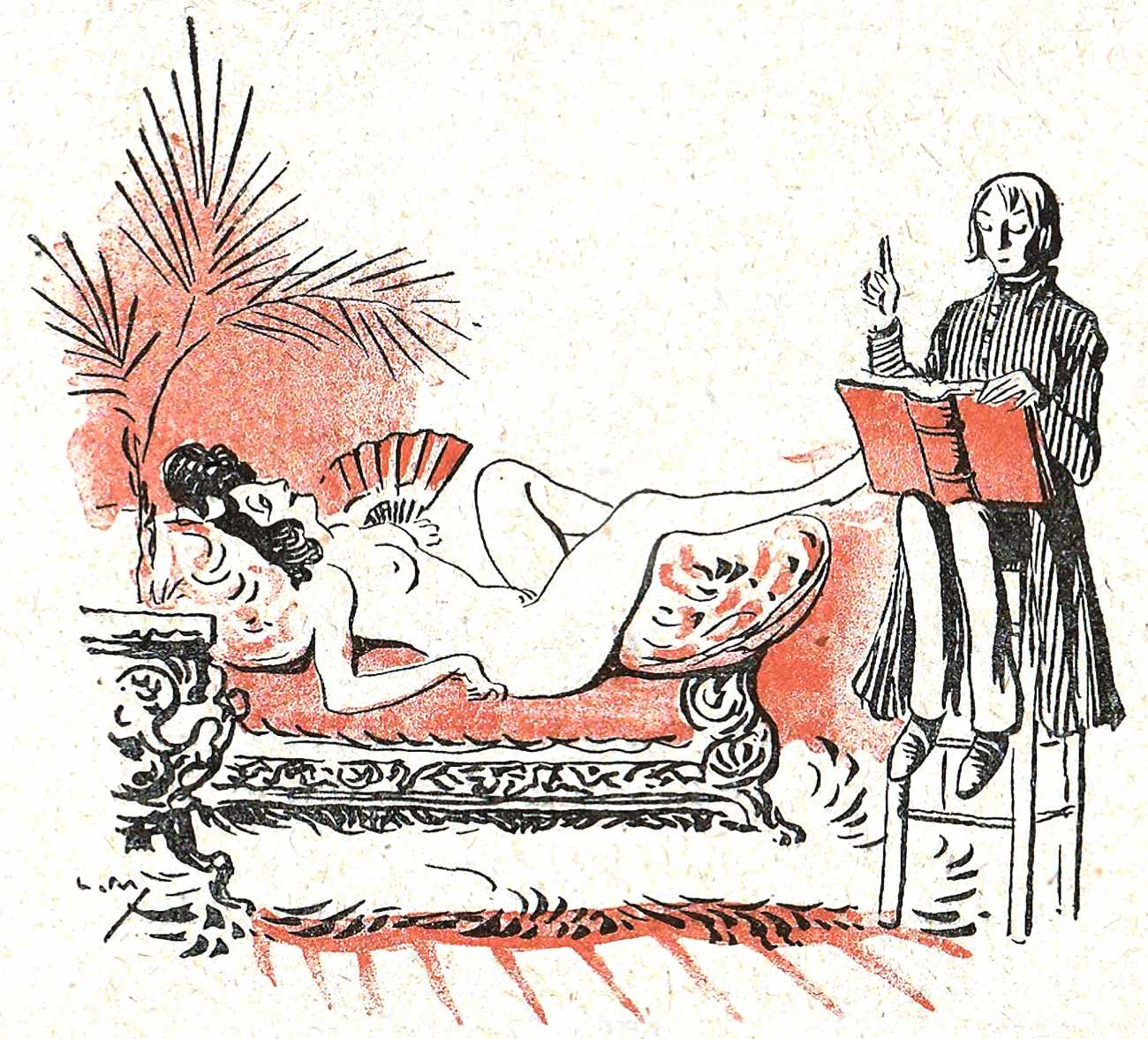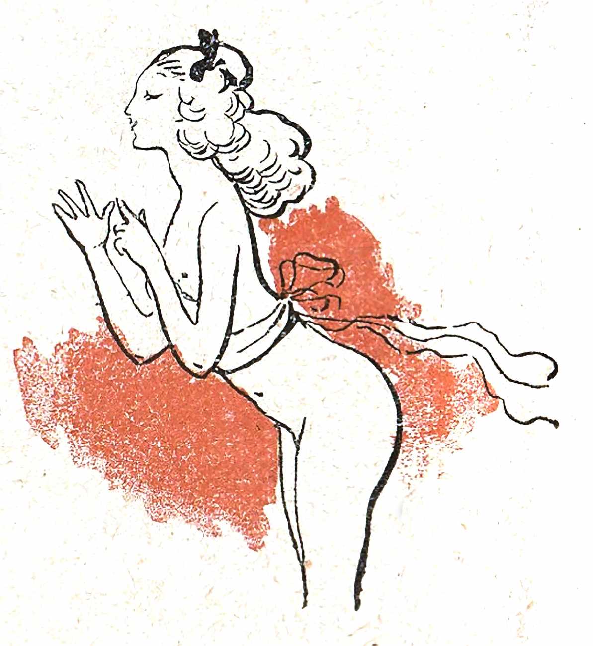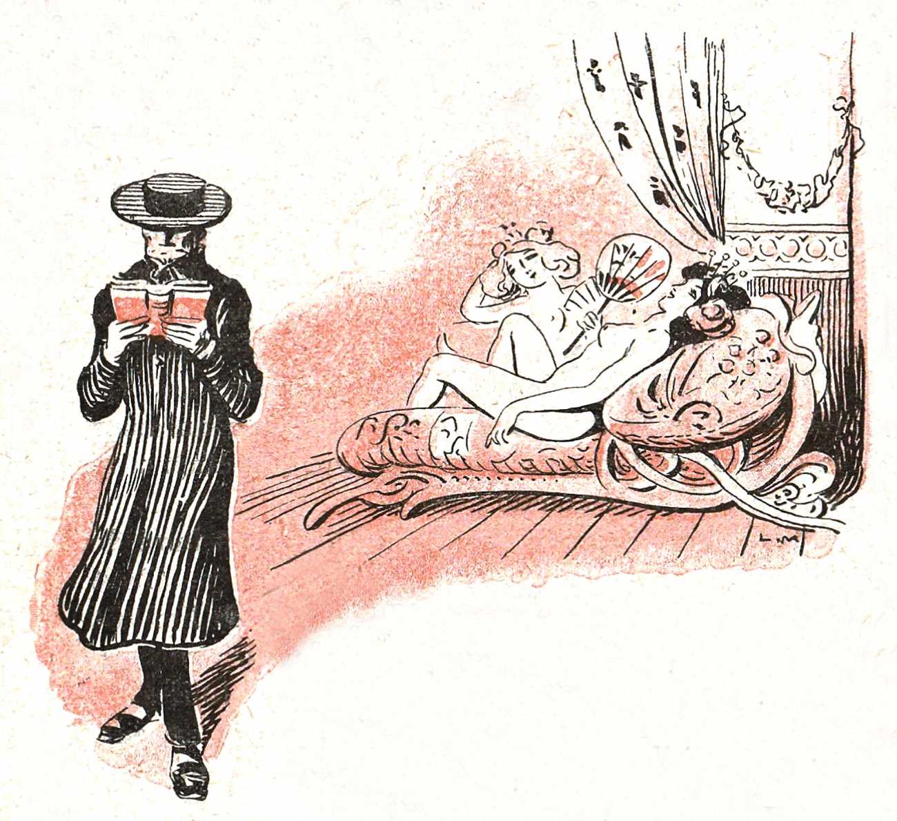 Pausole had been illustrated several times before, and would be many times again, but in one of the most extensively-illustrated editions of the book, with more than a hundred illustrations, Lucien Métivet made the most of the Tryphême tradition that all young beautiful women go naked as much of the time as possible.