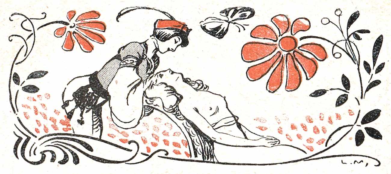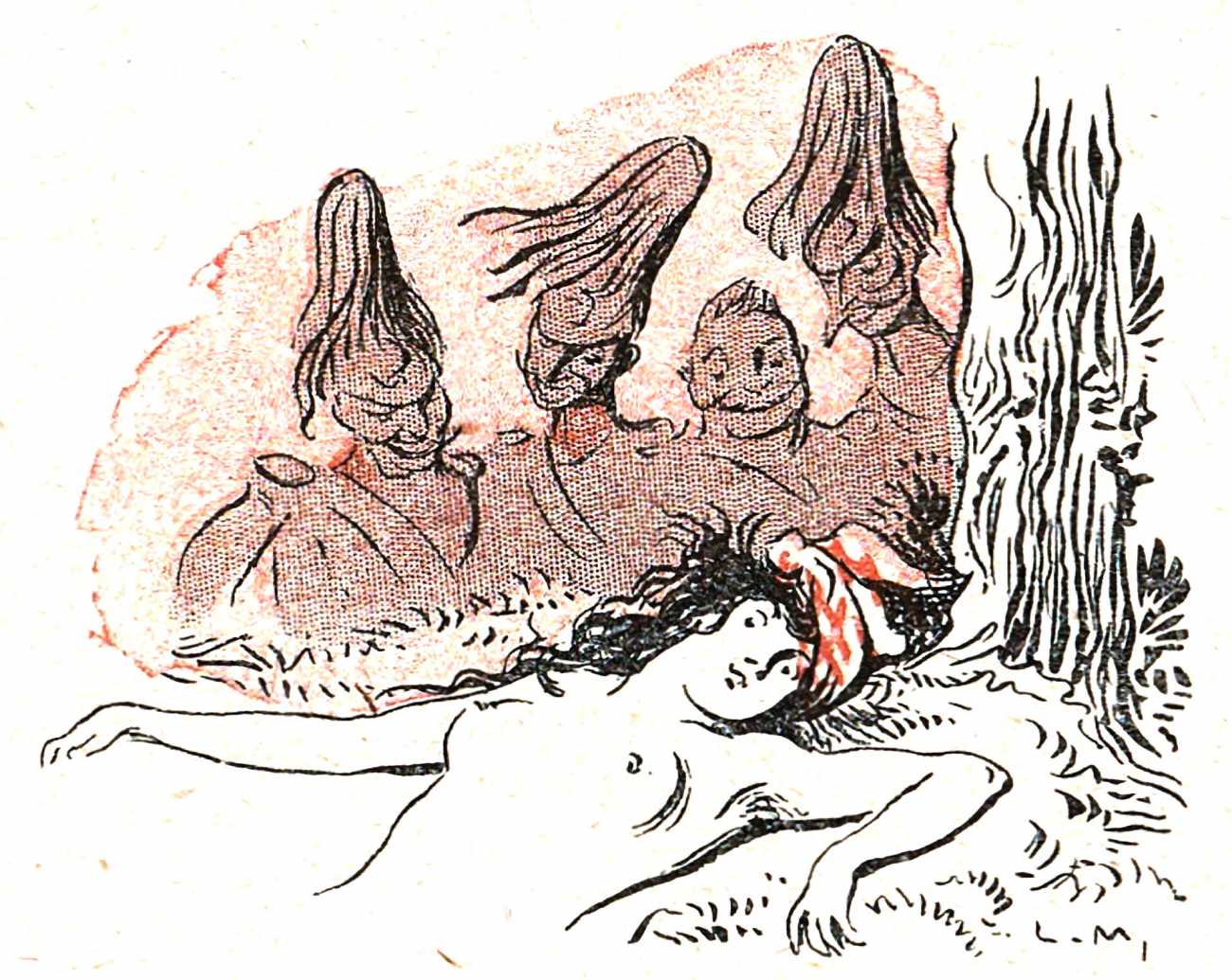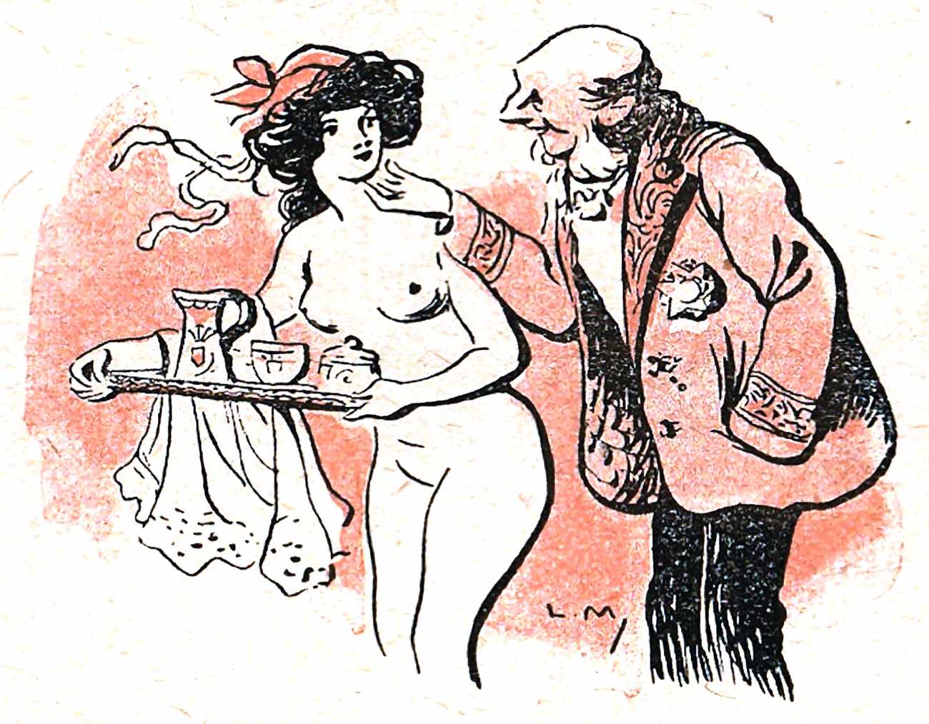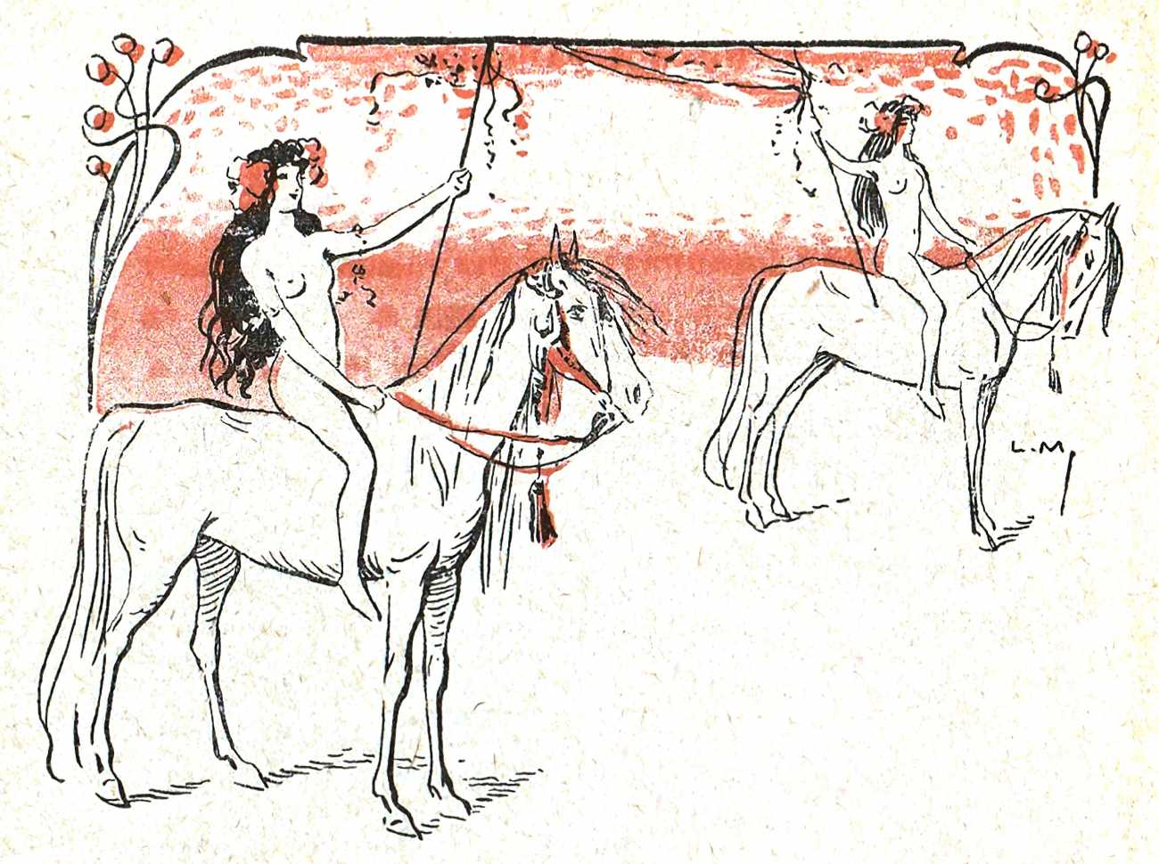 Pausole had been illustrated several times before, and would be many times again, but in one of the most extensively-illustrated editions of the book, with more than a hundred illustrations, Lucien Métivet made the most of the Tryphême tradition that all young beautiful women go naked as much of the time as possible.