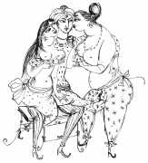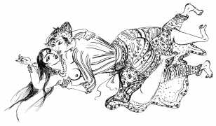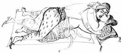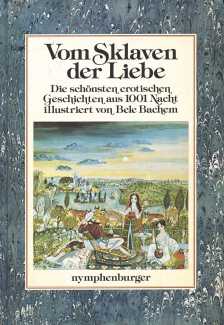 Vom Sklaven der Liebe (From the Slave of Love) is a retelling by Josef Thanner of eleven of the more erotic tales from the Arabian Nights, illustrated by Bele Bachem in a simple pen-and-ink line style which works well with the clear text. This edition also includes eight Bachem colour plates, but reproduced so small and poorly that they detract from the book rather than adding to it.