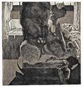 The themes of Die Bonbonnière are darker and more enigmatic than much of von Bayros’s work, and include an unlikely rhinoceros and a couple of black lovers.