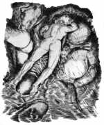 Tavy Notton’s first book erotic illustration commission, this was only the second time after Frans de Geetere’s 1925 etchings for Arthur Rimbaud’s poem about the joyous animal nature of sex that these highly explicit poems had been illustrated. You can see the de Geetere illustrations here.
