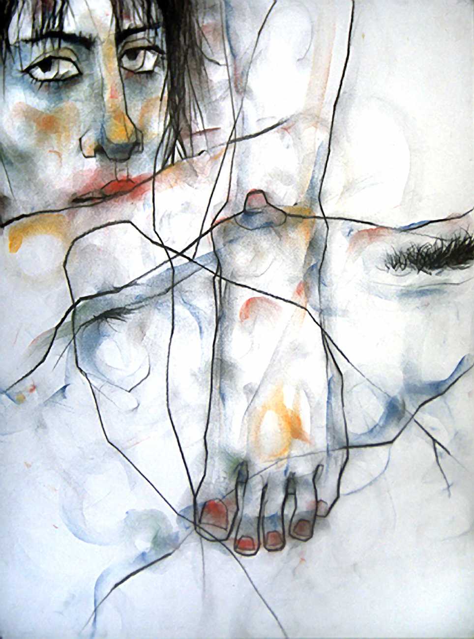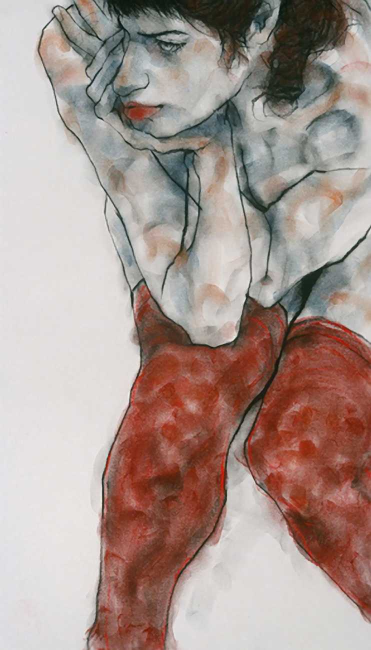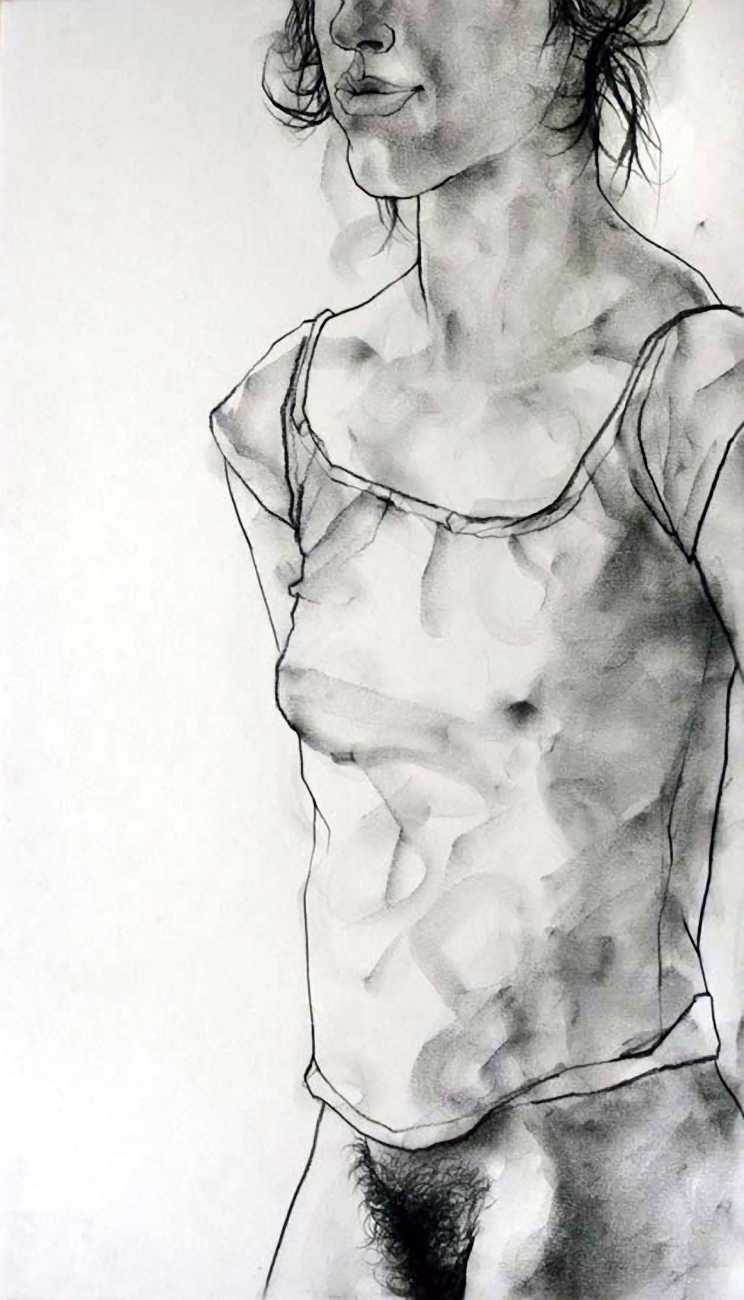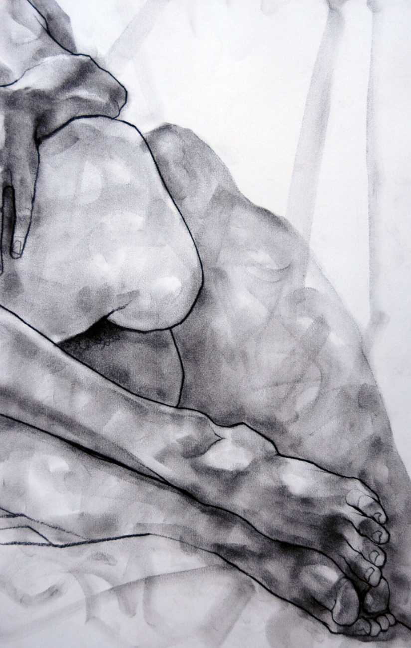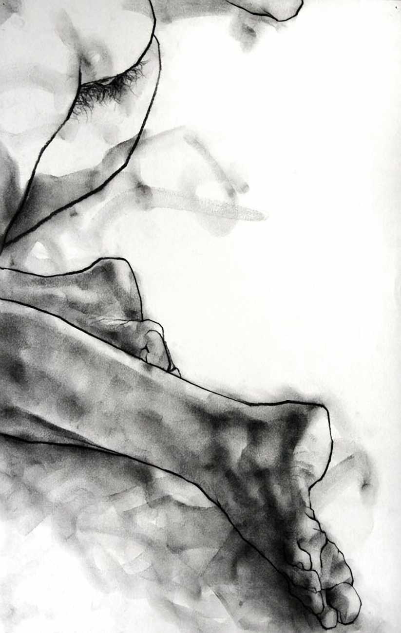 It is in Phillip Dvorak’s drawings, usually in monochrome pencil or charcoal though often highlighted in subtle watercolour wash or coloured pencil, that his skill in what he calls his Zen way of seeing is most obvious. He rarely draws a complete figure, concentrating instead on the elements and shapes that most catch his exploratory eye.