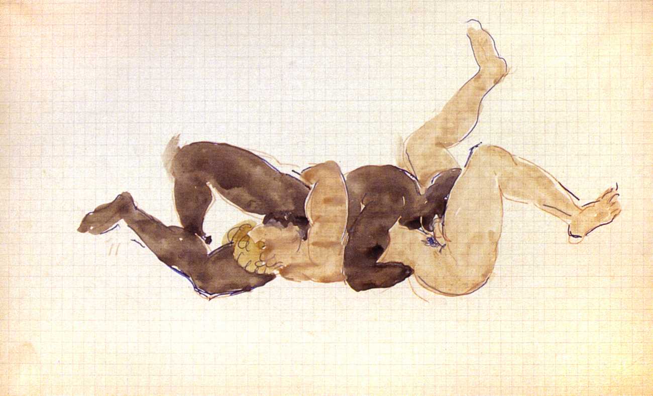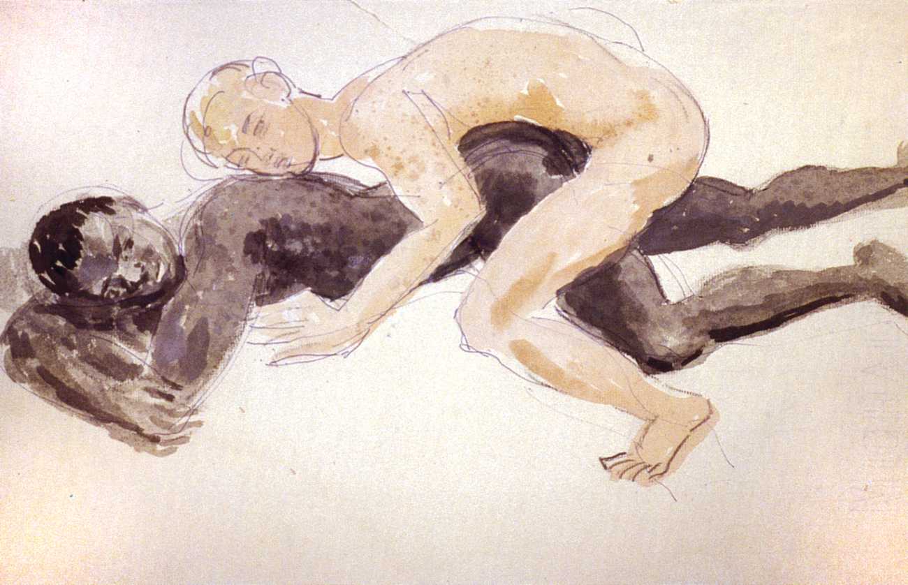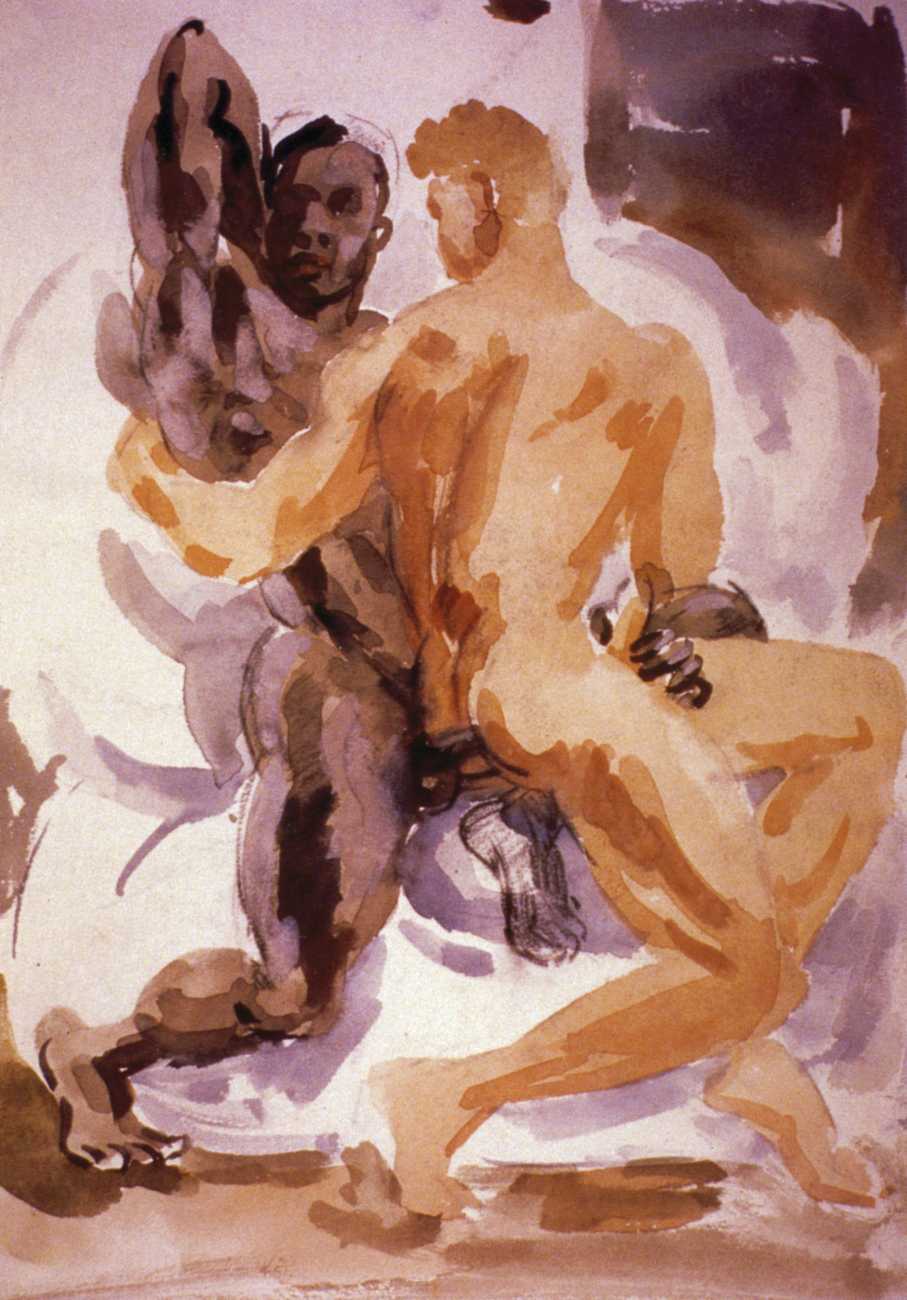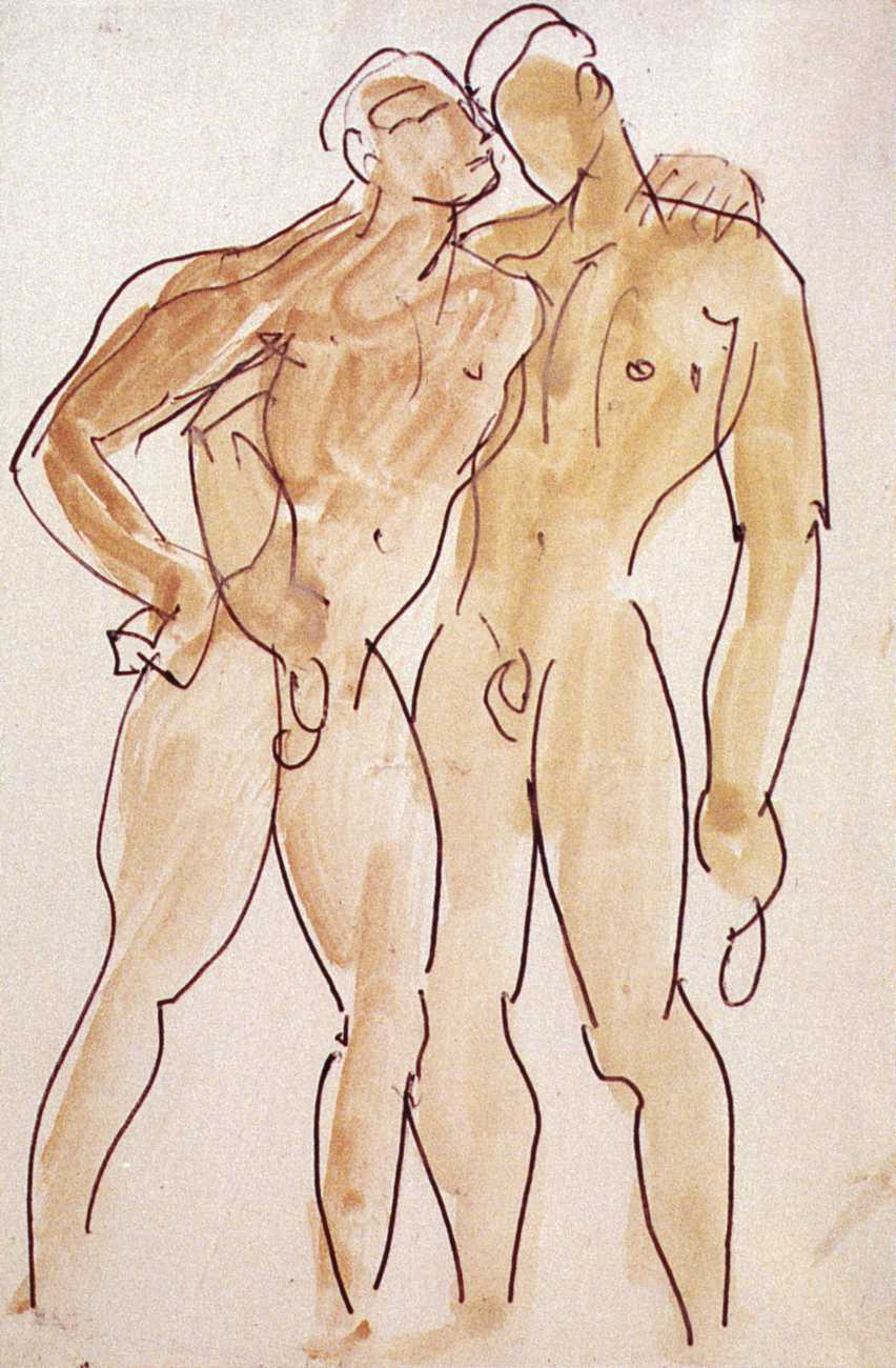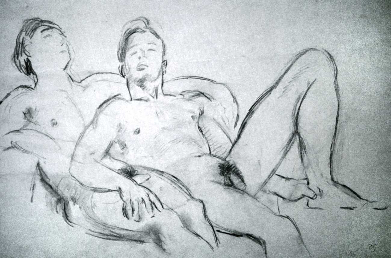 In 1989 The Gay Men’s Press brought together the largest collection of Duncan Grant’s homoerotic work that had been seen together in a volume titled Private, with an extensive and informative biographical and contextual introduction by the writer and film producer Douglas Blair Turnbaugh. Turnbaugh’s text remains the best introduction to Grant’s erotic work, explaining that ‘Through his art, Duncan Grant bequeathes to anybody with liberated common sense this legacy of interpretation of his consciously personal, original experience. What incredible power these fragile, vulnerable images hold for us today. It is a legacy of optimism and hope in time of despair. Duncan uses allegory, metaphor, thought, reality and fantasy to make his statements, but he never uses them to protect himself, and he certainly never uses a figleaf or posing strap as a concession to the bowdlerisers. In Duncan’s work, there is no code to break.’