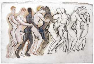 As a postscript to the Private collection, in October 2020 an extraordinary stash of more than four hundred erotic drawings by Duncan Grant, long thought to have been destroyed, came to light. It had secretly been passed down over the decades from friend to friend and lover to lover. In May 1959 Grant gave his friend Edward le Bas a folder marked ‘these drawings are very private’, and the story in Bloomsbury circles was that the drawings had been destroyed, probably by Le Bas’s sister. However, it turned out that Le Bas had given them to the gay gallery owner Eardley Knollys, who when he died in 1991 left them to Mattei Radev, a Bloomsbury mainstay who as a younger man had had a secret, tortured affair with E.M. Forster. Radev then became the partner of theatre designer Norman Coates, who for years stored the drawings in plastic folders under his bed.