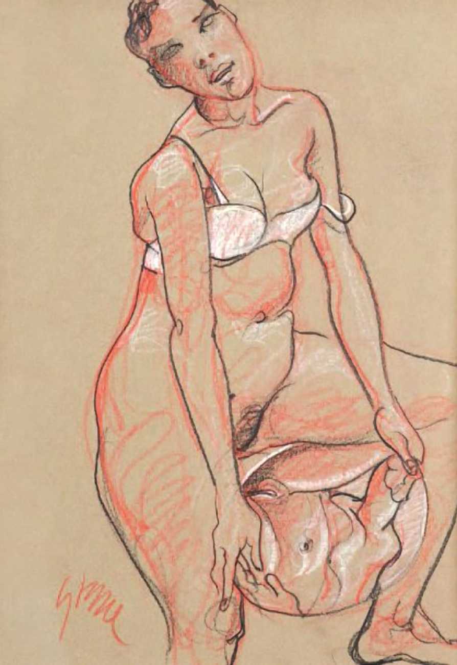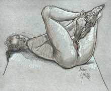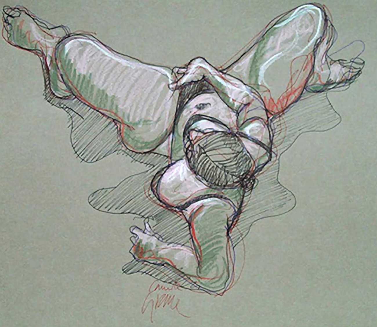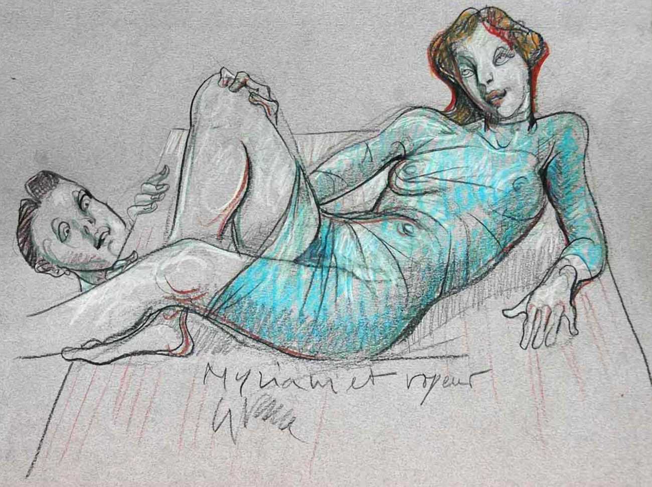 Ceytaire’s drawings show him to be an accomplished draftsman, able with the minimum of line and shading to achieve a very solid and believable sense of corporeal physicality. They also demonstrate his love – some might say obsession – with the flaunting of sexuality, often heightened by the use of a well-placed mirror.