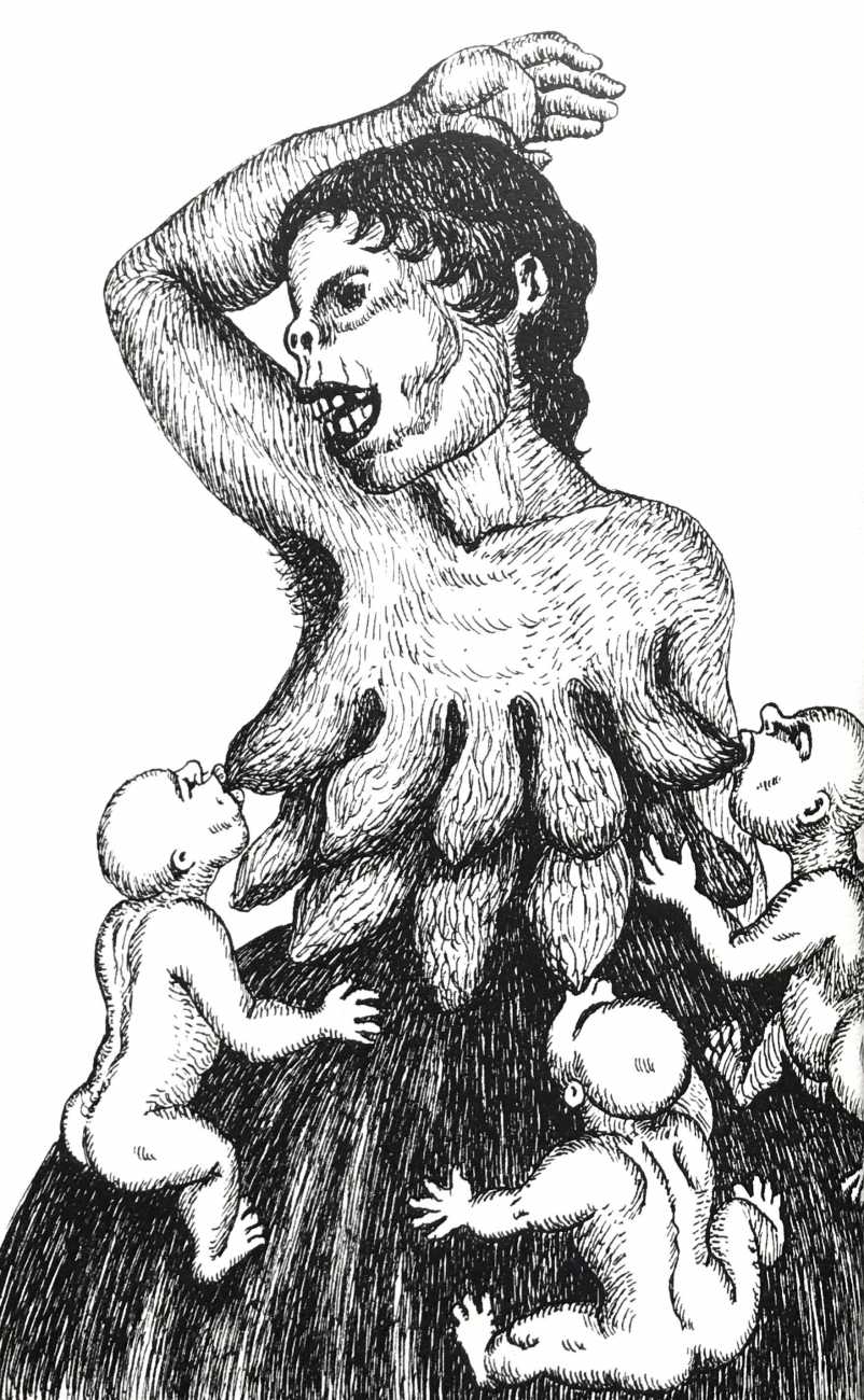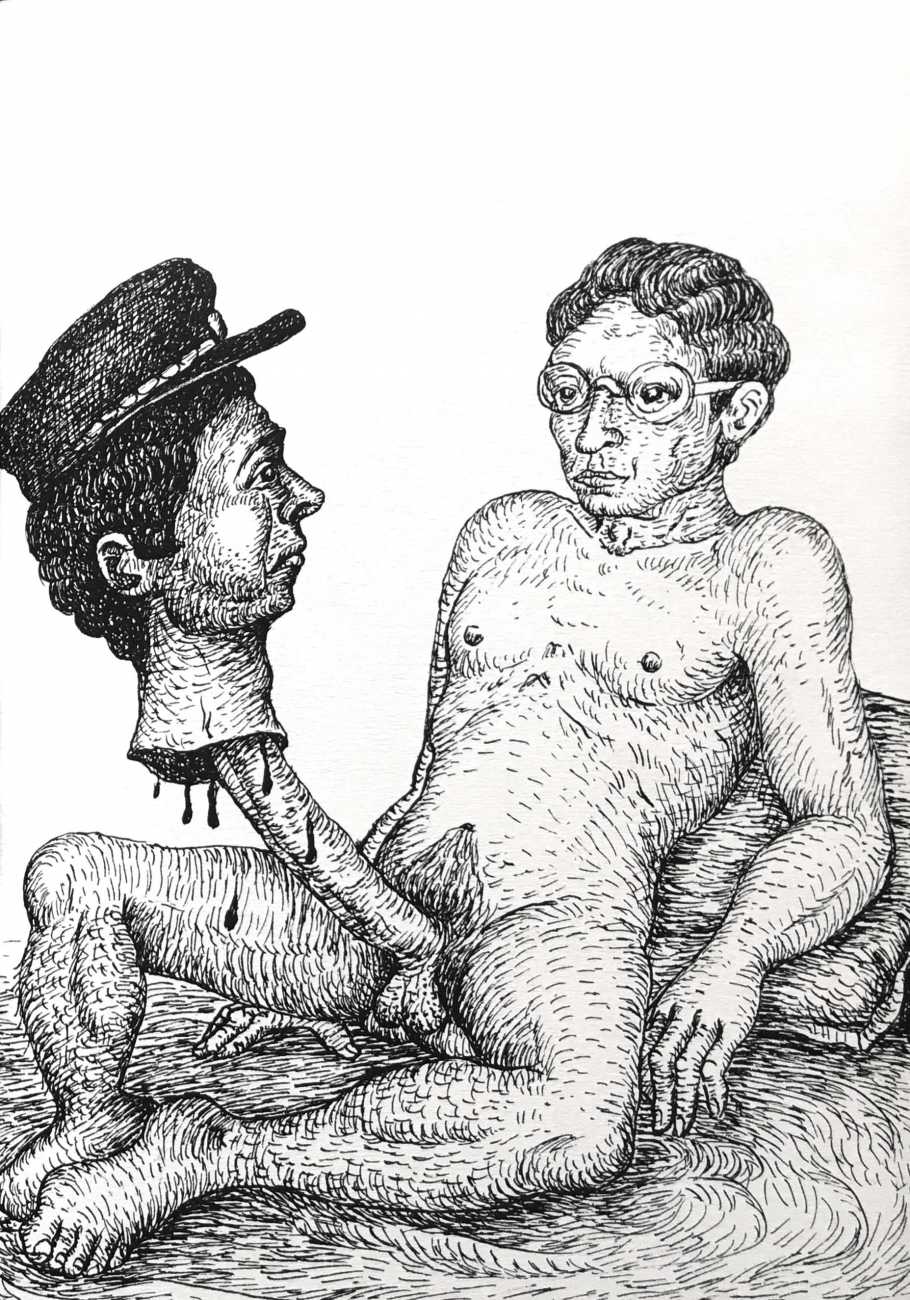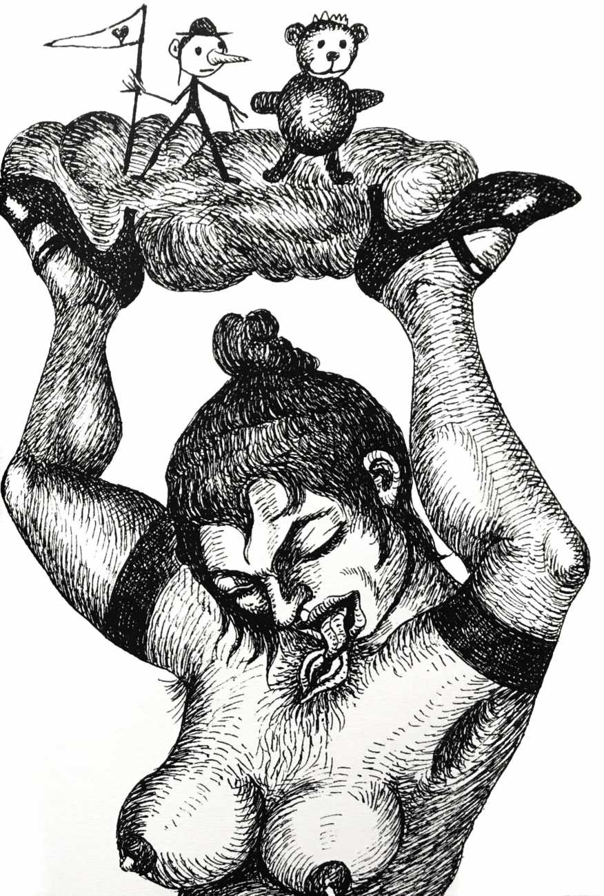 Chéri je t’aime (Darling I Love You) was an artist’s book suggested by Frédéric Déjean, the editor of the first issue of Freak Wave magazine, who created the book in silkscreen printing using a folding ‘leporello’ format, so all the images can be seen at once without problems of show-through. Van der Linden considers Chéri je t’aime to be the most beautiful book of her drawings that has yet appeared.