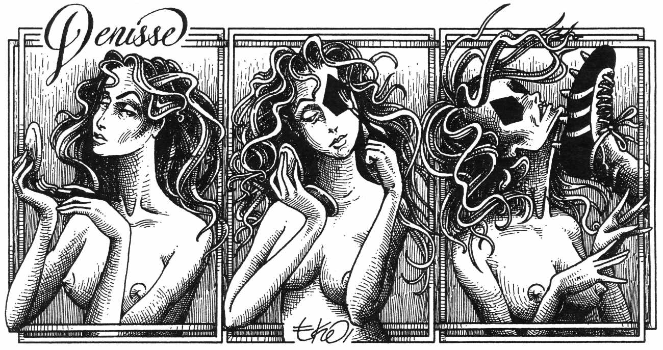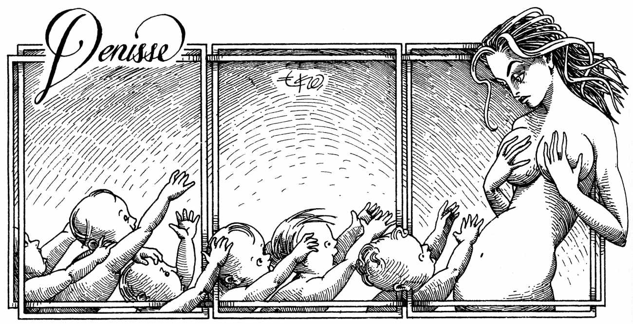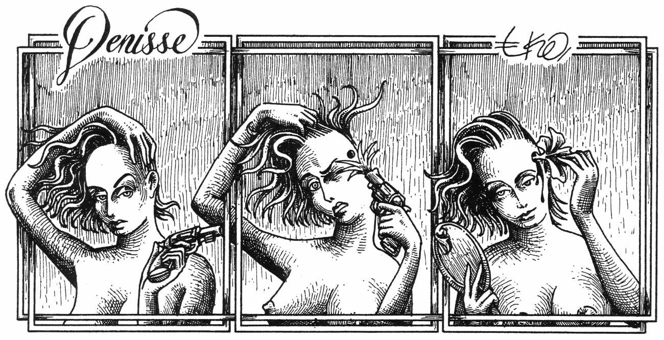 Eko’s Denisse was first collected in book form in 1990 by Editorial Grijalbo; this much expanded edition is published by Minimalia in their Ediciones del Ermitaño series.