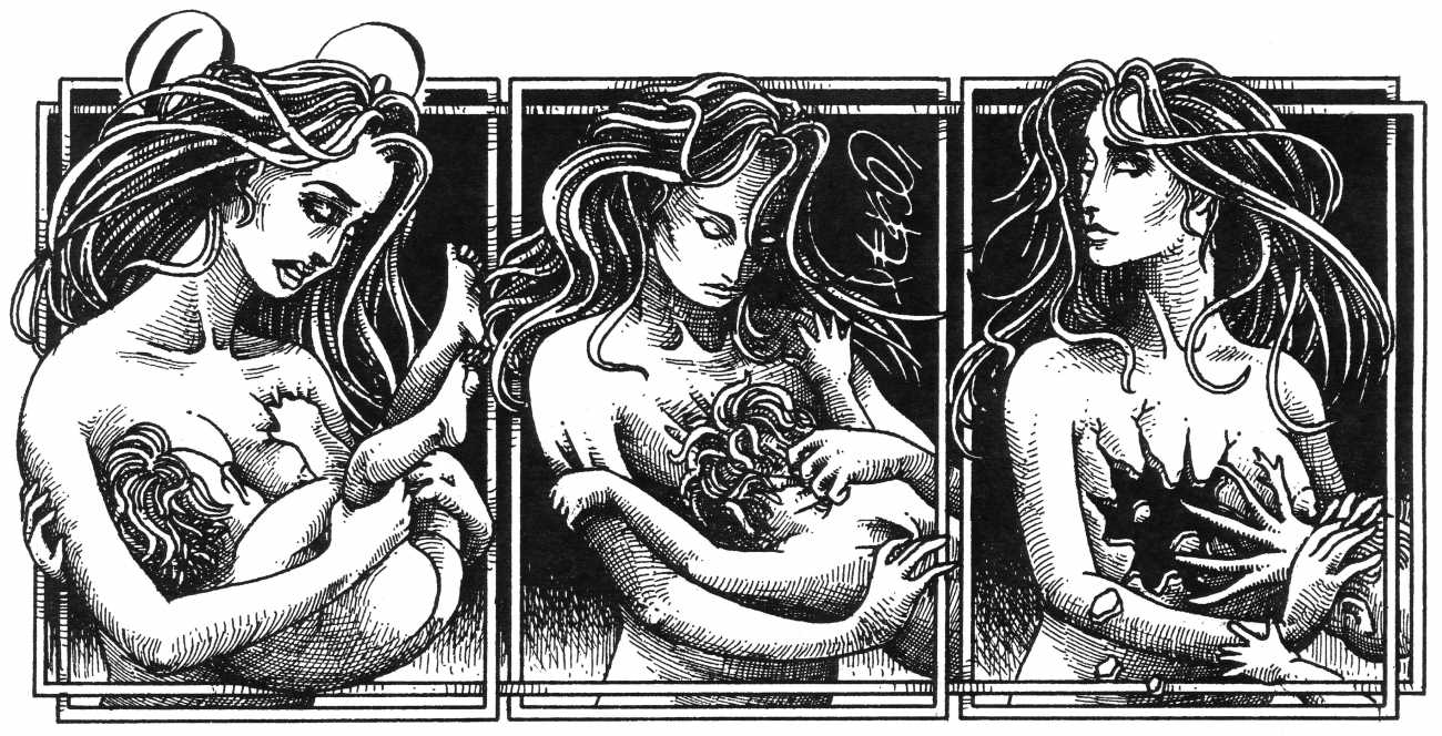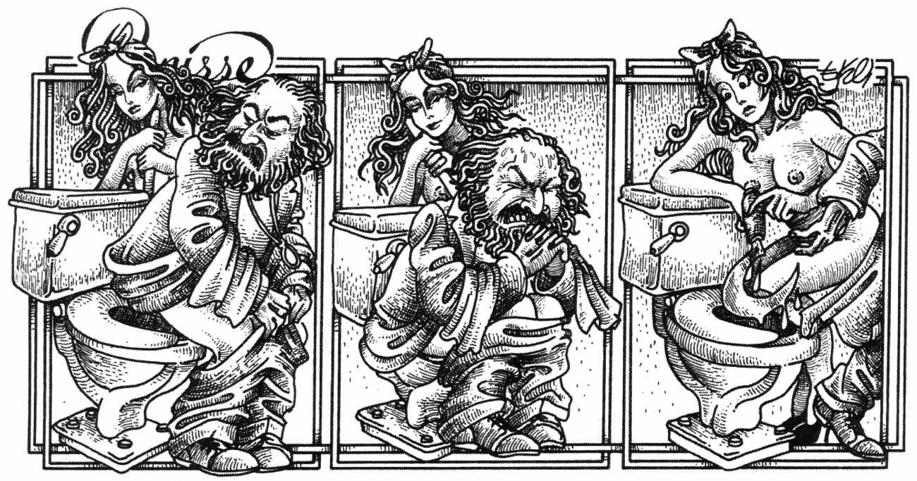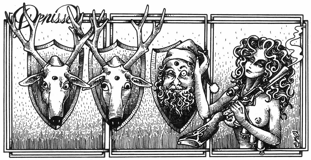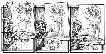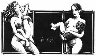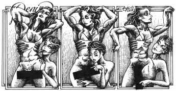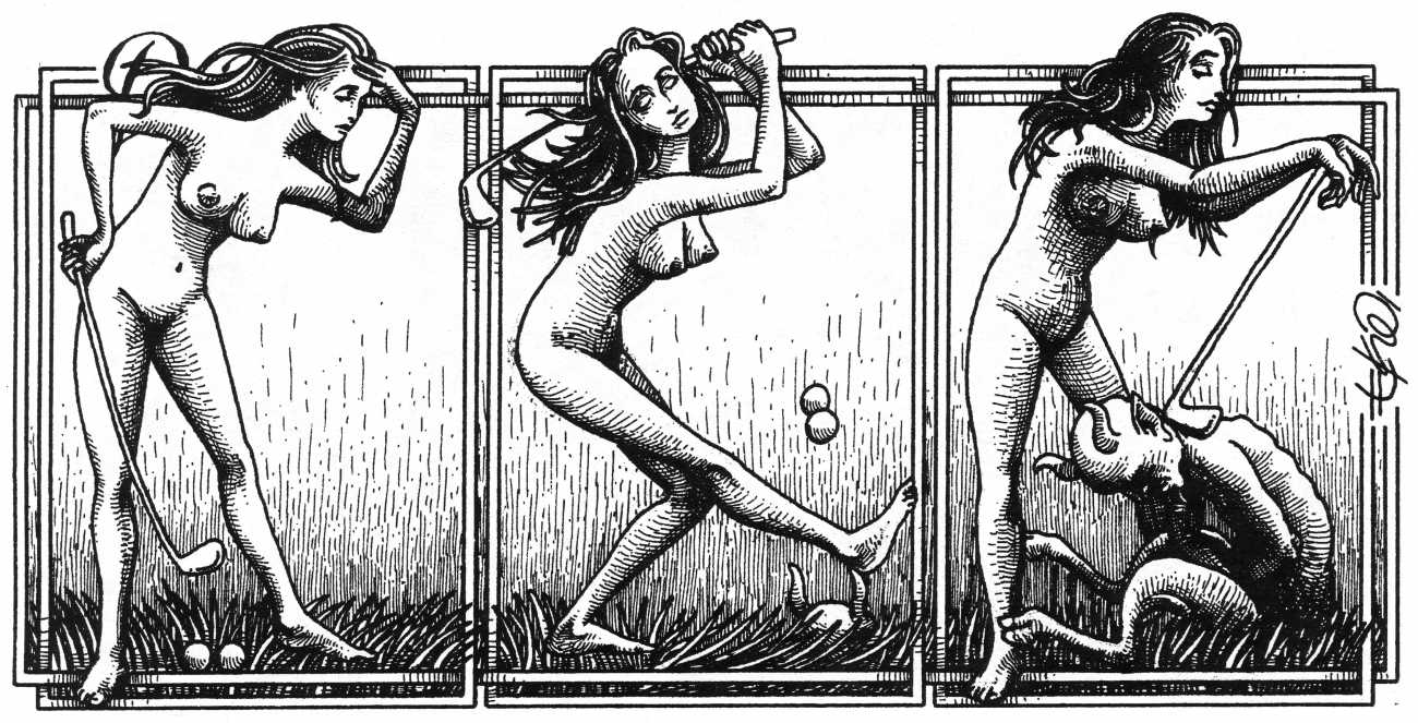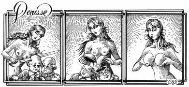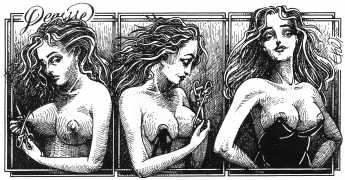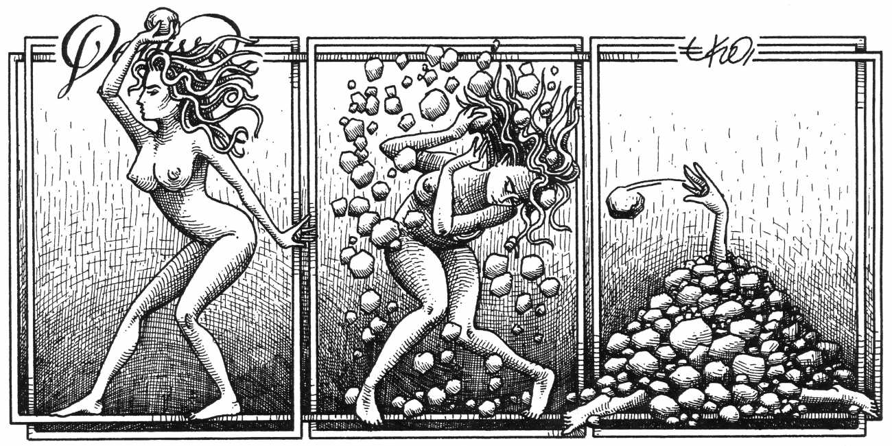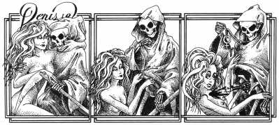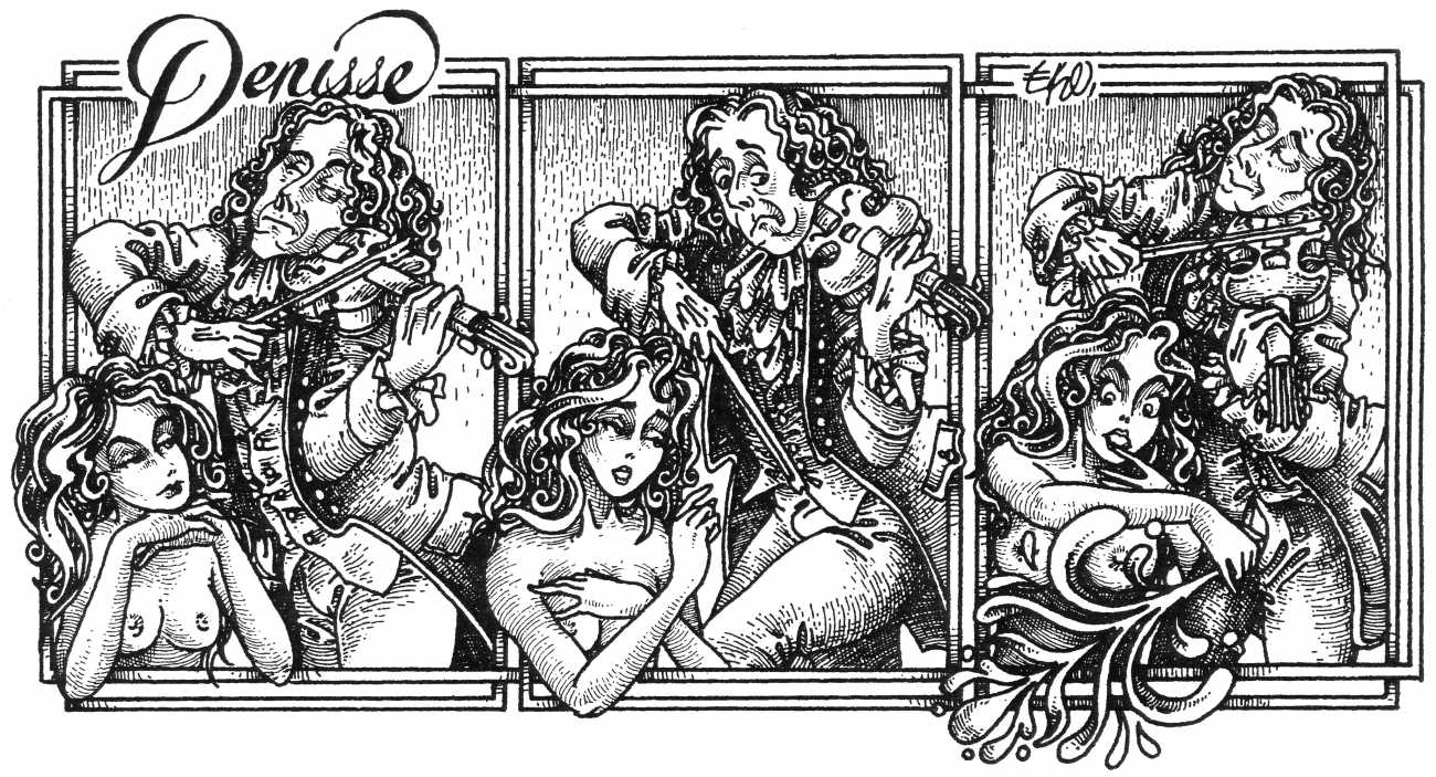 In his introduction to this, the most complete collection of Denisse, the fellow Mexican artist José Luis Cuevas (1934–2017) writes, ‘Denisse fascinates and obsesses me. Denisse’s creator is an exceptional cartoonist, a cultured man who has read the authors of erotic literature, especially the Marquis de Sade, and has studied the works of great artists. Denisse, as Eko himself explained it to me, is the result of his own sexual fantasies. She is not a prostitute; she is a lonely woman of enormous beauty, anguished by her erotic dreams. Her nymphomania leads her to populate her fantasies with skulls and corpses, pain and anguish.’