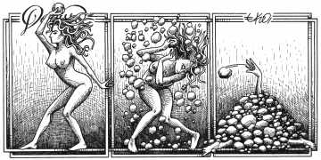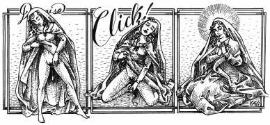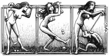 In these 160 graphic mini-narratives we see Denisse, ‘a beautiful woman with wild hair and always more than naked’ as Rogelio Villarreal wrote in 2009 in Milenio Semanal, in almost every conceivable situation a naked woman could find herself in. There really are no holds barred, as Eko incorporates imagery from religion and mythology, de Sade and Bataille, the kitchen and the workshop. Flesh is stretched, warped, even literally screwed in every sense of the word.