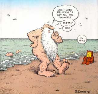 Robert Crumb’s archetypal guru, Fred Natural, first appeared in the underground comic Yarrowstalks in 1968, and during the 1970s and 80 was one of Crumb’s favourite characters. He made his final appearance in 2002 before disappearing into the mystic ether.