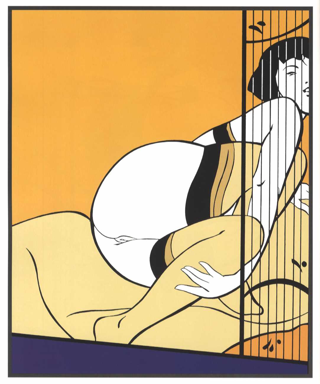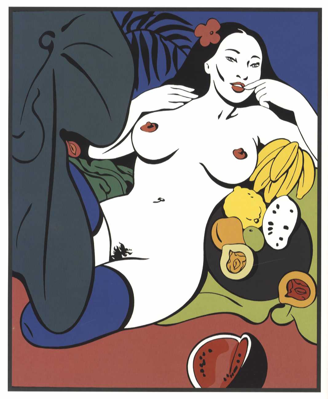 Le goût des femmes (The Taste of Women) is a coloured picture book showing Varenne exploring a new style for a new century. Around 2000 he started experimenting with bright colours added to his trademark ink drawings, producing images clearly influenced by modernist artists and Japanese Shunga. He also started producing erotic reinterpretations of paintings by famous artists including Watteau, Courbet and Gaugin.