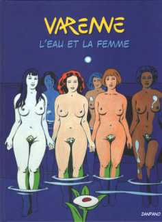 The pseudo-spiritual aspect of Varenne’s water-women images is extolled by Martine Charrier-Galopin, a friend of his and a practising Parisian hypnotherapist: ‘Whether a woman is dripping with desire or her bathwater, whether she emerges from primordial waters like Venus or becomes a fountain, she is sacred each time. Alex Varenne understands and demonstrates it in all the splendour of the creation of his paintings. He understands a woman, the power of her desires, the power of her communion with this mysterious, deep, secret and powerful element that is water. And he understands a man’s desire to dissolve in this water, to become one with it, finding in her arms, in the moistness and warmth of sex, re-creation, regeneration, and giving back to woman her role as sacred prostitute, the one who initiates and allows us all to rise and finally understand the ultimate goal of life – unity. That unity lasts only a moment, and must be found, again and again in the joy and simplicity of an act accomplished far from the taboos and judgments of our regimented society. Like water, Varenne’s women give themselves completely, affirm their true nature, flows into all the infinite facets of relationship with one another.’