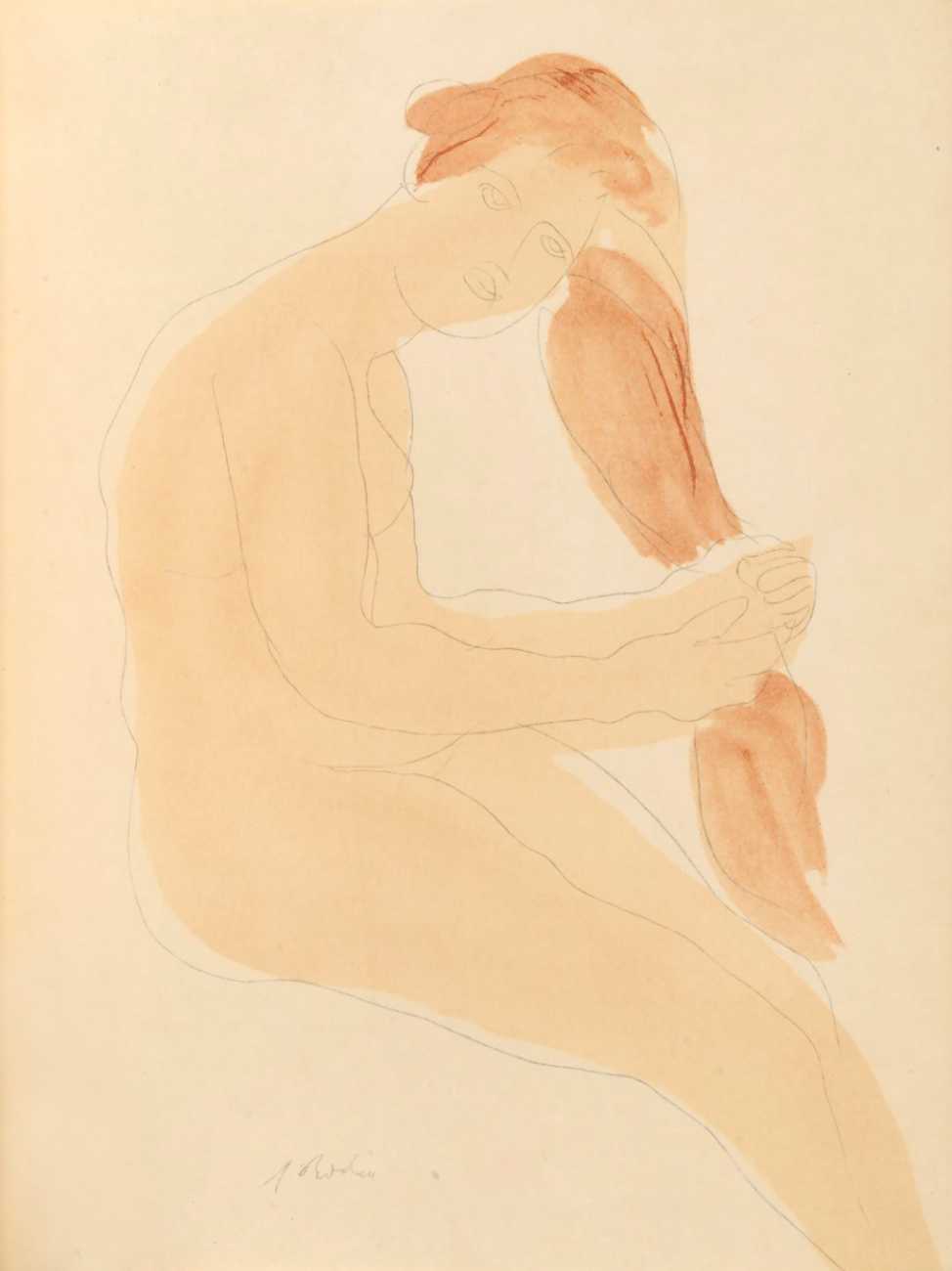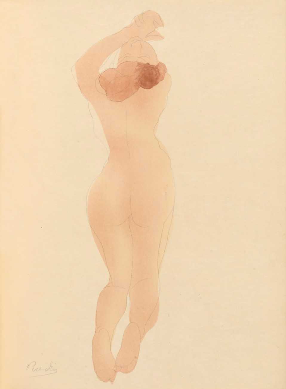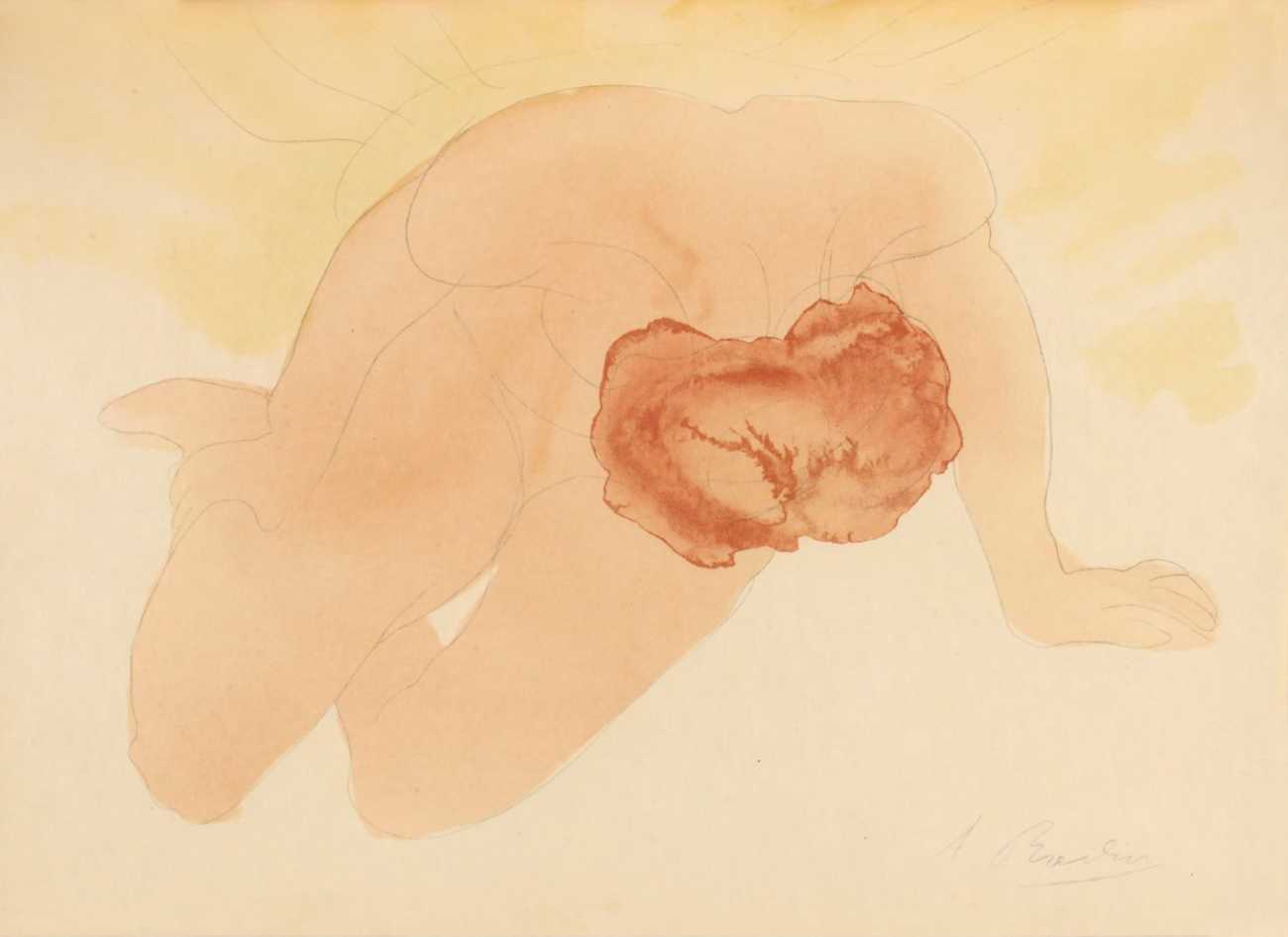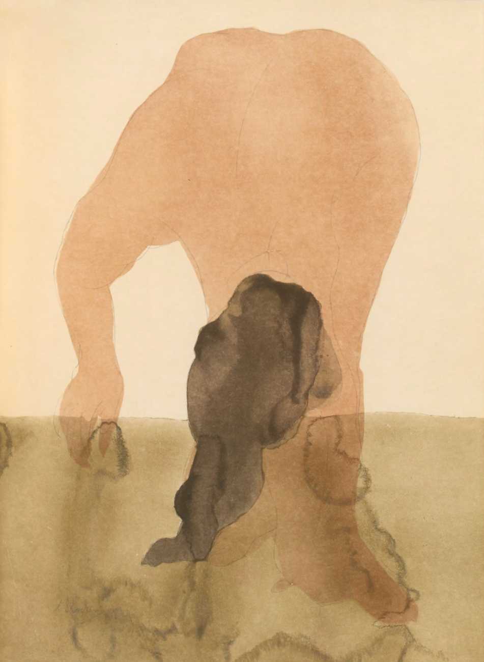 From the outset, however, Rodin had no intention of illustrating Mirbeau’s narrative; he planned to choose the twenty matched illustrations from his recent drawings, more stylised, experimental and uniformly-coloured than his earlier work. The Le jardin des supplices drawings coincided with Rodin’s first one-man exhibition (which included the Jardin drawings). A quotation from the German poet Rainer Maria Rilke sums up the critical response to these works: ‘There appeared these strange documents of the instantaneous, of what happens imperceptibly. Rodin suspected that the unintentional movements executed by the model thinking herself unobserved, if one caught them quickly, could harbour a vigour we have no idea of because we are not used to paying active and sustained attention to them. By not taking his eyes off the model and entirely abandoning the paper to his swift and experienced hand, he drew an infinite number of gestures never seen, always overlooked, and the expressive power they exude is immense.’