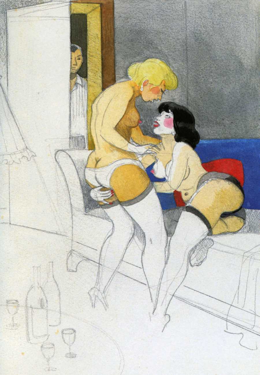 In the Swiss artistic landscape of the mid-twentieth century it is very rare to find an artist working in the genre of the erotic. Marcel Vidoudez, however, was an exception, a maverick who tirelessly explored the pleasures of love. In his secret garden he could give free rein to his inspiration to caress the curves of his imagined women; yet at the same time he retained all his artistic skills: the line is clear and precise, anatomy is scrupulously drawn, the flesh is subtly illuminated by the subtle use of watercolour.
