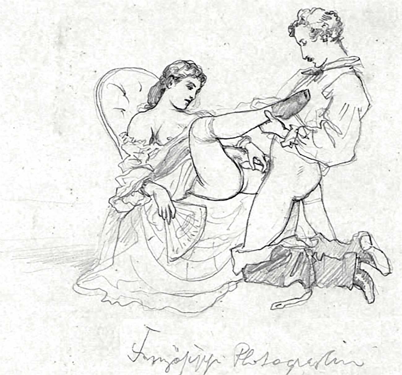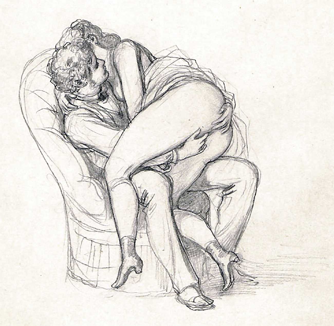 As with so many talented artists of the late nineteenth century, a tantalisingly small number of Hendschel’s erotic drawings have survived, but enough to show that he was no prude when he chose to depict sexual scenes. His drawings, both in subject matter and style, seem remarkably modern, and if we imagine them being made about the time of his infatuation with Marie Becker in the 1860s they demonstrate a mature understanding of sexual intimacy. Hendschel may have made his living from more acceptable subject matter, but he must surely have sampled the carnal pleasures of Paris and Rome during his travels.