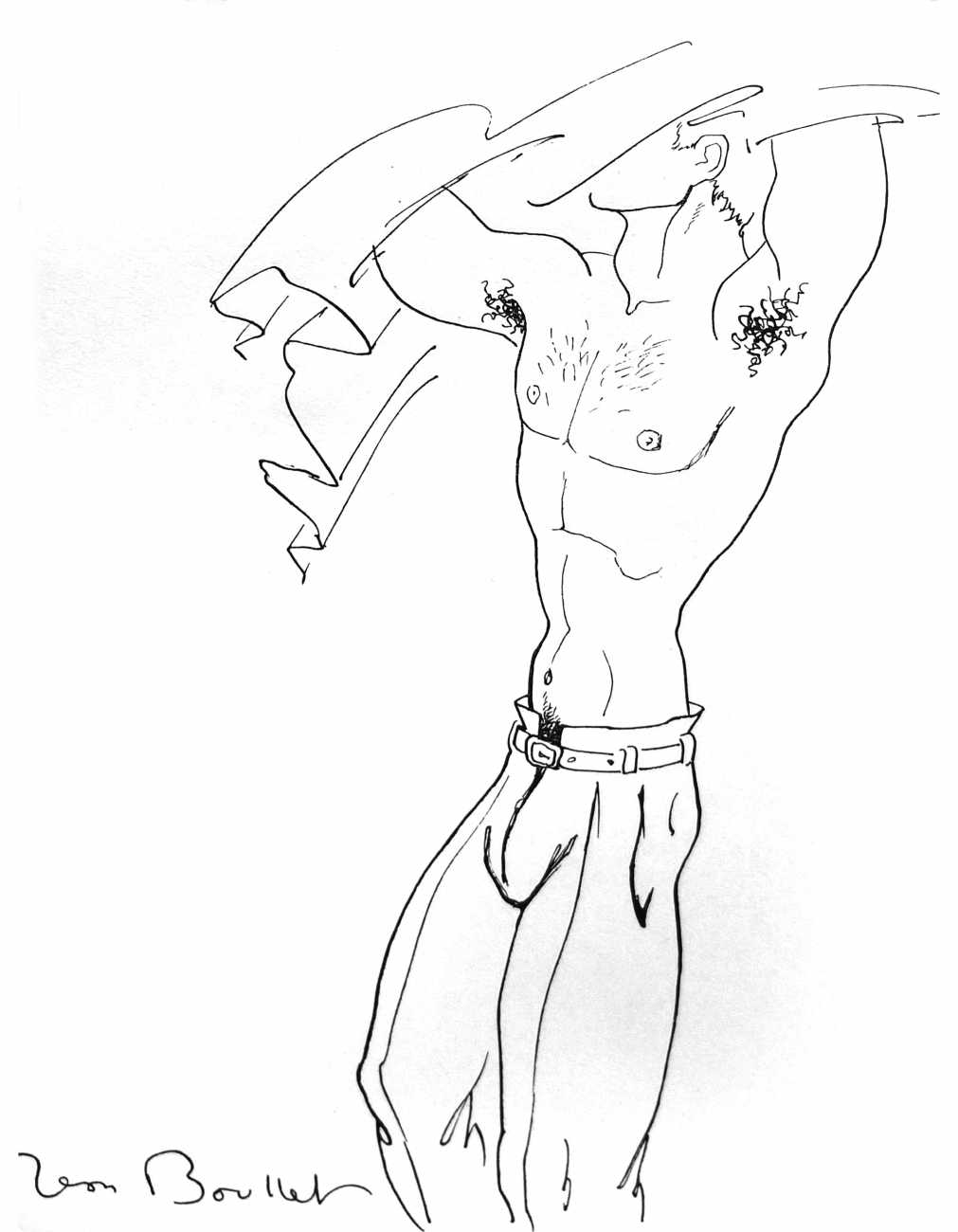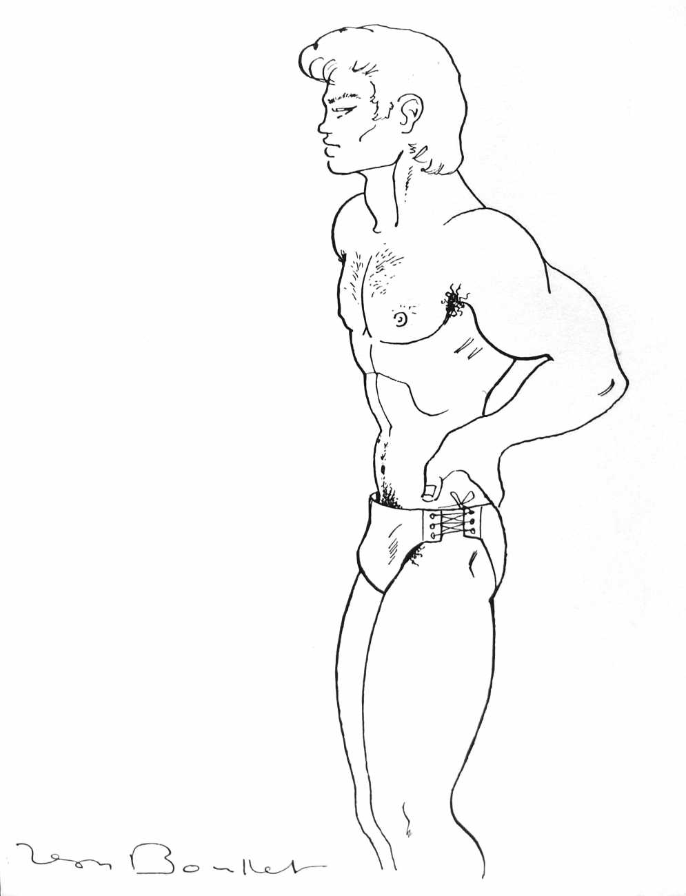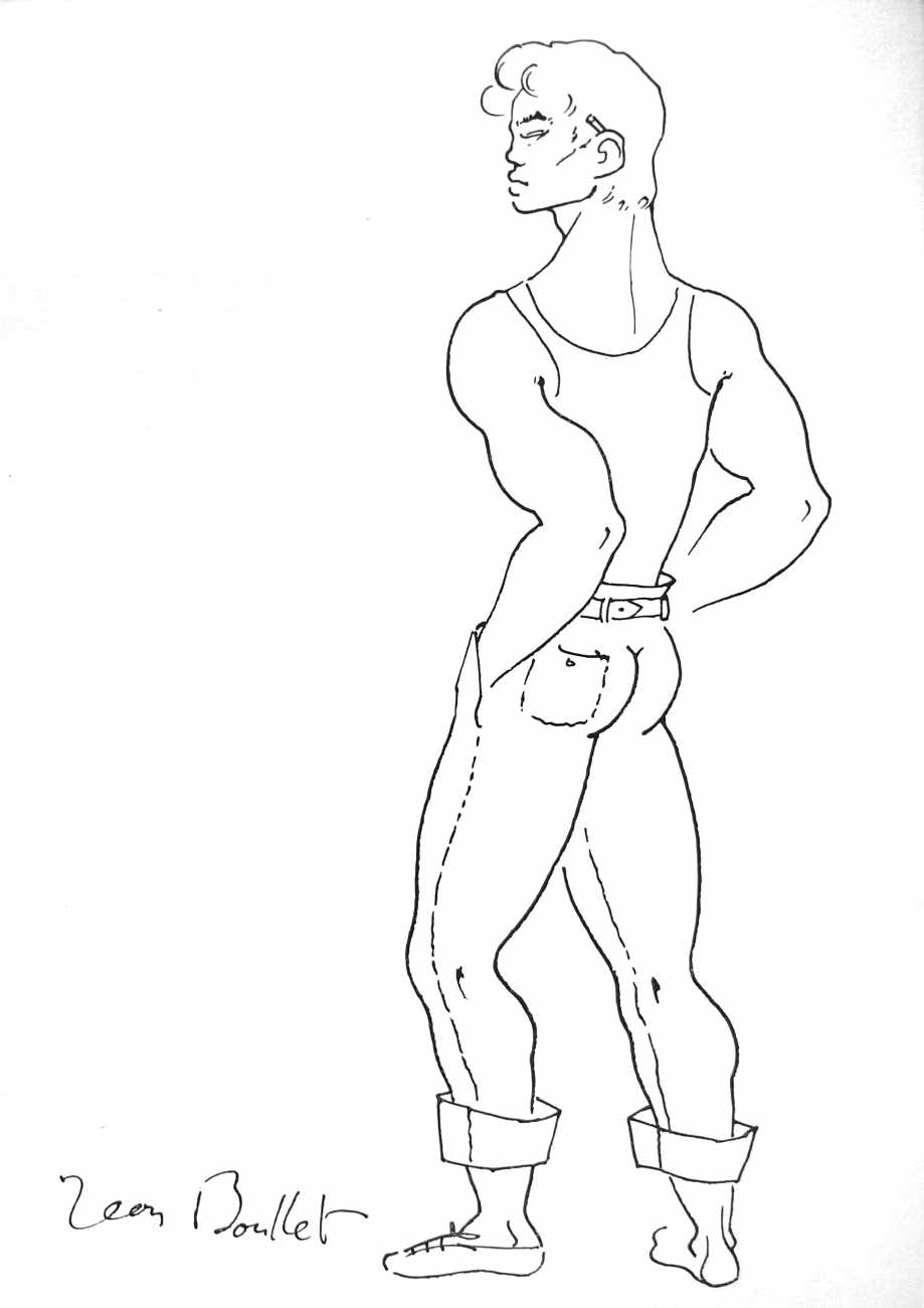 Les beaux gars (The Handsome Guys) is one those portfolios that contains exactly what it says on the cover, no more and no less. This is the first of two textless collections privately published by Boullet, using his printing company’s name as his publisher; the second was Antinoüs three years later.