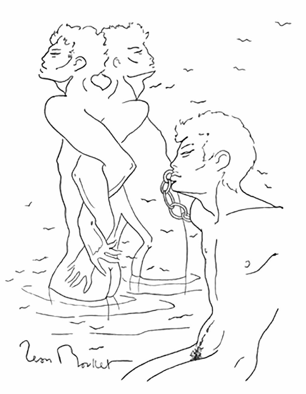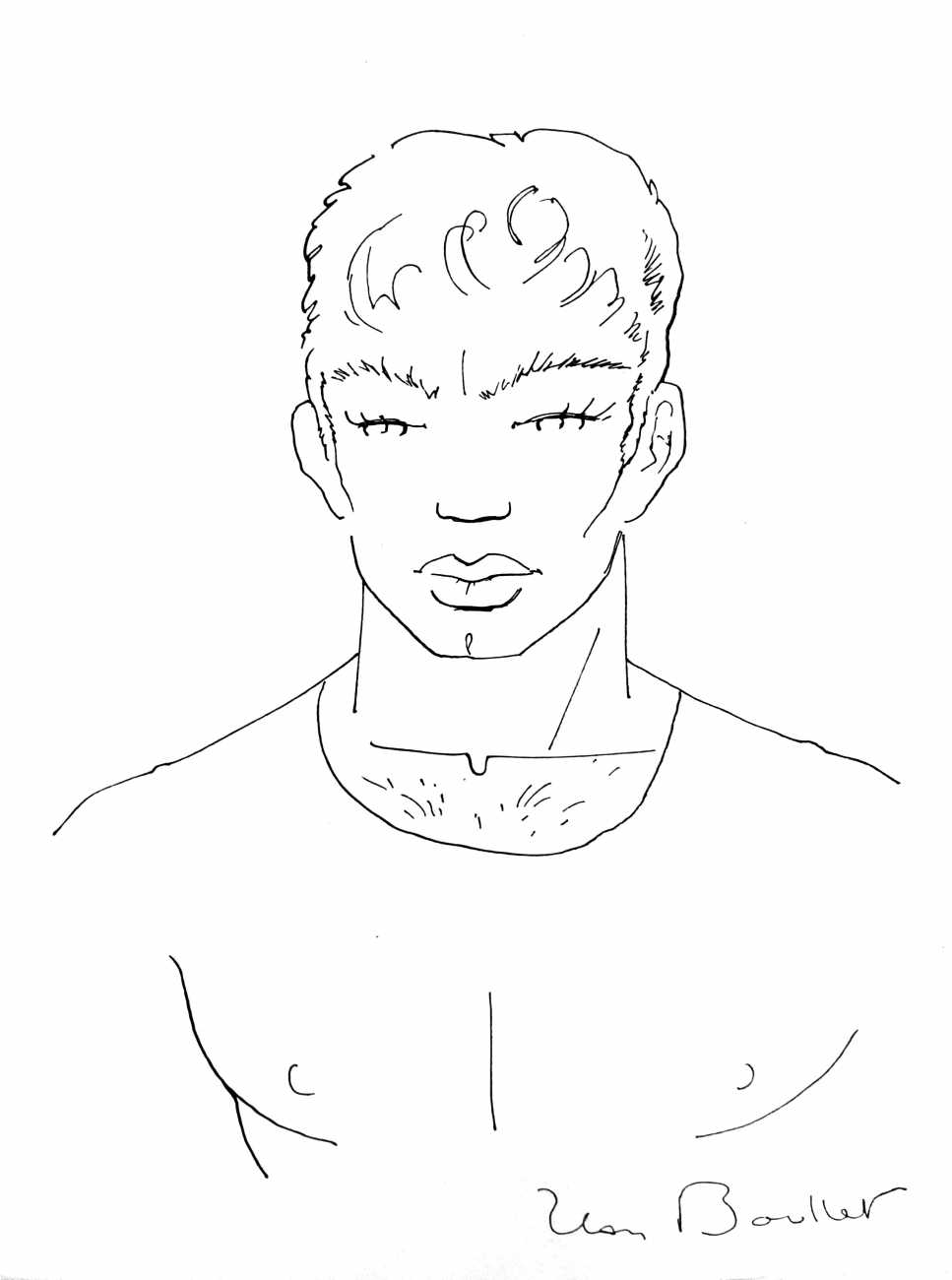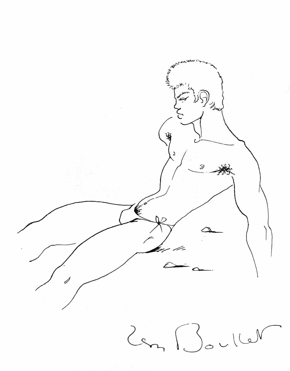 Les beaux gars (The Handsome Guys) is one those portfolios that contains exactly what it says on the cover, no more and no less. This is the first of two textless collections privately published by Boullet, using his printing company’s name as his publisher; the second was Antinoüs three years later.