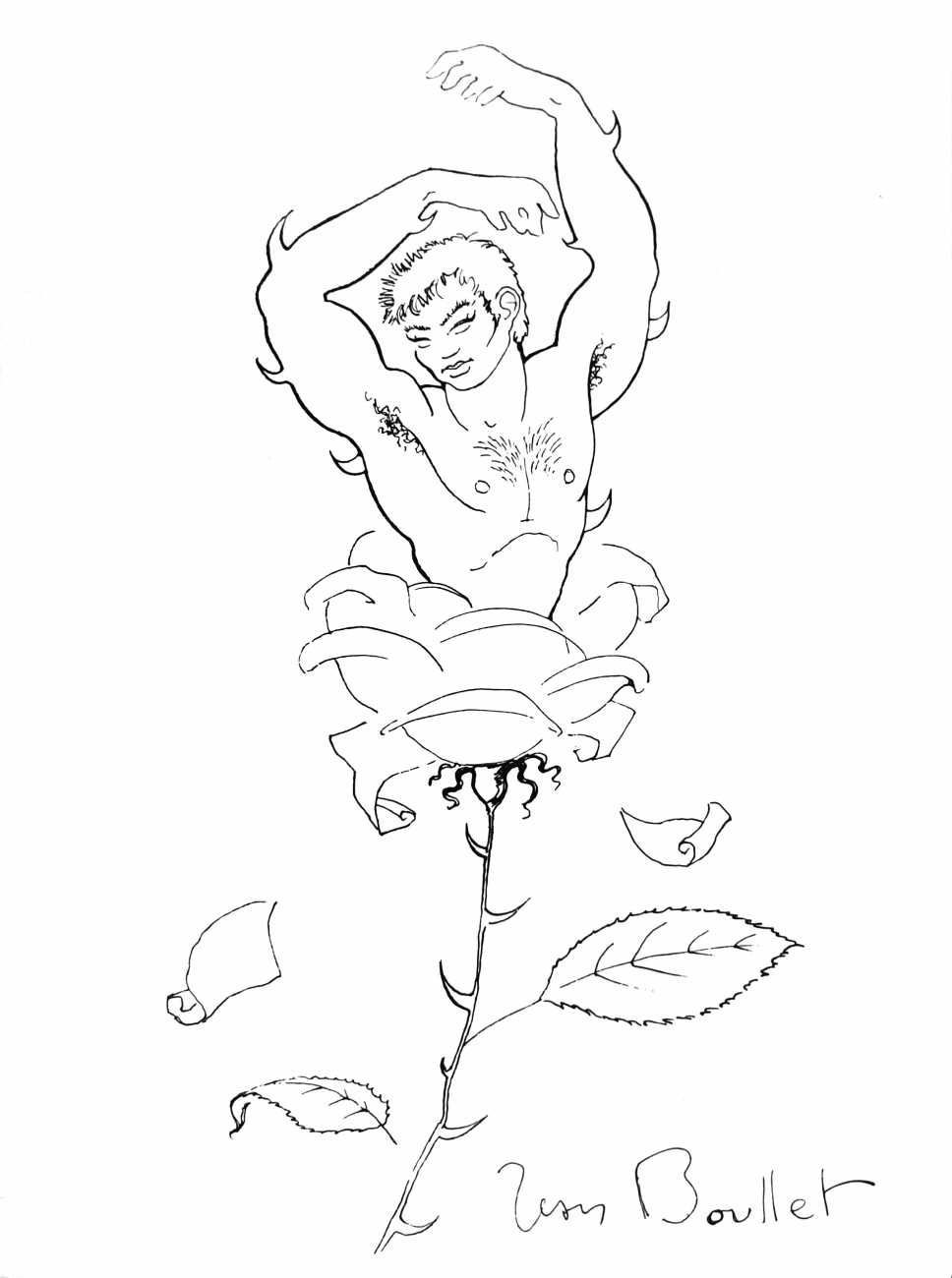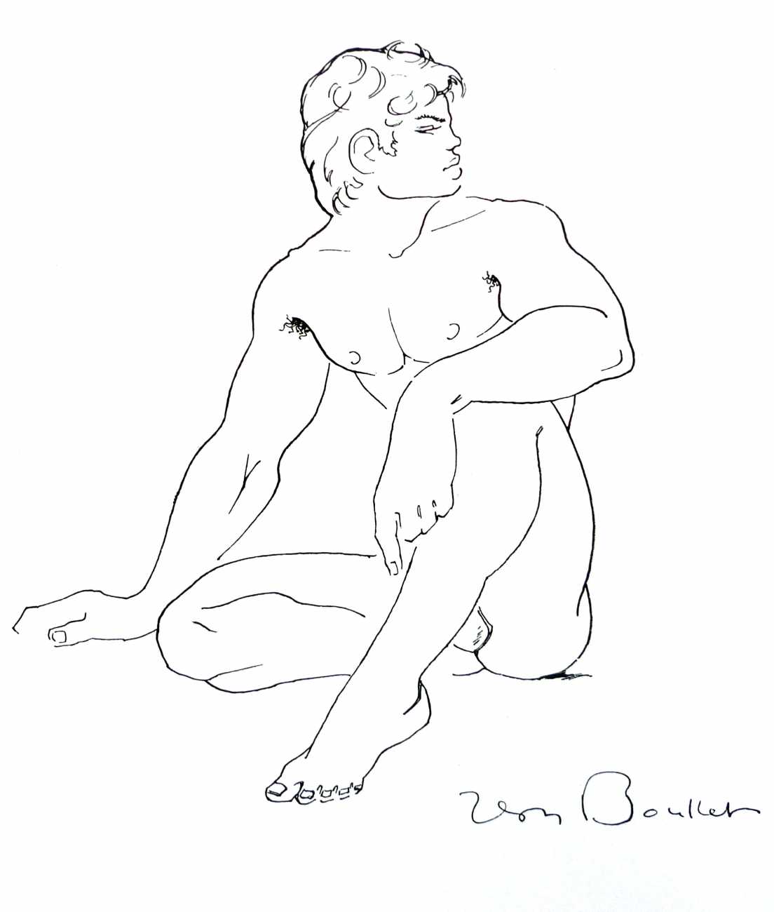 Several of the portraits bear the signs of drawing from life, or from photographs, of some of Boullet’s lovers. Others seem more fantasy-based, or in the case of the youth bound to a stake the perils of homoeroticism.