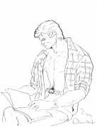 Les beaux gars is little more than a way of bringing a representative selection of Boulet’s drawings together in a way that he hoped would sell and provide him with some income; several of the drawings had previously been published elsewhere, and others would appear again, sometimes in a slightly different version, in Antinoüs.