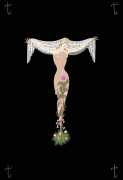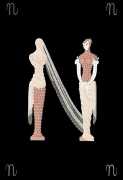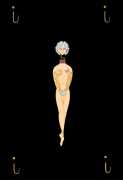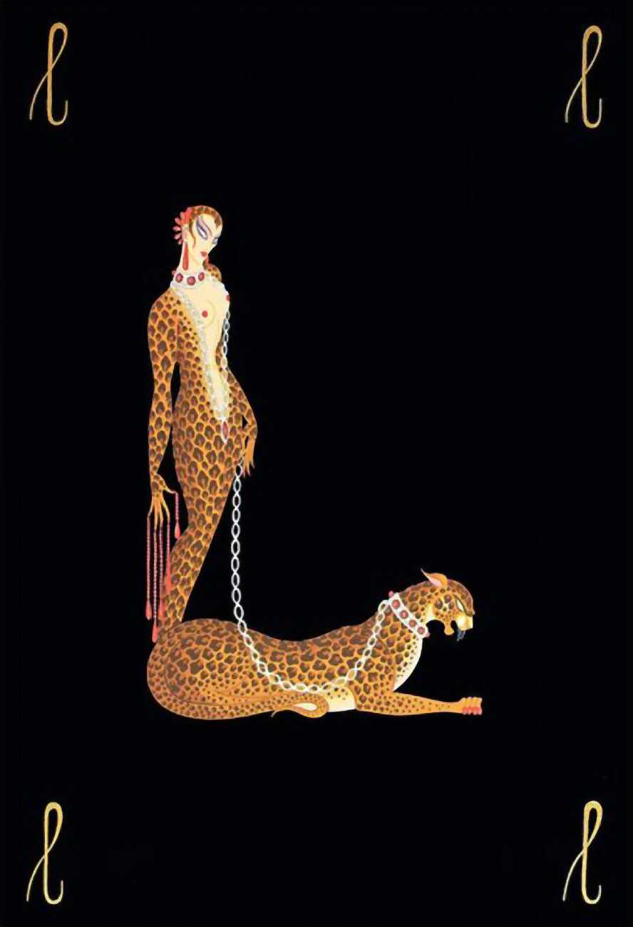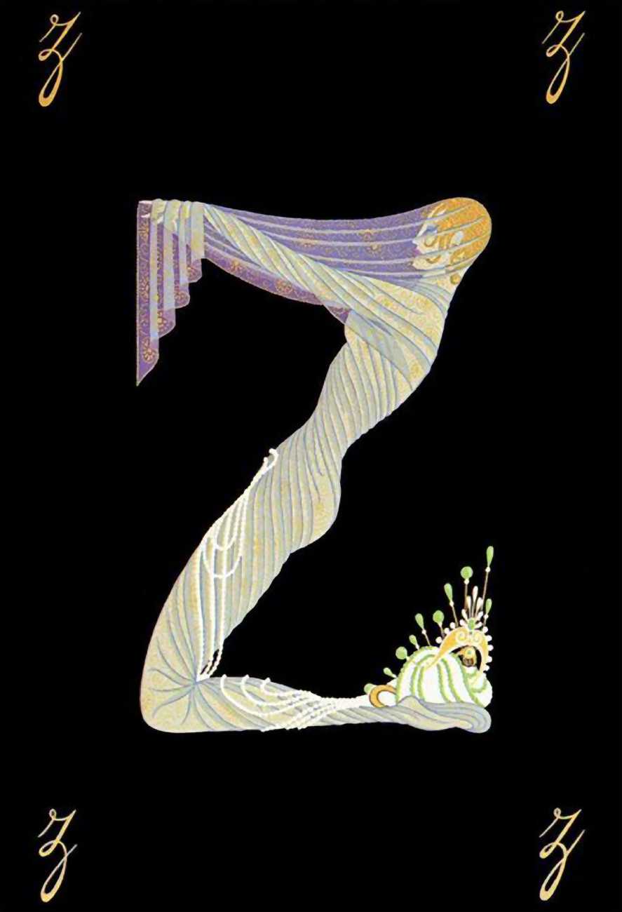 The development of Alphabet is best described in Erté’s own words: ‘I started to work on the series of Alphabet paintings in 1927, after a very successful exhibition at the Galerie Charpentier in Paris. This gallery proposed another exhibition two years later for which I had planned to complete Alphabet. Unfortunately, I was much too optimistic. I had not realised how much other work I would have to do at the same time. There was my contract with Harper’s Bazaar, and for the theatre, working on three major spectacular productions in two years as well as the usual tableaux for the Folies-Bergére and several operas. The result was that in 1929, when my second exhibition opened, Alphabet had not made much progress. From then on, little by little, I did complete one or two letters between various urgent commissions, but it was only forty years later that I finished the set. In 1967 I was asked to exhibit Alphabet at an Erté show in London. This time I was ready – or at least I thought I was. While preparing to send the pictures to London, I suddenly noticed to my astonishment that one letter was missing in the series; it was the letter L. I began to paint it immediately and completed it just in time for the show. As it turned out, this letter became the most successful of all in the eyes of the public.’