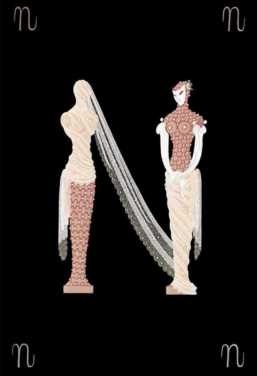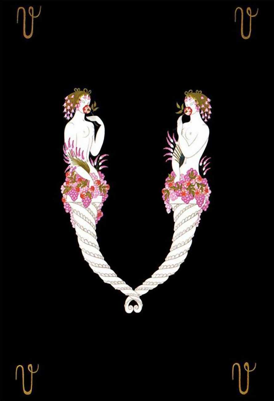 Erté’s Alphabet is among his best-known works, started in the late 1920s but not completed until nearly half a century later. It probably includes as many semi-naked bodies as all of the rest of his work combined.