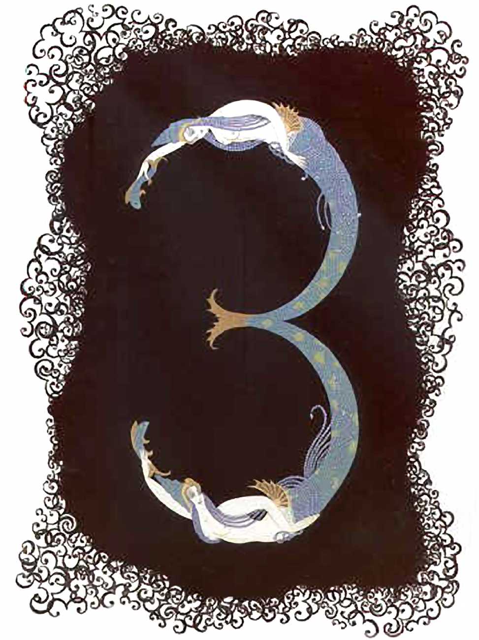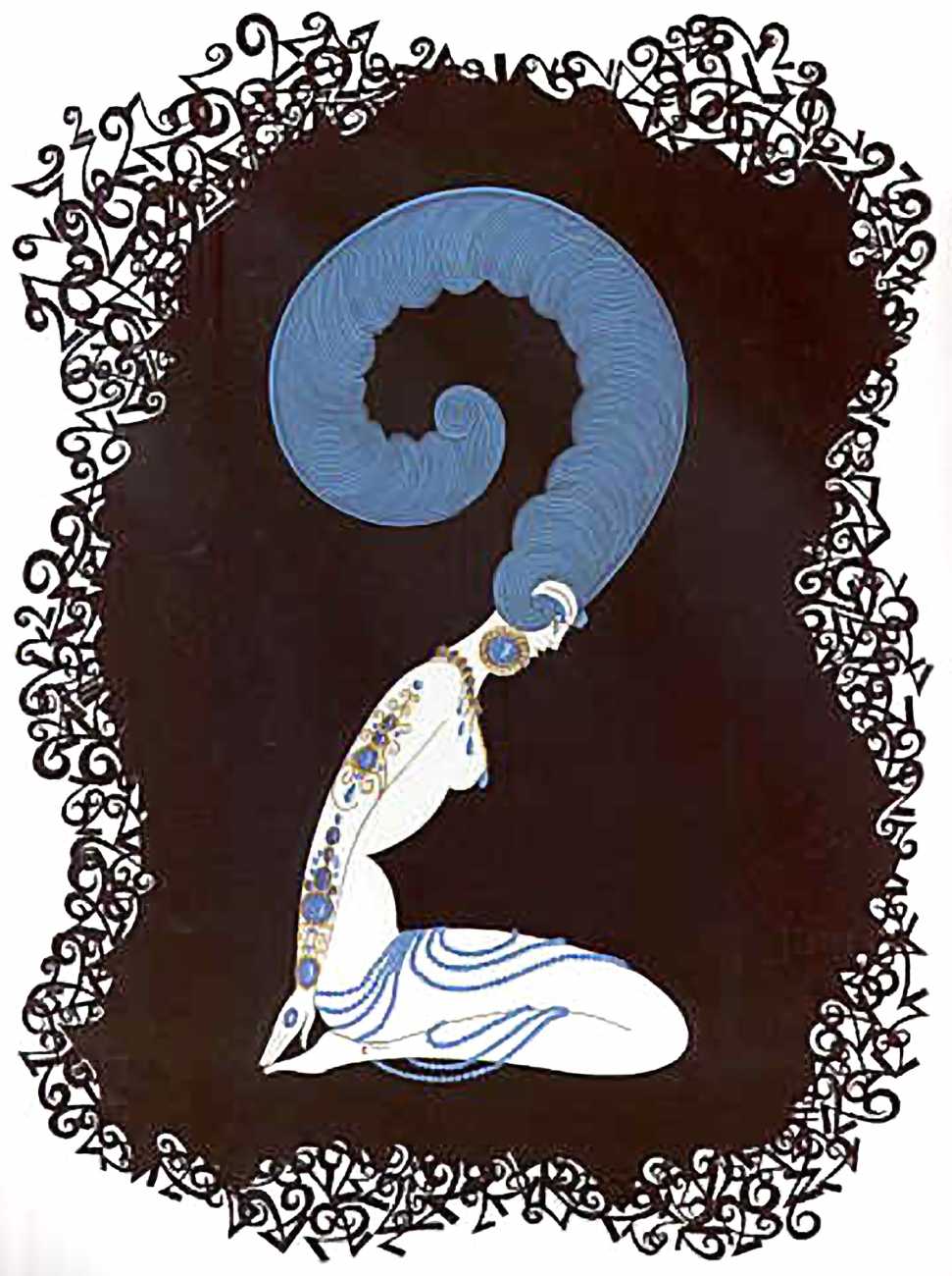 The Numerals series followed hot on the heels of Alphabet, providing Art Deco designers with a complete alpha-numeric resource with which to advertise and sell Erté-inspired merchandise. Note how the black borders of each numeral cleverly use the shape of the number to create a distinctive all-round pattern. Erté was always a master of detail.