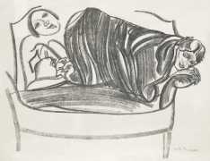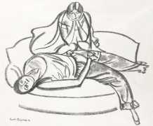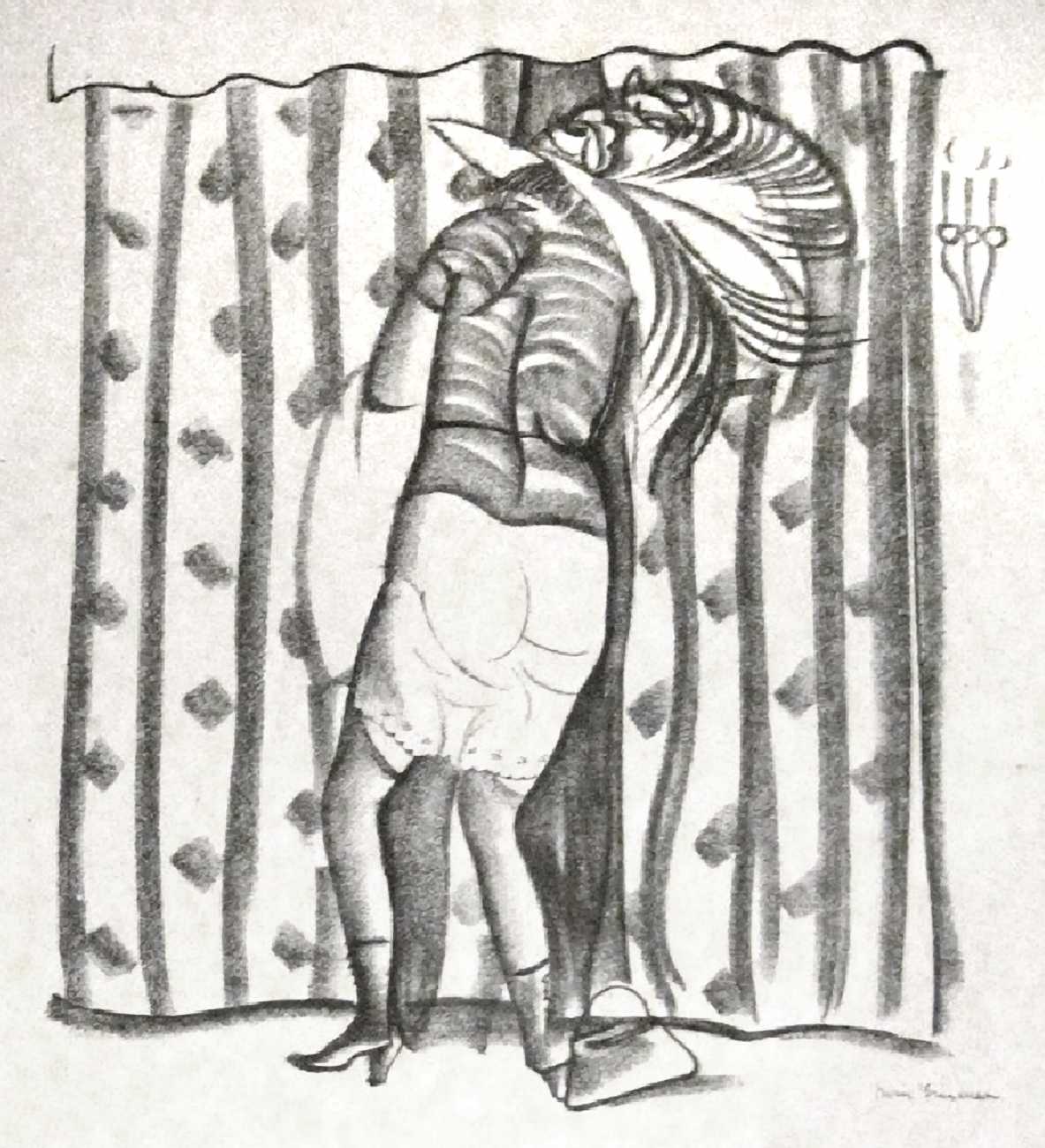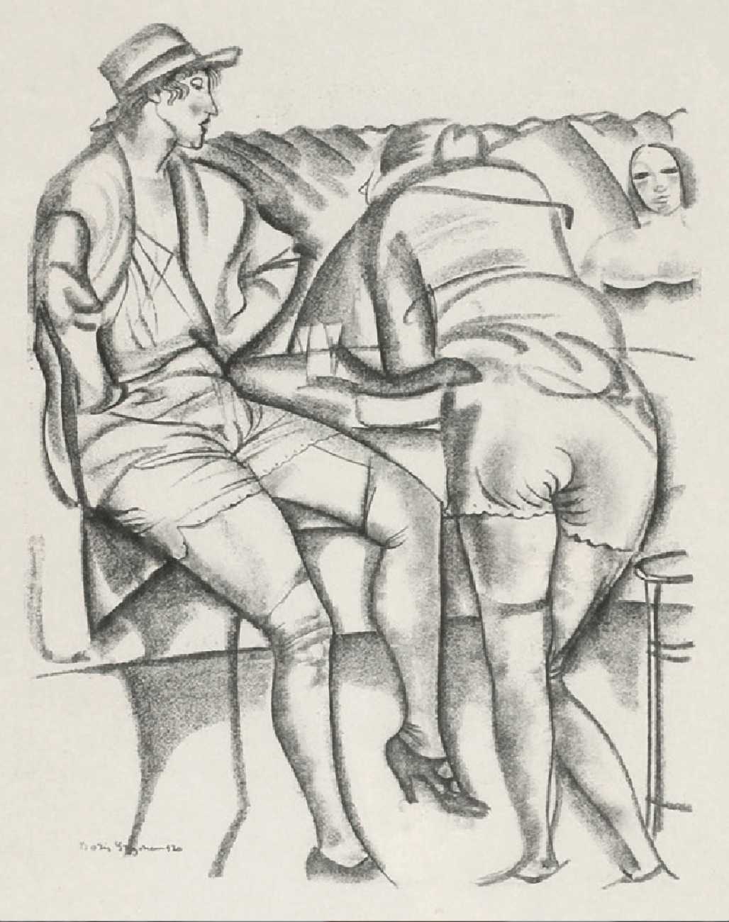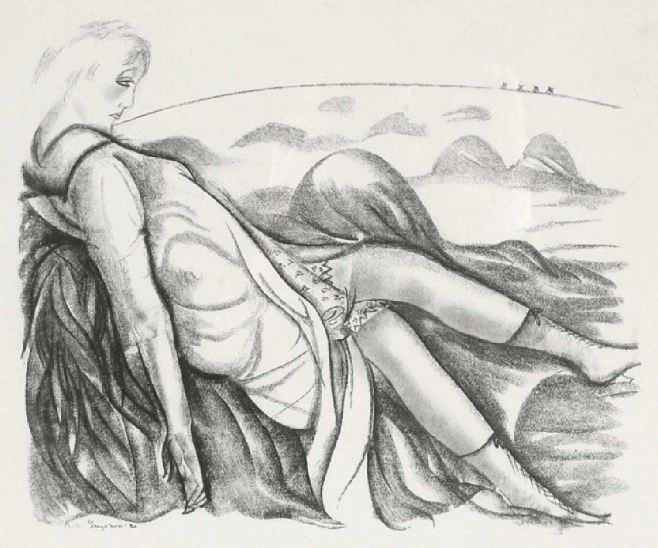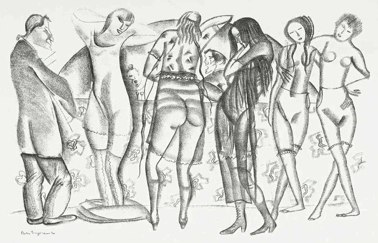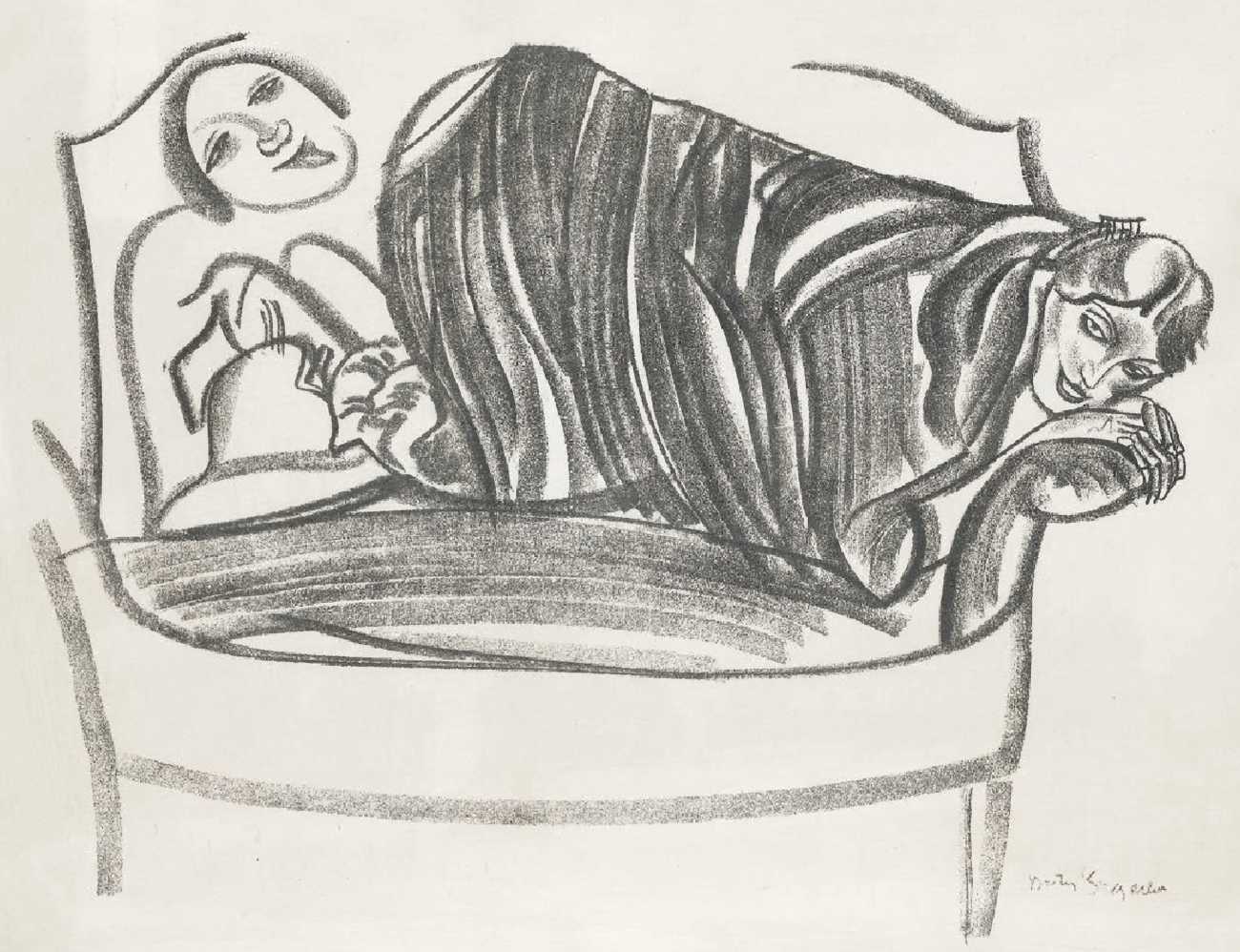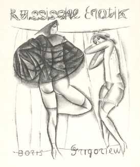 Few of the purchasers of Intimité ever had a chance to see its ‘sequel’, Russische Erotik (Russian Erotica), which was privately published in Berlin. The new portfolio went far beyond the stylisation that characterised the Silver Age’s erotic dreams, indeed its power is proven by its later history – most examples of the portfolio were destroyed in the purification campaigns of 1930s Germany. Also, it is interesting to note that when in 1924 six of the milder images from Russische Erotik were selected for inclusion in a Moscow-published collection of Gregoriev’s stories, Moskowitische Eros (Moscow Eros), the more risqué were deliberately omitted.