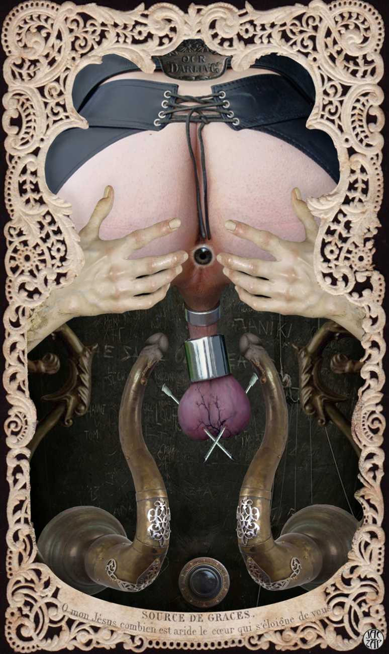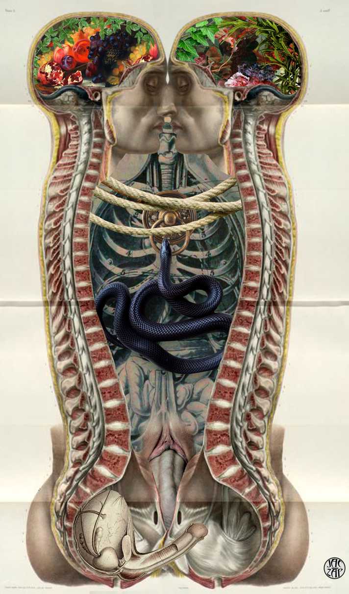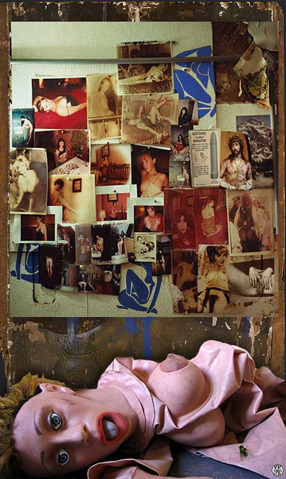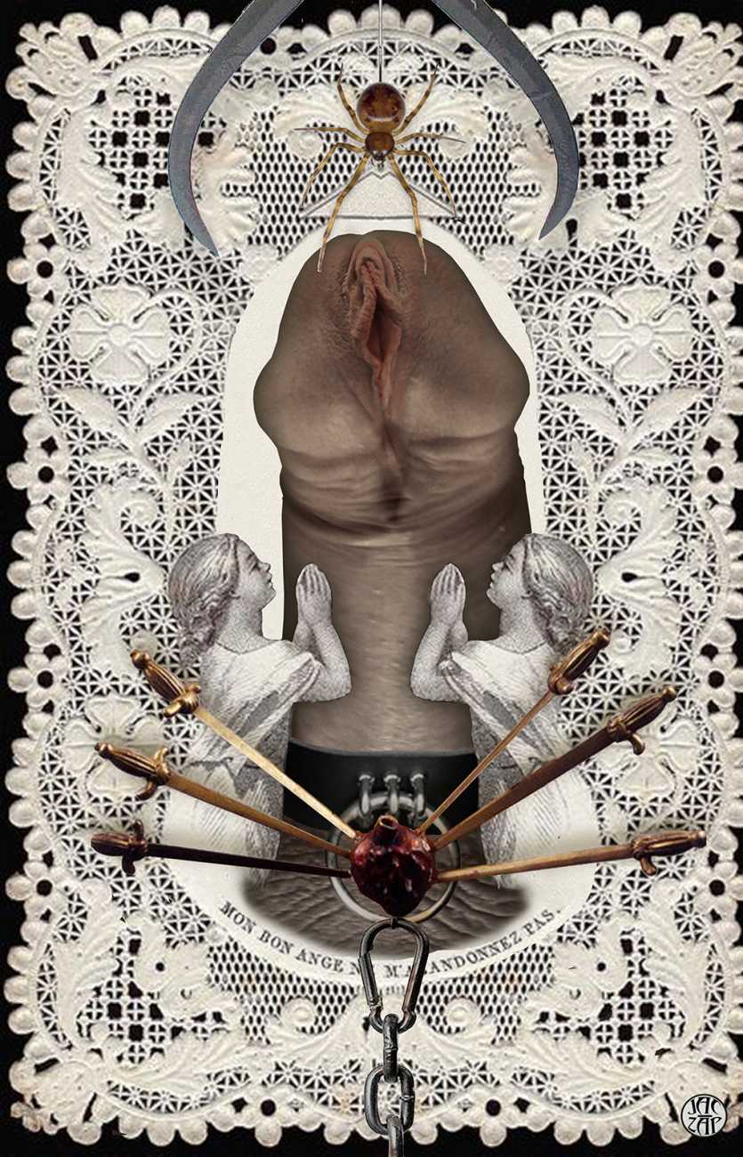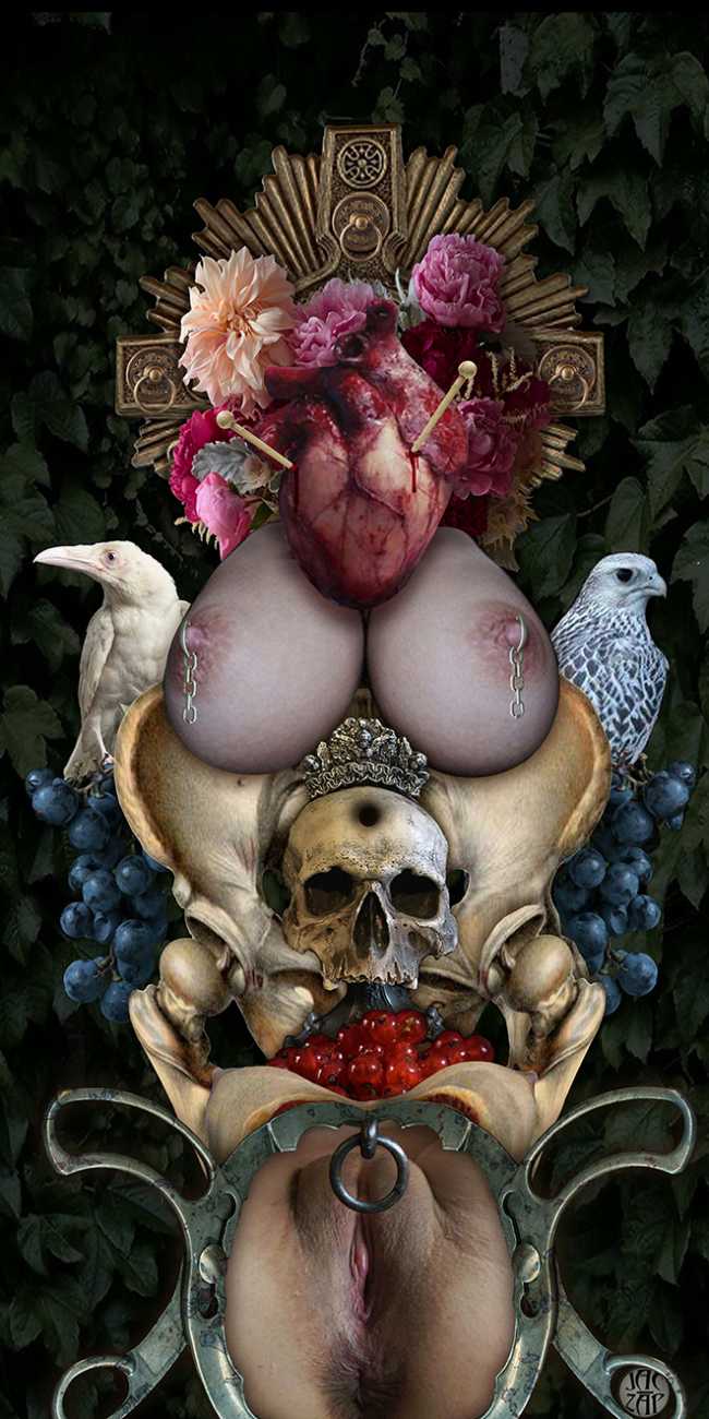 Here we have a comprehensive collection of Jac-Zap montages, arranged in chronological order from 2014 to the end of 2019. For later images the Flickr albums, which you will find here, continue the artist’s development; the more recent images have moved somewhat from the sexual to the existential, concentrating on the imagery of mortality and death.