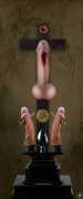 Not that mortality and death are in any way absent from the work shown here – skulls and fossilised phalluses share the frame with disembodied breasts and vulvas in ways that cannot but impress on the viewer the biological reality of physical embodiment. Catholicism is also everywhere, as is only to be expected of a French artist steeped in the symbolism of that religion, while references to specific artists including Henri Matisse and Marcel Duchamp add to the witty mix.