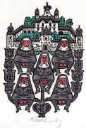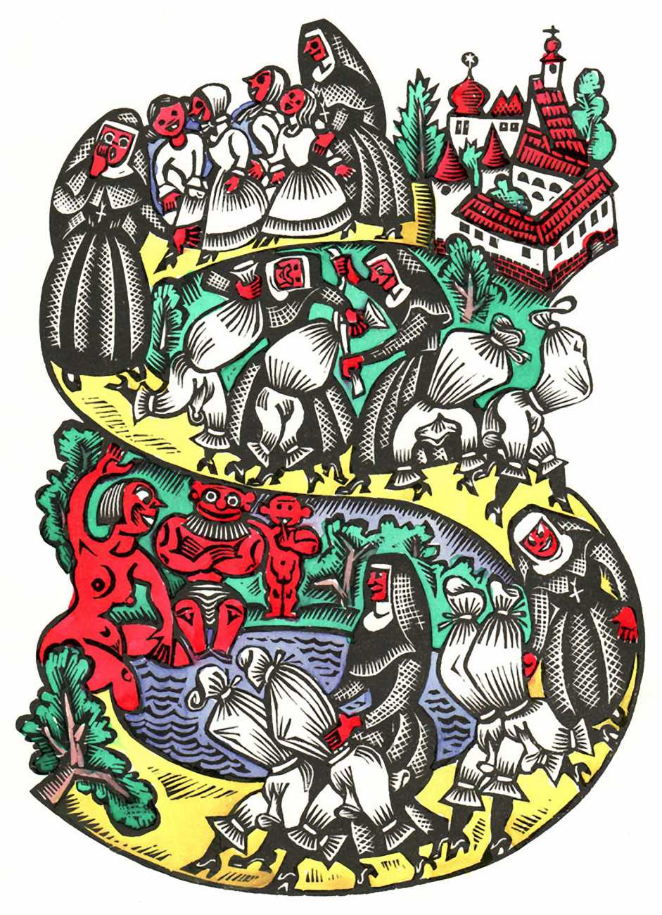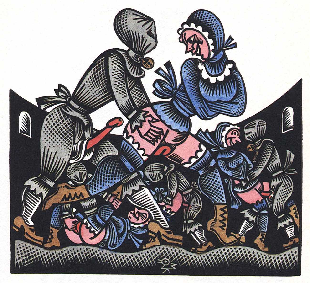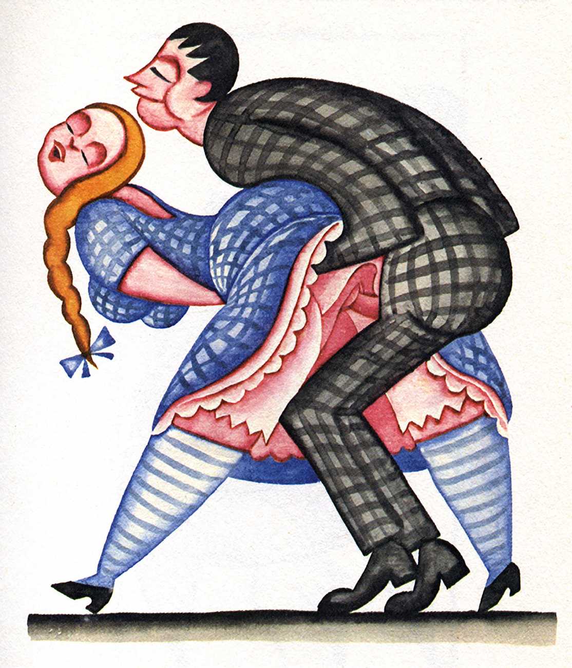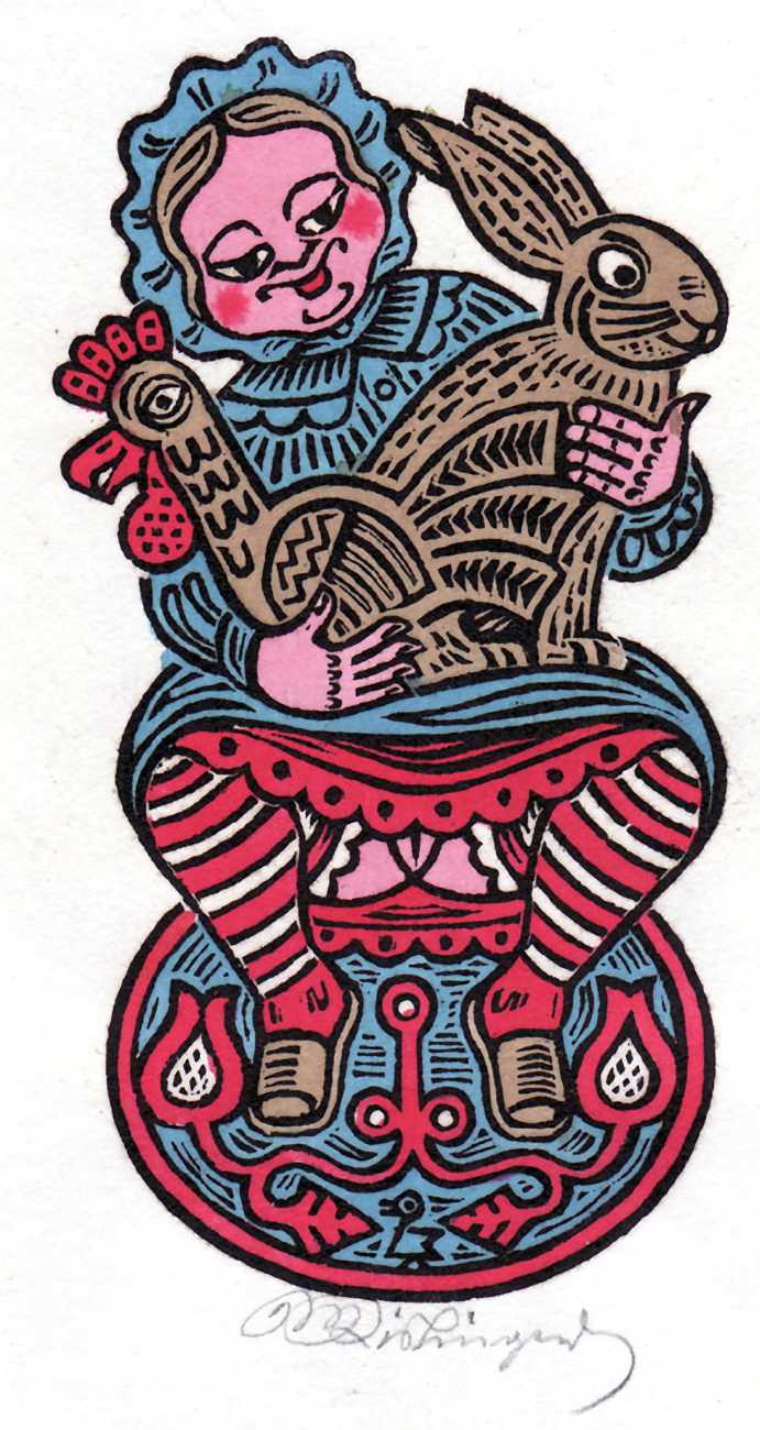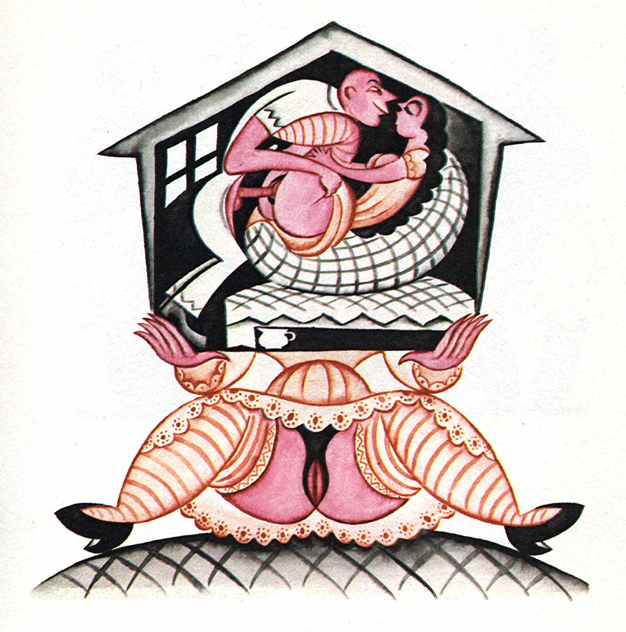 Nearly all of Max Kislinger’s erotic work is in the form of bookplates or Ex Libris, almost certainly because he wanted these private commissions not to interfere with his civil service work and his growing influence as an authority in folk art. However, as can be seen from these beautifully executed designs, mostly woodcuts but also some paintings, he was very aware that there was a strong tradition of earthy eroticism entwined with the folk art of his native country. His ‘Ex Libris: Eroticis’ series spans at least three decades, and combines witty composition with strong lines and bright colour to evoke a culture that had minimal shame around matters sexual.