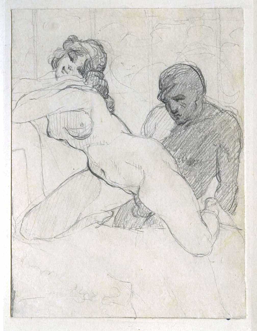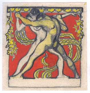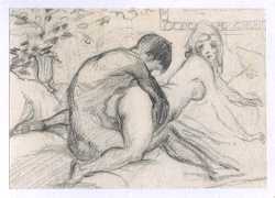 In addition to the Accouplements portfolio, we have located just one other explicit Kernstok drawing from the 1930s, this strongly drawn and subtly coloured threesome.
