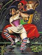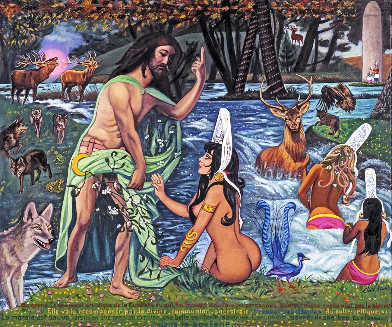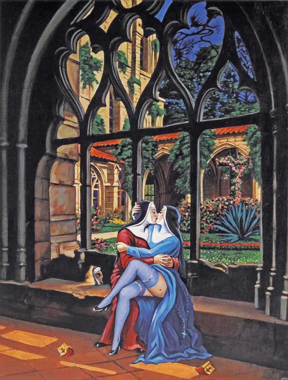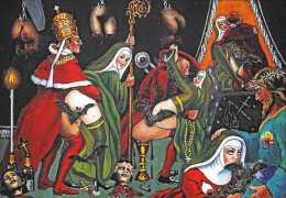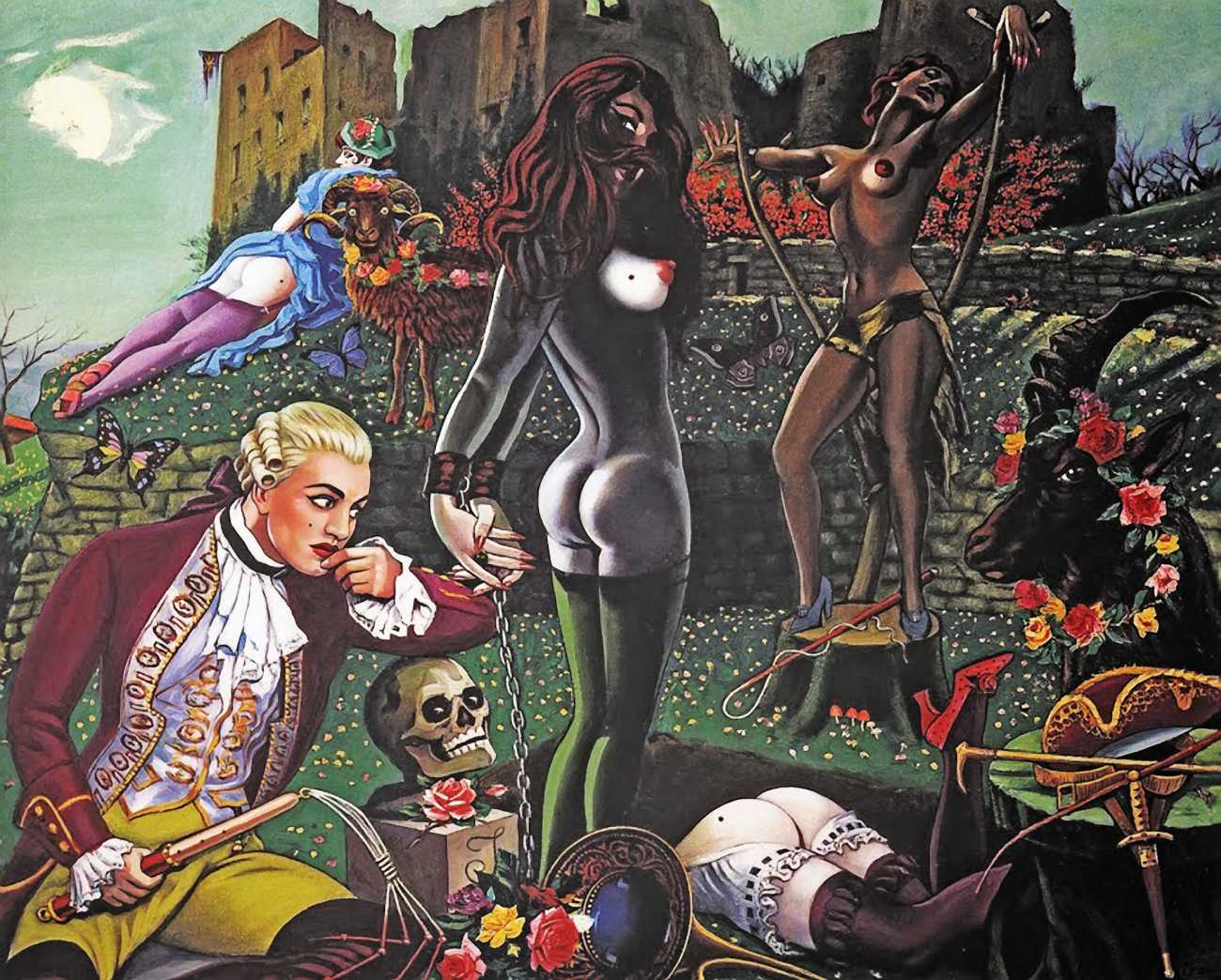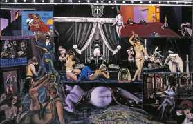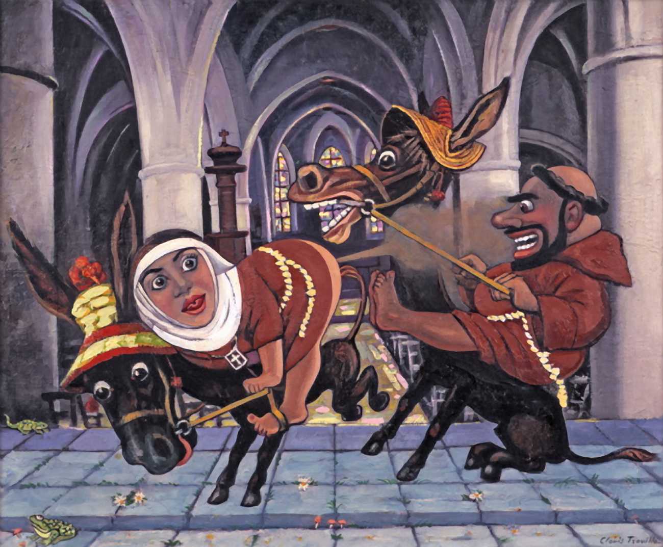 There is no doubt that Clovis Trouille was an erotic artist in every sense of the work, and this collection of more than fifty (probably half) of all his paintings demonstrates that the erotic permeated much of his critique of contemporary morality. From the cross-dressing cardinal of ‘Remembrance’, via the personal fantasies of his own funeral and burial, to his two (‘hard’ and ‘soft’) versions of the Immaculate Conception, his wit and imagination never fails. The skills of composition and colour clearly complement his work designing shop displays and mannequins, making for a chaotic riot of anarchic social critique, always worthy of close attention to his detail and symbolic allusions.
