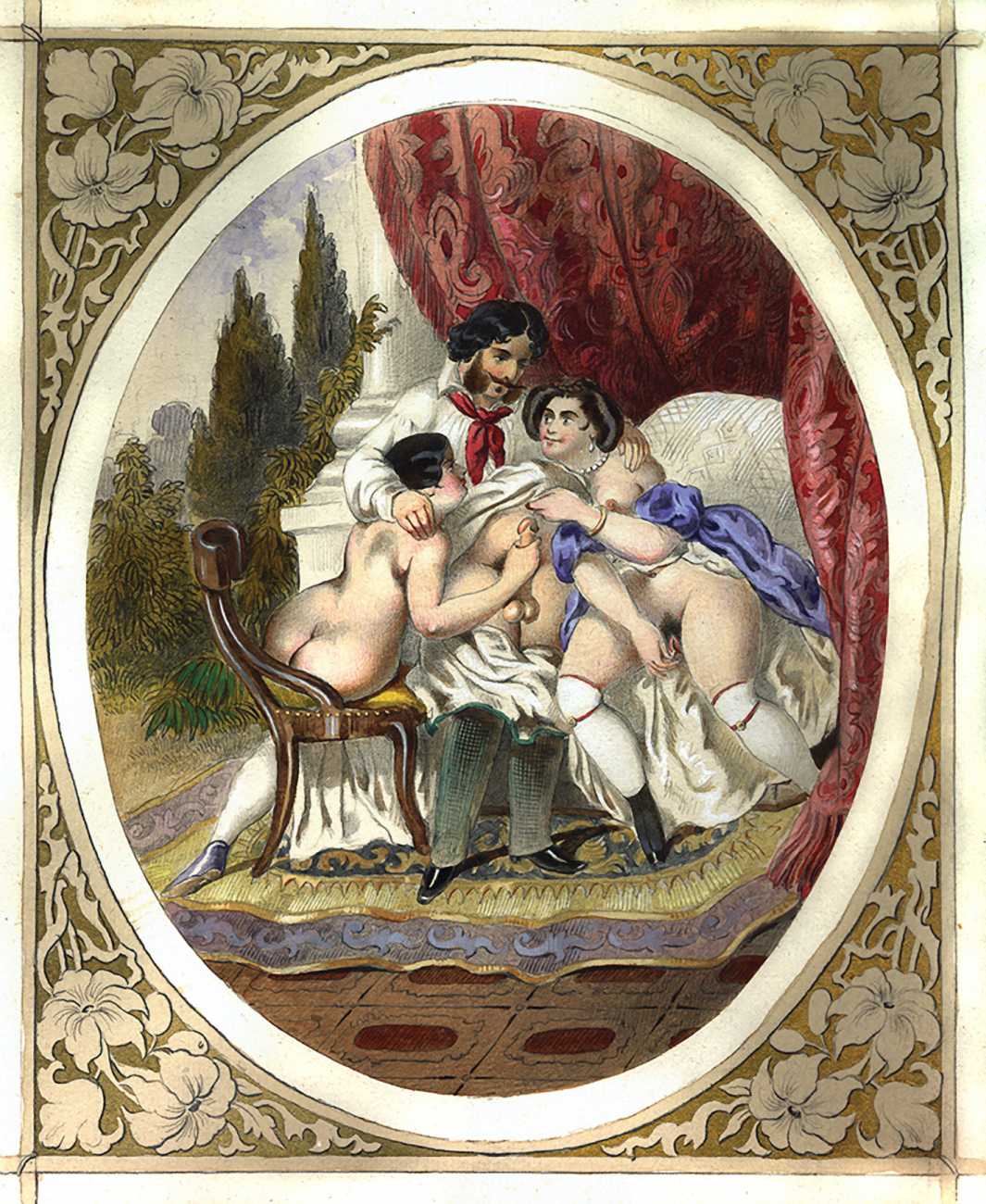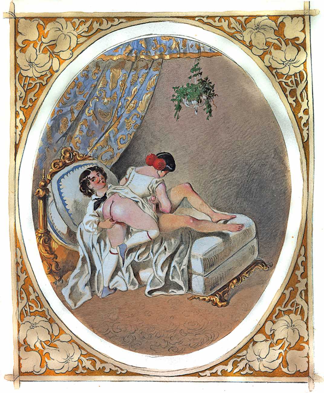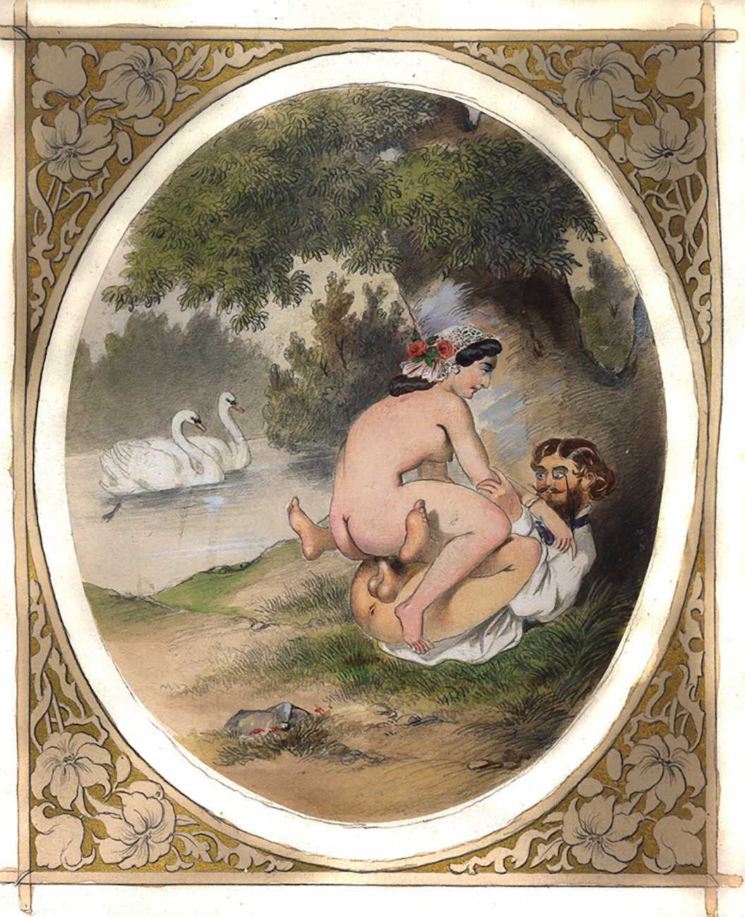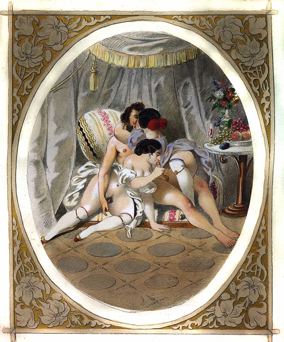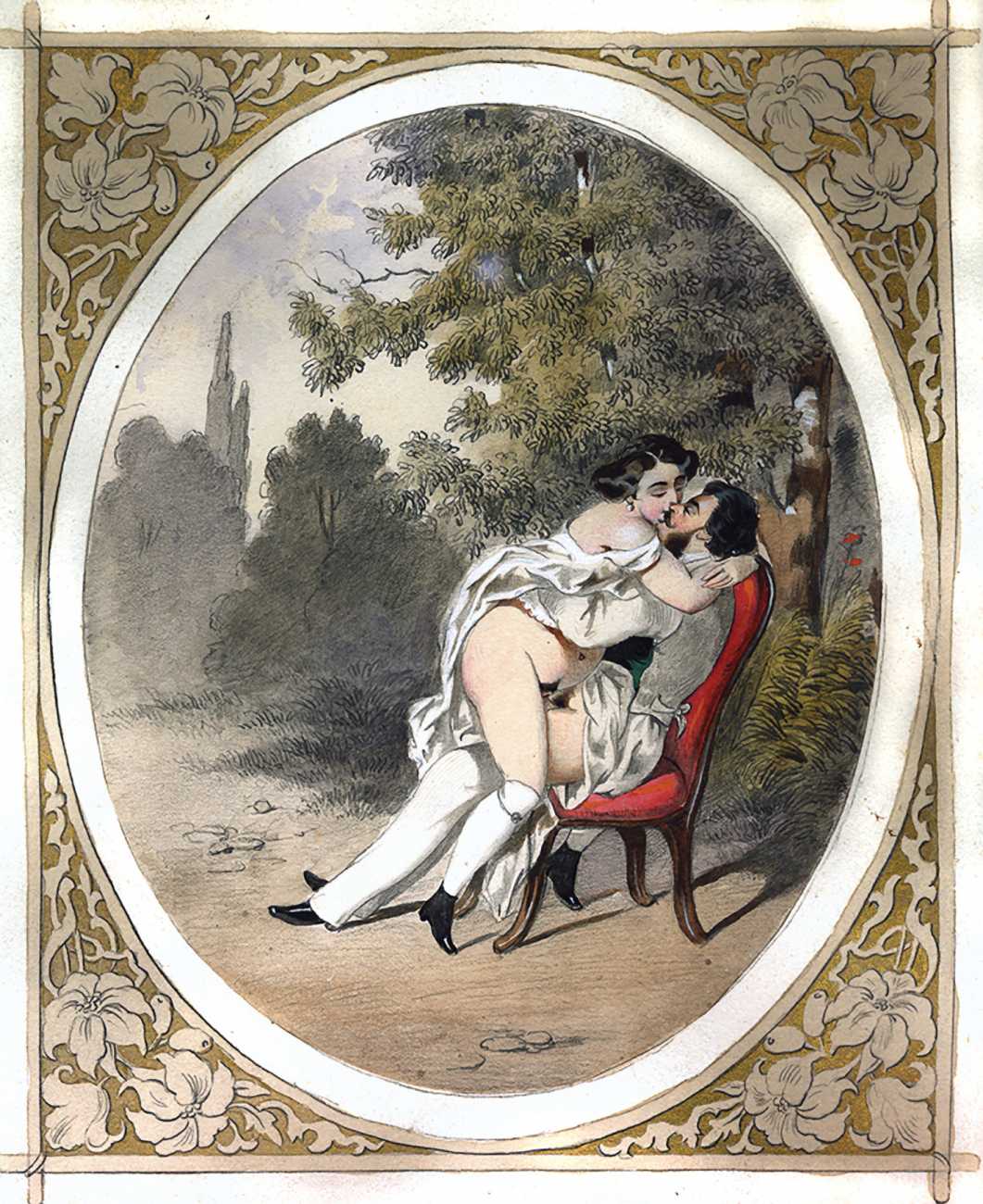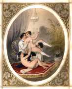 In this portfolio of twenty Biedermeyer-style prints, which were probably made in Vienna in the mid-1850s, Herr Anon produced a colourful set of prints entitled Bilder ohne Worter (Pictures without Words), exploring a range of sexual encounters including a fair amount of lesbian fantasy.