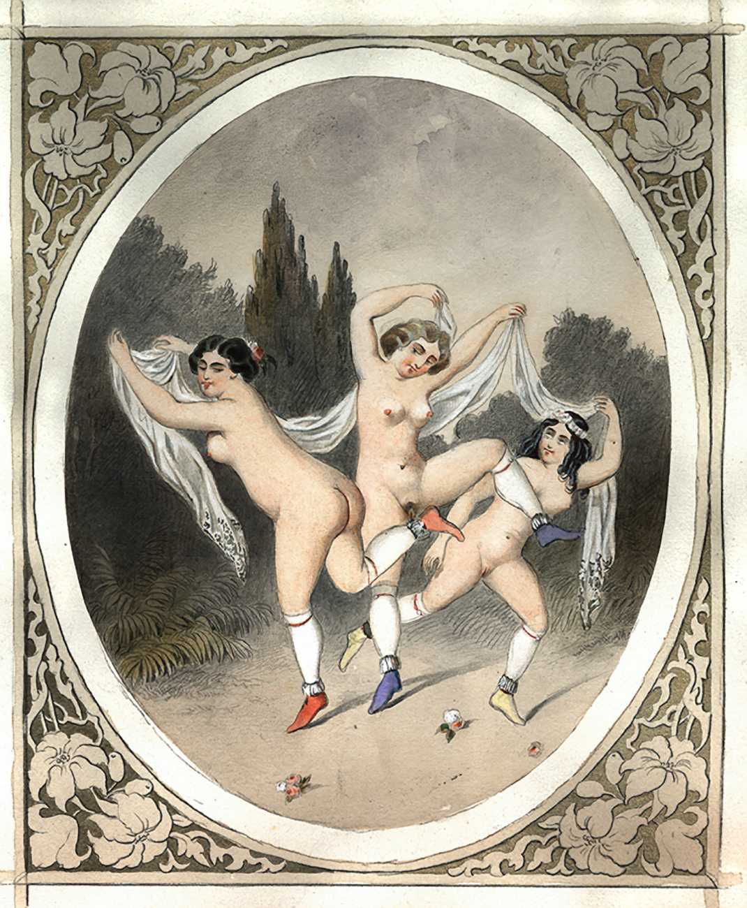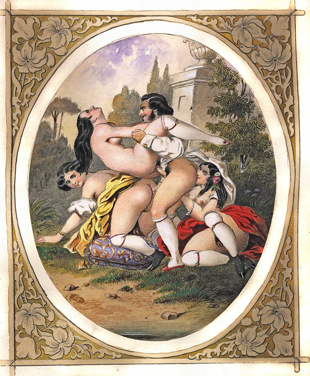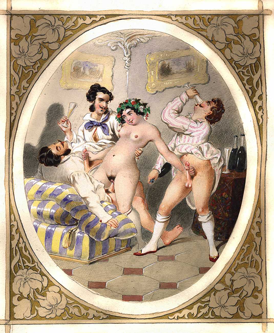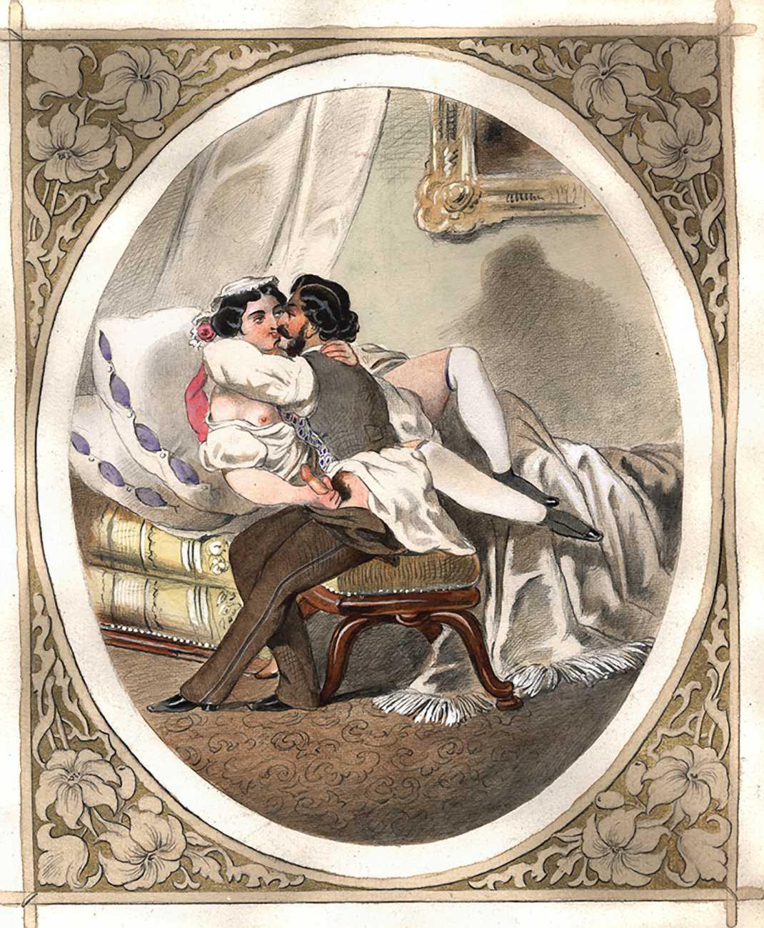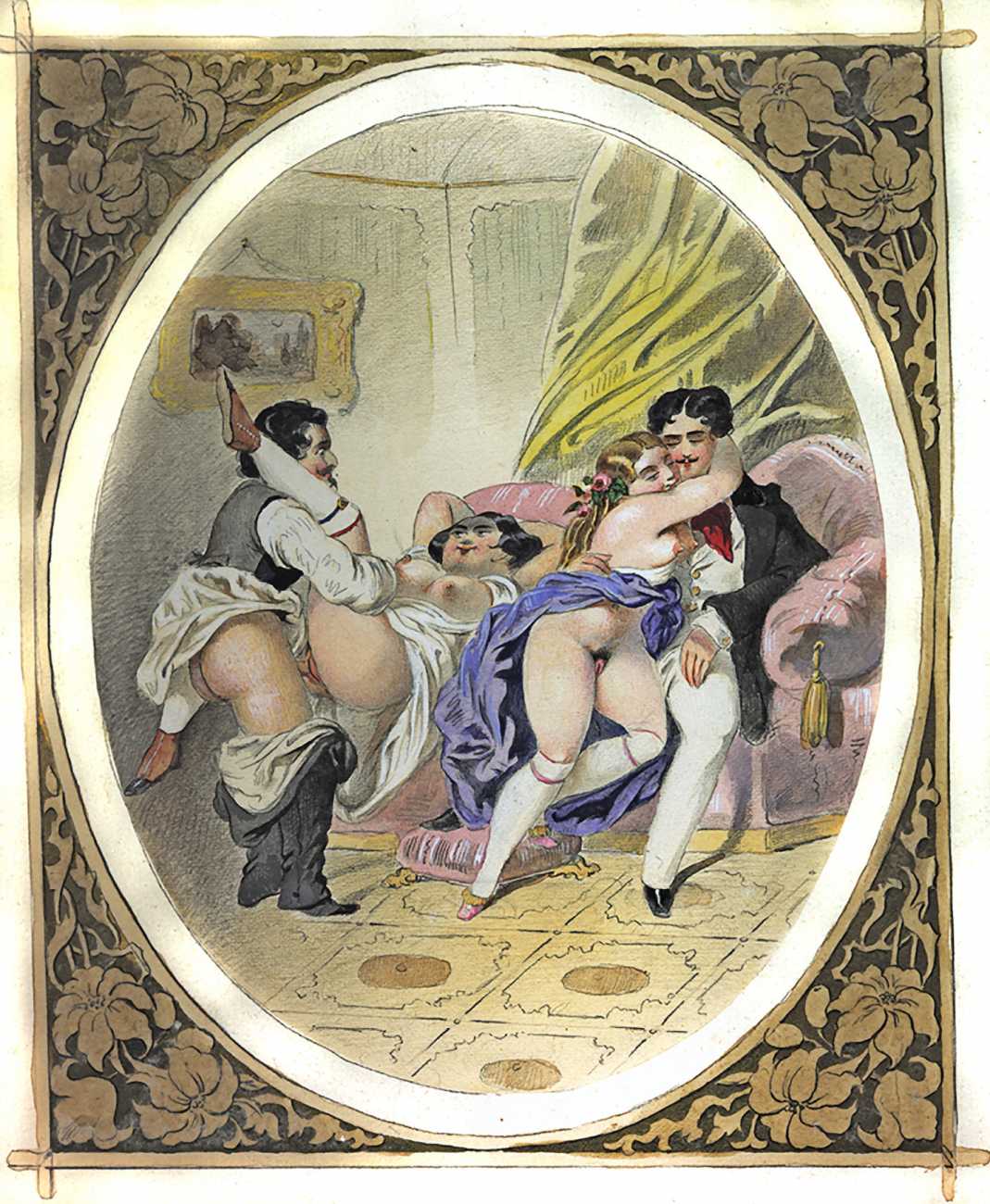 In this portfolio of twenty Biedermeyer-style prints, which were probably made in Vienna in the mid-1850s, Herr Anon produced a colourful set of prints entitled Bilder ohne Worter (Pictures without Words), exploring a range of sexual encounters including a fair amount of lesbian fantasy.