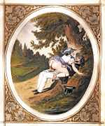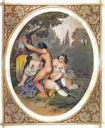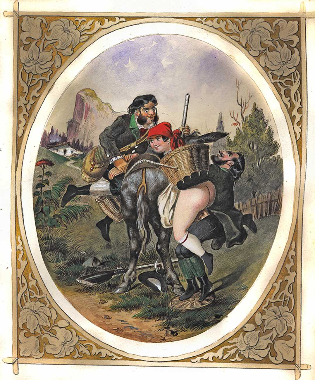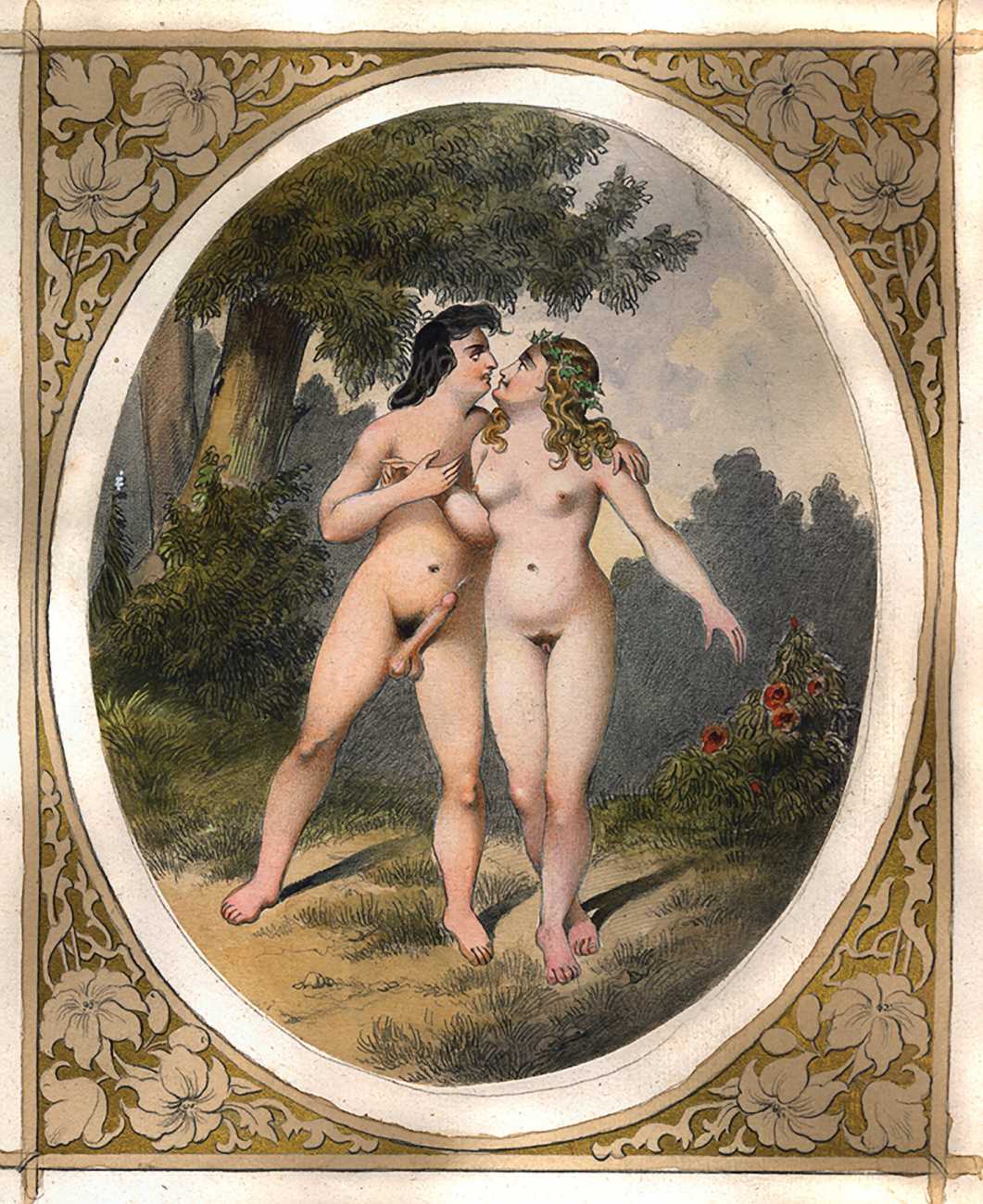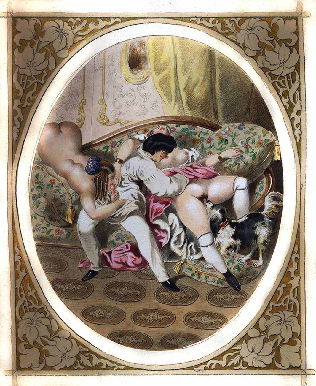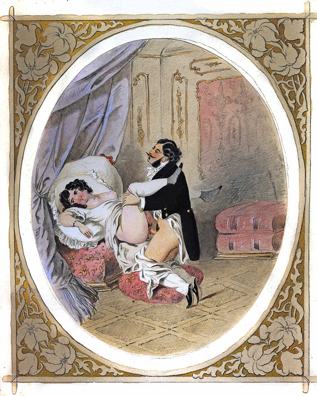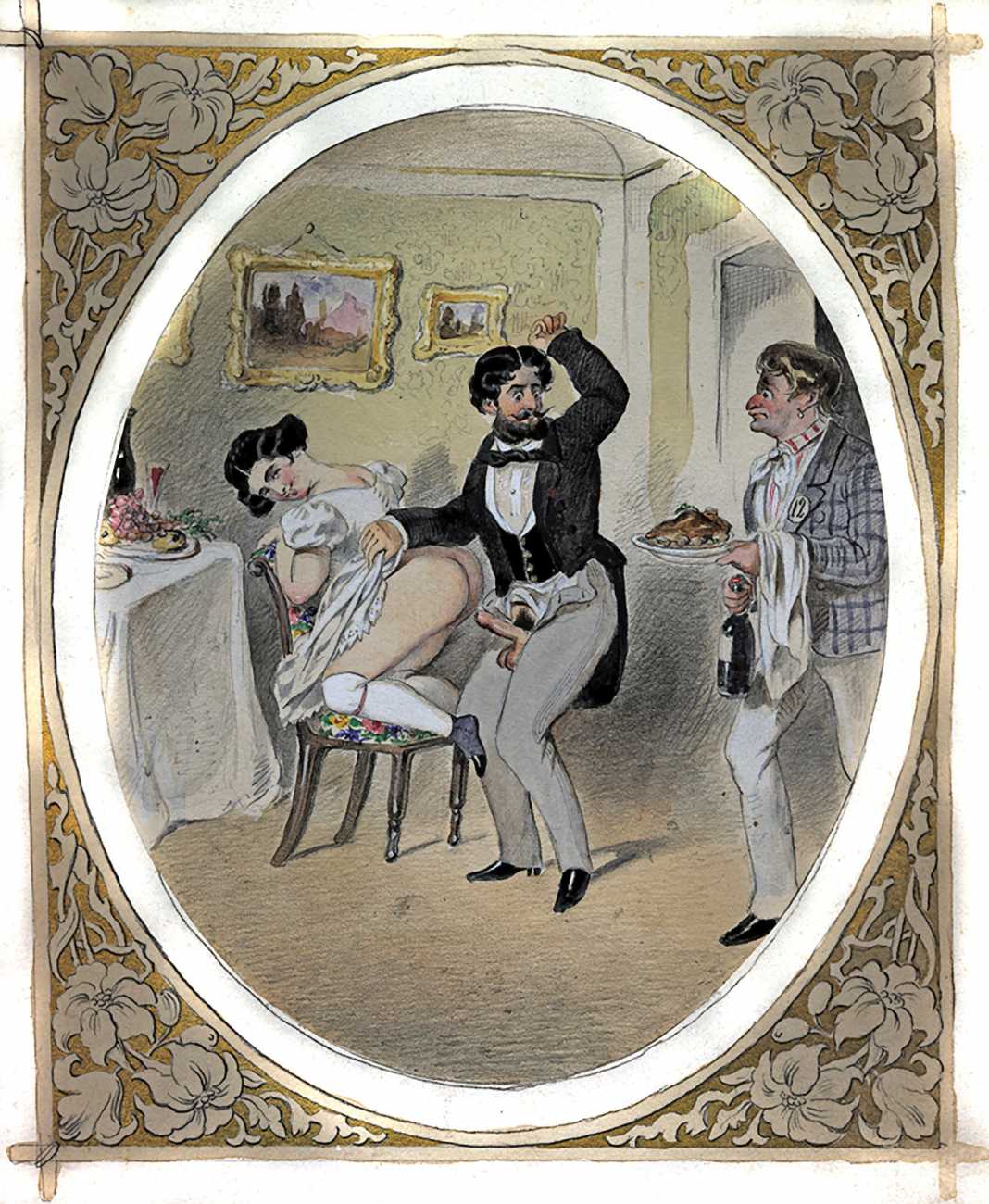 In this portfolio of twenty Biedermeyer-style prints, which were probably made in Vienna in the mid-1850s, Herr Anon produced a colourful set of prints entitled Bilder ohne Worter (Pictures without Words), exploring a range of sexual encounters including a fair amount of lesbian fantasy.
