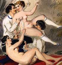 In this portfolio of twenty Biedermeyer-style prints, which were probably made in Vienna in the mid-1850s, Herr Anon produced a colourful set of prints entitled Bilder ohne Worter (Pictures without Words), exploring a range of sexual encounters including a fair amount of lesbian fantasy.